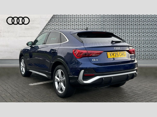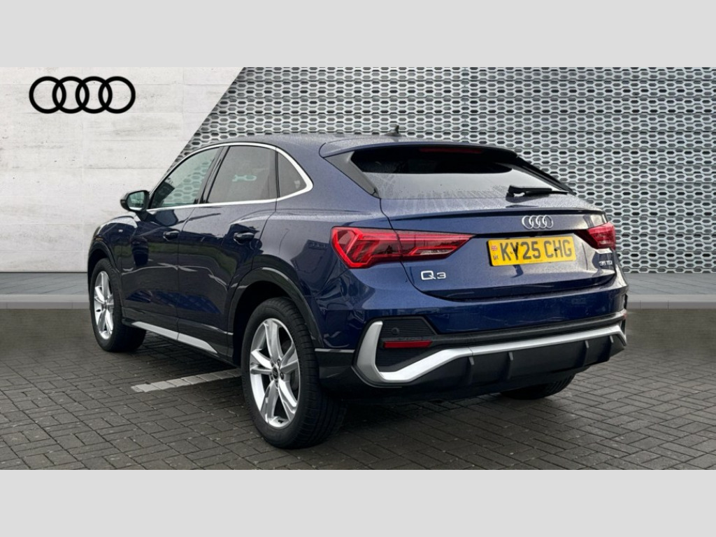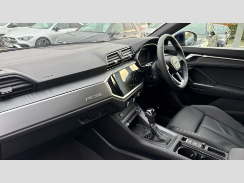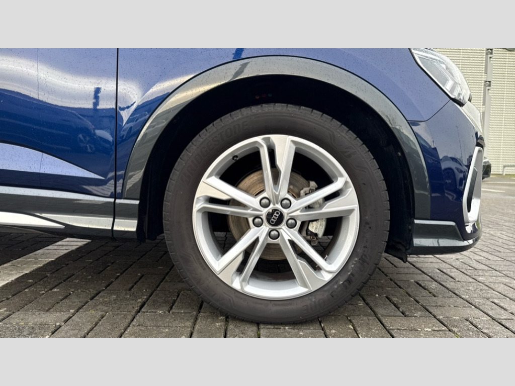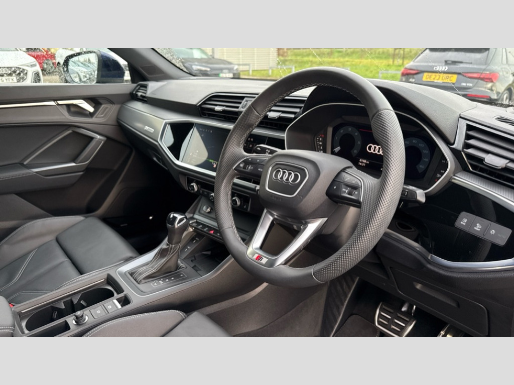 Audi Q3 35 TDI S Line 5dr S Tronic [Leather] Audi connect safety and service, Audi drive select, Audi lane departure warning, Audi Virtual Cockpit - 10.25" display, Bluetooth interface, Camera based traffic sign recognition, Distraction and Fatigue warning, Legal emergency call, MMI Navigation Plus with high resolution 10.1 inch touchscreen colour display, Power operated tailgate, Progressive steering, Service interval indicator, Smartphone interface includes wireless Apple carplay/Android Auto, Start stop system with recuperation, Voice control system with natural language interaction, Diesel particulate filter, Sports suspension, 2 USB-C ports with charge and data functions, 6 passive loudspeakers, DAB digital radio module, Acoustic windscreen, Aluminium window trim, Auto dimming door mirrors, Auto dimming frameless rear view mirror, Diffuser grille in grained matt black, Diffuser trim in selenite silver, Electrically folding, adjustable and heated door mirrors with integrated LED side indicators and kerb view function for passenger side, Front and rear electric windows, Front fog lights, Front side air inlets in selenite silver, Front underbody protection in manhattan grey paint finish, Grille surround in aluminium silver matt, High gloss black finish B and C pillars, LED Dynamic rear indicators, LED headlights with LED daytime running lights, LED rear lights, LED third brake light, Privacy glass dark tinted rear and rear-side windows (from B-pillar backwards), Radiator grille in anthracite black with inlay in matt aluminium silver, Rain and light sensors, Rear side wing doors, Rear underbody protection in matt black, Rear wiper, S line badges on front wings, S line front and rear bumpers and side skirts in contrasting Manhattan grey paint finish, Side skirt insert in matt Platinium grey, Variable front intermittent wipers, 12V socket in rear centre console, 3 seat bench in 2nd row, 3 spoke leather multifunction steering wheel features S badging and grips in perforated leather with contrast stitching, 40:20:40 folding with manual adjustment for 60:40 forwards/backwards position and backrest angle, Adjustable rear seat bench/backrest with centre armrest and cupholder, Black cloth headlining, Dual zone electronic climate control, Electric lumbar support, Front and rear black floor mats with contrast stitching, Front and rear headrests, Front centre armrest, Height and reach adjustable steering wheel, Illuminated door sill trims with S logo, ISOFIX child seat mounting for front passenger with airbag deactivation and outer rear seat including top tether attachment point for outer rear seats, Luggage compartment sill protection in stainless steel, Manual front seats with height adjustment, Perforated leather gearknob, Single front passenger seat, Stainless steel pedals, Twin leather upholstery with front sport seats + S embossing, Non smoking pack - Q3, 3x3 point rear seatbelts, 6 airbags - Driver, front passenger, curtain and side windows, Audi pre-sense front with pedestrain and cyclist recognition, Electrically operated child locks on rear doors, Electromechanical parking brake, Electronic stabilisation control including ABS, ASR and EDL, Front seatbelt reminder, Hill descent control, Hill hold assist, Pre sense basic, Seatbelt monitoring, Tyre pressure warning, Warning triangle and first aid kit, Anti theft alarm, Anti theft wheel bolts, Immobiliser, Remote central locking, Aluminium look interior elements, Dark matt brushed aluminium inlay, Detail dashboard around MMI touch colour display in glass look, black with surround in aluminium look, Leatherette door armrest