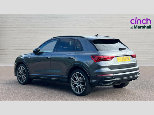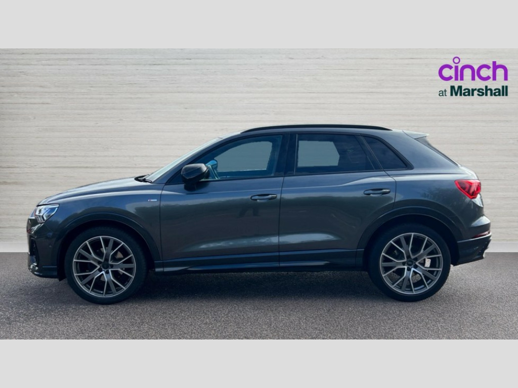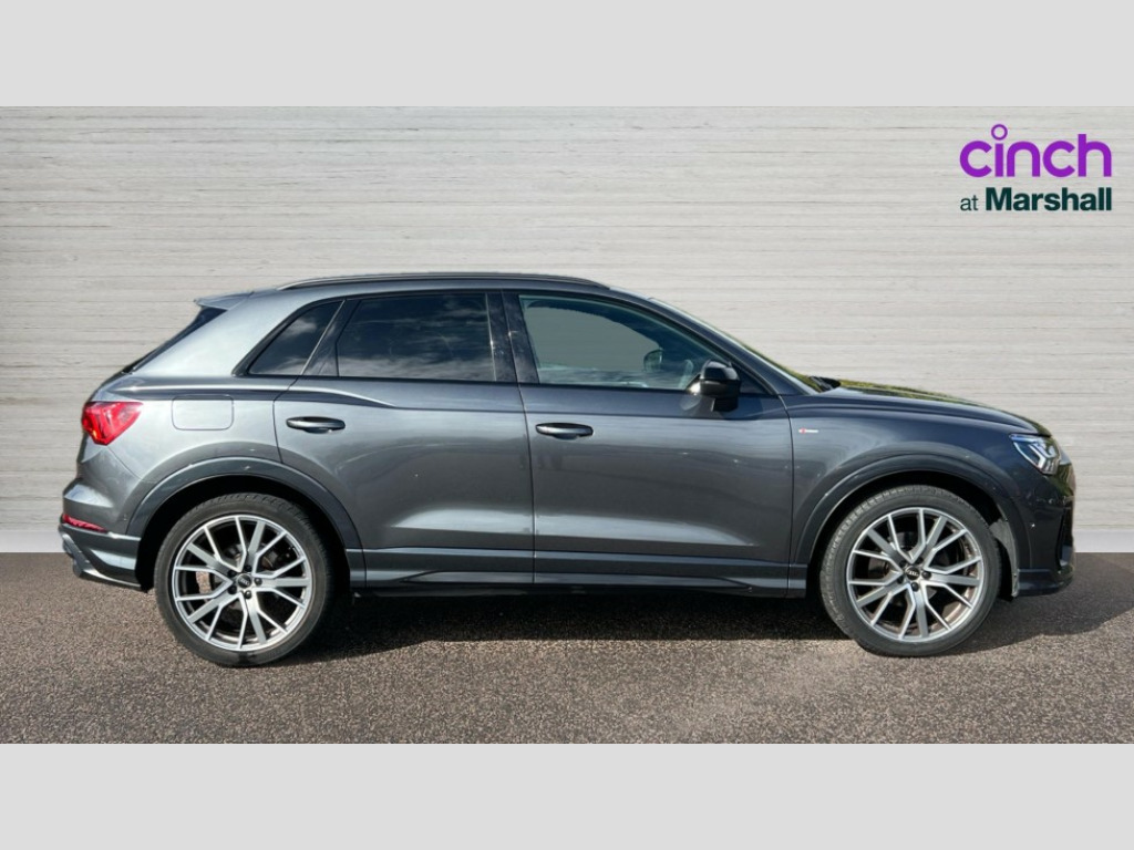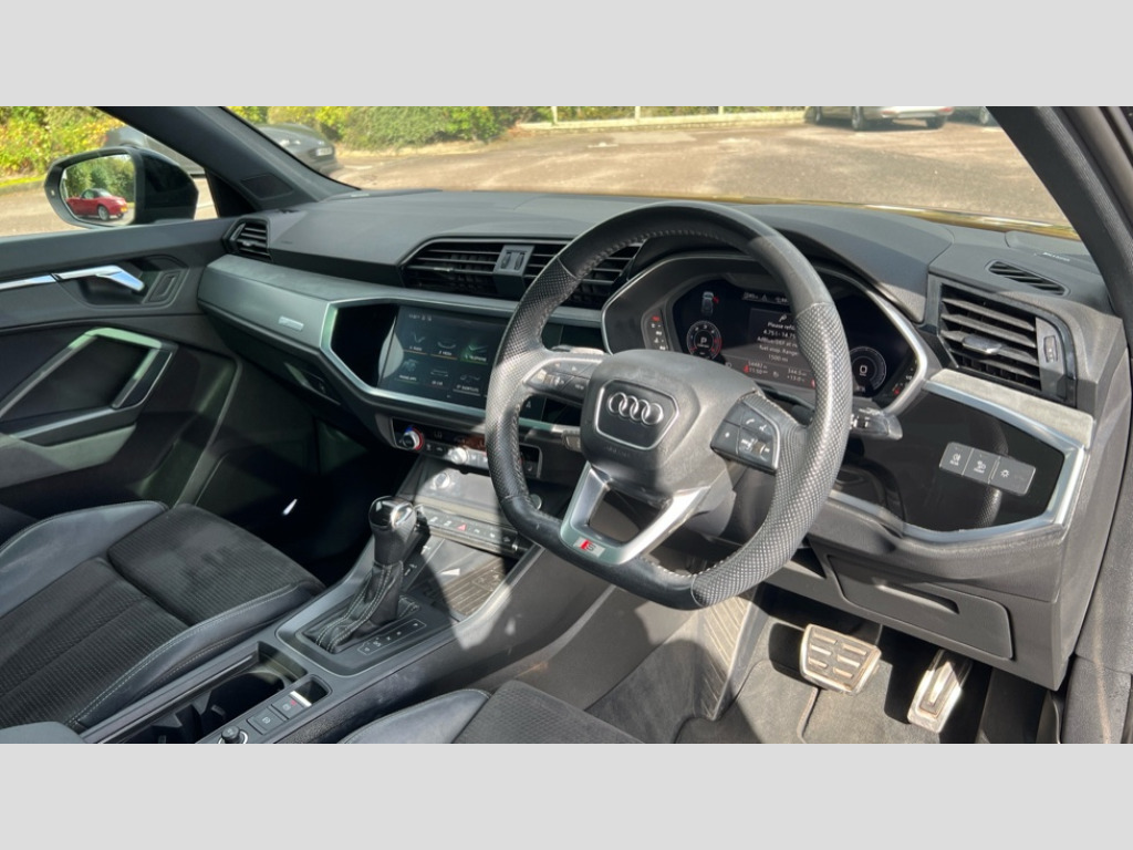 Audi Q3 35 TDI Vorsprung 5dr S Tronic 360 degree parking camera, Audi connect safety and service (e-call), Audi drive select, Audi lane departure warning, Audi phone box with wireless charging, Audi side assist, Audi virtual cockpit plus, Bluetooth interface, Camera based traffic sign recognition, MMI Navigation Plus with high resolution 10.1 inch touchscreen colour display, Power operated tailgate, Progressive steering, Rear cross traffic alert, Service interval indicator, Smartphone interface includes wireless Apple carplay/Android Auto, Start stop system with recuperation, Voice control system with natural language interaction, Adaptive suspension with damping control, Diesel particulate filter, 2 USB-C ports with charge and data functions, Bang + Olufsen 3D sound system, DAB digital radio module, Acoustic windscreen, Audi Beam uses LEDs to project the Audi Sport logo, Auto dimming door mirrors, Auto dimming frameless rear view mirror, Black roof rails, Electrically folding, adjustable and heated door mirrors with integrated LED side indicators and kerb view function for passenger side, Front and rear electric windows, Front fog lights, Front spoiler blade in matt platinum grey, Headlight washers, High gloss black finish B and C pillars, Matrix LED headlights with LED rear lights and dynamic front and rear indicator, Panoramic opening glass sunroof, Privacy glass dark tinted rear and rear-side windows (from B-pillar backwards), Rain and light sensors, Rear diffuser strip in matt titanium black, S line bumpers in contrasting Manhattan grey, 12V socket in rear centre console, 4 way electric lumbar support for driver and front passenger, 40:20:40 folding with manual adjustment for 60:40 forwards/backwards position and backrest angle, Adjustable rear seat bench/backrest with centre armrest and cupholder, Black cloth headlining, Dual zone electronic climate control, Electrically adjustable front seats, Front and rear black floor mats with contrast stitching in rock grey, Front and rear headrests, Front and rear roof module including reading lights, Front centre armrest, Glove compartment lighting, Heated front seats, Height and reach adjustable steering wheel, Illuminated door sill trims with S logo, ISOFIX child seat mounting for front passenger with airbag deactivation and outer rear seat including top tether attachment point for outer rear seats, Leather steering wheel in 3-spoke design with multifunction plus and shift paddles, Luggage compartment light, Perforated leather gearknob, Stainless steel luggage compartment sill finisher, Stainless steel pedals, Black styling pack - Q3, Driver Assistance Pack - Q3, Multi coloured extended ambient interior lighting pack - Q3, Non smoking pack - Q3, 3x3 point rear seatbelts, 6 airbags - Driver, front passenger, curtain and side windows, Audi pre-sense front with pedestrain and cyclist recognition, Electrically operated child locks on rear doors, Electromechanical parking brake, Electronic stabilisation control including ABS, ASR and EDL, Hill descent control, Hill hold assist, Pre sense basic, Seatbelt monitoring, Tyre pressure warning, Warning triangle and first aid kit, Advanced key, Anti theft alarm, Anti theft wheel bolts, Remote central locking, Detail dashboard around MMI touch colour display in glass look, black with surround in aluminium look, Leatherette door armrest