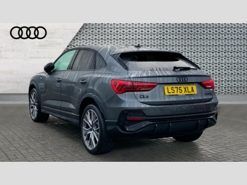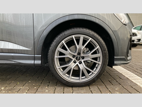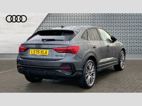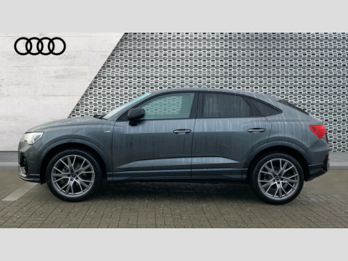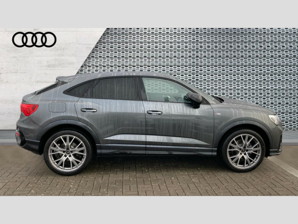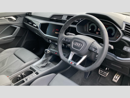 Audi Q3 35 TFSI Black Edition 5dr [20" Alloy] Amazon alexa Integration, Audi connect safety and service, Audi drive select, Audi lane departure warning, Audi Virtual Cockpit - 10.25" display, Bluetooth interface, Camera based traffic sign recognition, Cruise control + speed limiter, Distraction and Fatigue warning, Legal emergency call, MMI Navigation Plus with high resolution 10.1 inch touchscreen colour display, Power operated tailgate, Progressive steering, Rear parking sensors, Service interval indicator, Smartphone interface includes wireless Apple carplay/Android Auto, Start stop system with recuperation, Voice control system with natural language interaction, Sports suspension, 2 USB-C ports with charge and data functions, 6 passive loudspeakers, DAB digital radio module, Acoustic windscreen, Anthracite black radiator grille, Audi Beam uses LEDs to project the Audi logo onto the ground as you exit your Q3, Auto dimming door mirrors, Auto dimming frameless rear view mirror, Black roof rails, Electrically folding, adjustable and heated door mirrors with integrated LED side indicators and kerb view function for passenger side, Front and rear electric windows, Front fog lights, Grille vertical bars in aluminium silver/Matt, High gloss black finish B and C pillars, LED Dynamic rear indicators, LED headlights with LED daytime running lights, LED rear lights, LED third brake light, Privacy glass dark tinted rear and rear-side windows (from B-pillar backwards), Rain and light sensors, Rear diffuser grille in grained matt black, Rear diffuser strip in matt anthracite black, Rear side wing doors, Rear wiper, S line bumpers in contrasting Manhattan grey, Variable front intermittent wipers, 12V socket in rear centre console, 3 seat bench in 2nd row, 3 spoke flat bottomed multi-function leather sport steering wheel, 40:20:40 folding with manual adjustment for 60:40 forwards/backwards position and backrest angle, Adjustable rear seat bench/backrest with centre armrest and cupholder, Black carpet mats, Black cloth headlining, Dual zone electronic climate control, Electric lumbar support, Front and rear black floor mats with contrast stitching in rock grey, Front and rear headrests, Front centre armrest, Height and reach adjustable steering wheel, Illuminated door sill trims with S logo, ISOFIX child seat mounting for front passenger with airbag deactivation and outer rear seat including top tether attachment point for outer rear seats, Luggage compartment sill protection in stainless steel, Manual front seats with height adjustment, Perforated leather gearknob, Single front passenger seat, Stainless steel pedals, Twin leather upholstery with front sport seats + S embossing, Black styling pack - Q3, Non smoking pack - Q3, 3x3 point rear seatbelts, 6 airbags - Driver, front passenger, curtain and side windows, Audi pre-sense front with pedestrain and cyclist recognition, Electrically operated child locks on rear doors, Electromechanical parking brake, Electronic stabilisation control including ABS, ASR and EDL, Front seatbelt reminder, Hill descent control, Hill hold assist, Pre sense basic, Seatbelt monitoring, Tyre pressure warning, Warning triangle and first aid kit, Anti theft wheel bolts, Immobiliser, Remote central locking, Thatcham approved category 1 anti theft alarm, Aluminium look interior elements, Detail dashboard around MMI touch colour display in glass look, black with surround in aluminium look, Leatherette door armrest, Piano black inlay