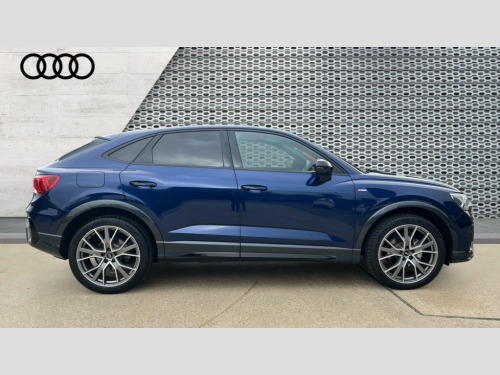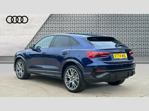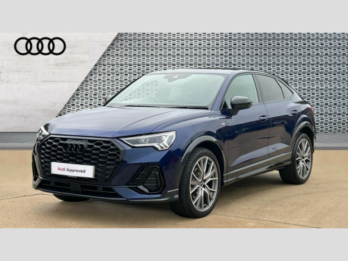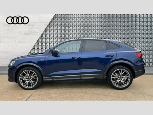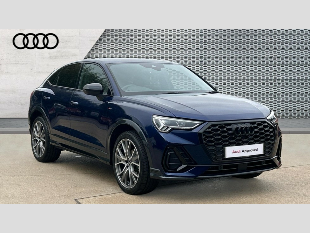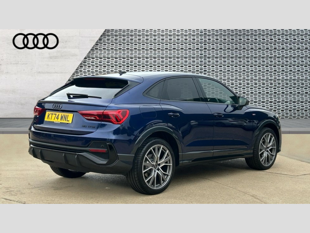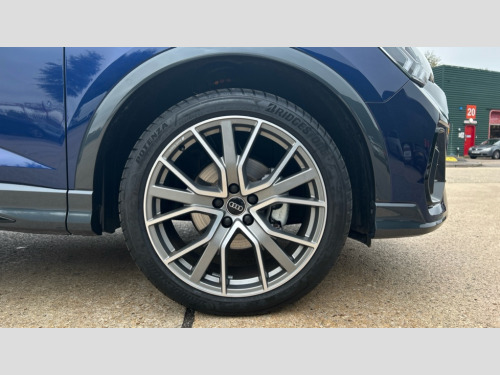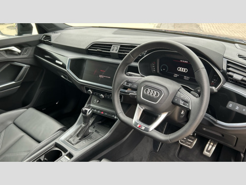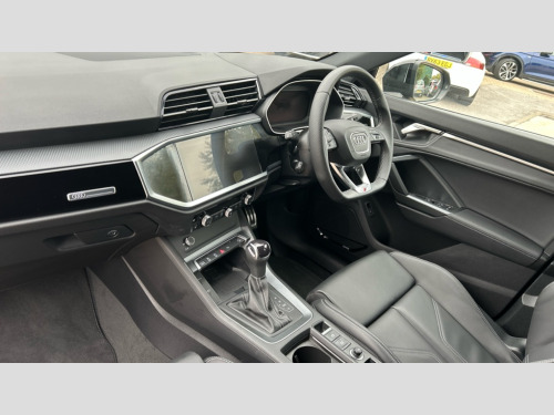 Audi Q3 35 TFSI Black Edition 5dr S Tronic [20" Alloy] Audi connect safety and service, Audi drive select, Audi lane departure warning, Audi Virtual Cockpit - 10.25" display, Bluetooth interface, Camera based traffic sign recognition, Distraction and Fatigue warning, Legal emergency call, MMI Navigation Plus with high resolution 10.1 inch touchscreen colour display, Power operated tailgate, Progressive steering, Service interval indicator, Smartphone interface includes wireless Apple carplay/Android Auto, Start stop system with recuperation, Voice control system with natural language interaction, Sports suspension, 2 USB-C ports with charge and data functions, 6 passive loudspeakers, DAB digital radio module, Acoustic windscreen, Audi Beam uses LEDs to project the Audi logo onto the ground as you exit your Q3, Auto dimming door mirrors, Auto dimming frameless rear view mirror, Diffuser grille in grained matt black, Diffuser trim in selenite silver, Electrically folding, adjustable and heated door mirrors with integrated LED side indicators and kerb view function for passenger side, Front and rear electric windows, Front fog lights, Front underbody protection in manhattan grey paint finish, High gloss black finish B and C pillars, LED Dynamic rear indicators, LED headlights with LED daytime running lights, LED rear lights, LED third brake light, Privacy glass dark tinted rear and rear-side windows (from B-pillar backwards), Rain and light sensors, Rear side wing doors, Rear underbody protection in matt black, Rear wiper, S line front and rear bumpers and side skirts in contrasting Manhattan grey paint finish, Variable front intermittent wipers, 12V socket in rear centre console, 3 seat bench in 2nd row, 40:20:40 folding with manual adjustment for 60:40 forwards/backwards position and backrest angle, Adjustable rear seat bench/backrest with centre armrest and cupholder, Black cloth headlining, Dual zone electronic climate control, Electric lumbar support, Front and rear black floor mats with contrast stitching, Front and rear headrests, Front centre armrest, Height and reach adjustable steering wheel, Illuminated door sill trims with S logo, ISOFIX child seat mounting for front passenger with airbag deactivation and outer rear seat including top tether attachment point for outer rear seats, Luggage compartment sill protection in stainless steel, Manual front seats with height adjustment, Perforated leather gearknob, Single front passenger seat, Stainless steel pedals, Twin leather upholstery with front sport seats + S embossing, Black styling pack - Q3, Non smoking pack - Q3, 3x3 point rear seatbelts, 6 airbags - Driver, front passenger, curtain and side windows, Audi pre-sense front with pedestrain and cyclist recognition, Electrically operated child locks on rear doors, Electromechanical parking brake, Electronic stabilisation control including ABS, ASR and EDL, Front seatbelt reminder, Hill descent control, Hill hold assist, Pre sense basic, Seatbelt monitoring, Tyre pressure warning, Warning triangle and first aid kit, Anti theft alarm, Anti theft wheel bolts, Immobiliser, Remote central locking, Aluminium look interior elements, Detail dashboard around MMI touch colour display in glass look, black with surround in aluminium look, Leatherette door armrest, Piano black inlay