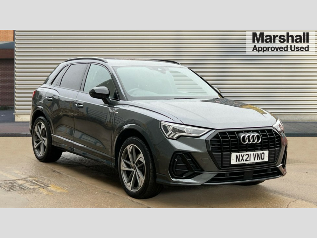 Audi Q3 35 TFSI Black Edition 5dr S Tronic Audi connect safety and service (e-call), Audi drive select, Audi lane departure warning, Audi smartphone interface includes wireless Apple carplay/Android Auto, Audi Virtual Cockpit - 10.25" display, Bluetooth interface, Camera based traffic sign recognition, MMI Navigation Plus with high resolution 10.1 inch touchscreen colour display, Power operated tailgate, Progressive steering, Service interval indicator, Start stop system with recuperation, Voice control system with natural language interaction, 48V Mild hybrid technology, Sports suspension, 2 USB-C ports with charge and data functions, 6 passive loudspeakers, DAB digital radio module, Acoustic windscreen, Auto dimming frameless rear view mirror, Black roof rails, Electrically folding, adjustable and heated door mirrors with integrated LED side indicators and kerb view function for passenger side, Front and rear electric windows, Front fog lights, High gloss black finish B and C pillars, LED headlights with LED daytime running lights and dynamic rear indicator, LED rear lights, Privacy glass dark tinted rear and rear-side windows (from B-pillar backwards), Rain and light sensors, Rear diffuser strip in matt titanium black, S line bumpers in contrasting Manhattan grey, 12V socket in rear centre console, 40:20:40 folding with manual adjustment for 60:40 forwards/backwards position and backrest angle, Adjustable rear seat bench/backrest with centre armrest and cupholder, Black cloth headlining, Dual zone electronic climate control, Front and rear black floor mats with contrast stitching in rock grey, Front and rear headrests, Front and rear roof module including reading lights, Front centre armrest, Glove compartment lighting, Height and reach adjustable steering wheel, Illuminated door sill trims with S logo, ISOFIX child seat mounting for front passenger with airbag deactivation and outer rear seat including top tether attachment point for outer rear seats, Luggage compartment light, Manual front seats with height adjustment, Perforated leather gearknob, Stainless steel luggage compartment sill finisher, Stainless steel pedals, Black styling pack - Q3, Non smoking pack - Q3, 3x3 point rear seatbelts, 6 airbags - Driver, front passenger, curtain and side windows, Audi pre-sense front with pedestrain and cyclist recognition, Electrically operated child locks on rear doors, Electromechanical parking brake, Electronic stabilisation control including ABS, ASR and EDL, Hill descent control, Hill hold assist, Pre sense basic, Seatbelt monitoring, Tyre pressure warning, Warning triangle and first aid kit, Anti theft alarm, Anti theft wheel bolts, Remote central locking, Detail dashboard around MMI touch colour display in glass look, black with surround in aluminium look, Leatherette door armrest, Piano black inlay, Tool kit, Tyre repair kit