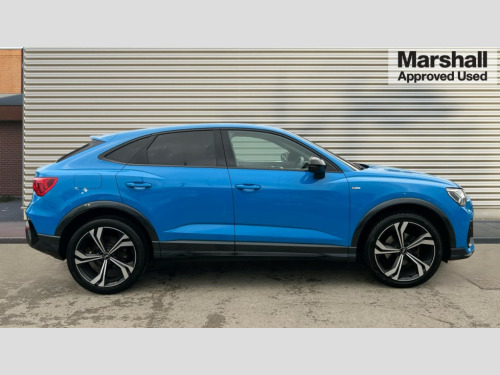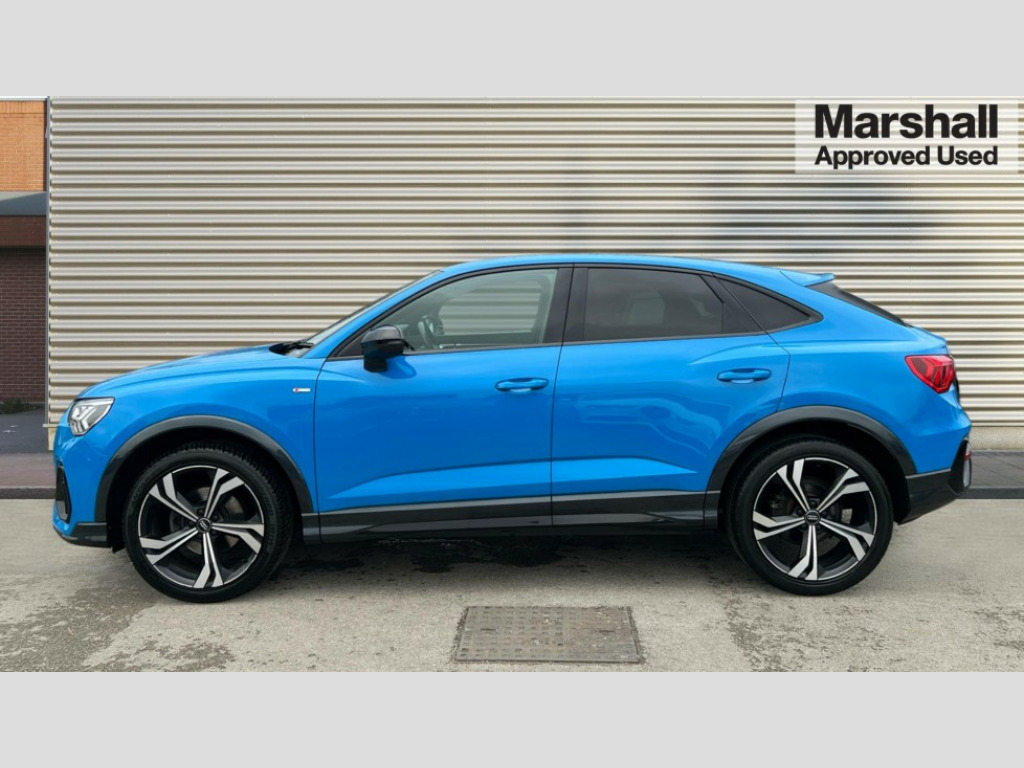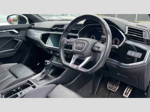 Audi Q3 35 TFSI Edition 1 5dr S Tronic Audi connect safety and service (e-call), Audi drive select, Audi lane departure warning, Audi side assist, Audi virtual cockpit plus, Bluetooth interface, Camera based traffic sign recognition, MMI Navigation Plus with high resolution 10.1 inch touchscreen colour display, Power operated tailgate, Progressive steering, Service interval indicator, Smartphone interface includes wireless Apple carplay/Android Auto, Start stop system with recuperation, Voice control system with natural language interaction, 48V Mild hybrid technology, Sports suspension, 1 x USB type C and 1 USB type A charging points, 6 passive loudspeakers, DAB digital radio module, Acoustic windscreen, Audi Beam uses LEDs to project the Audi Sport logo, Auto dimming frameless rear view mirror, Diffuser grille in grained matt black, Diffuser trim in selenite silver, Electrically folding, adjustable and heated door mirrors with integrated LED side indicators and kerb view function for passenger side, Front and rear electric windows, Front fog lights, Front underbody protection in manhattan grey paint finish, Grille surround in aluminium silver matt, Headlight washers, High gloss black finish B and C pillars, Matrix LED headlights with LED rear lights and dynamic front and rear indicator, Privacy glass dark tinted rear and rear-side windows (from B-pillar backwards), Rain and light sensors, Rear underbody protection in matt black, Side skirt insert in matt Platinium grey, 12V socket in rear centre console, 3 spoke flat bottomed high multi-function leather sport steering wheel with gearshift paddles, 4 way electric lumbar support for driver and front passenger, 40:20:40 folding with manual adjustment for 60:40 forwards/backwards position and backrest angle, Adjustable rear seat bench/backrest with centre armrest and cupholder, Black cloth headlining, Dual zone electronic climate control, Electrically adjustable front seats, Front and rear black floor mats with contrast stitching, Front and rear headrests, Front and rear roof module including reading lights, Front centre armrest, Glove compartment lighting, Heated front seats, Height and reach adjustable steering wheel, Illuminated door sill trims with S logo, ISOFIX child seat mounting for front passenger with airbag deactivation and outer rear seat including top tether attachment point for outer rear seats, Luggage compartment light, Perforated leather gearknob, Stainless steel luggage compartment sill finisher, Stainless steel pedals, Black styling pack - Q3, Multi coloured extended ambient interior lighting pack - Q3, Non smoking pack - Q3, 3x3 point rear seatbelts, 6 airbags - Driver, front passenger, curtain and side windows, Audi pre-sense front with pedestrain and cyclist recognition, Electrically operated child locks on rear doors, Electromechanical parking brake, Electronic stabilisation control including ABS, ASR and EDL, Hill descent control, Hill hold assist, Pre sense basic, Seatbelt monitoring, Tyre pressure warning, Warning triangle and first aid kit, Anti theft alarm, Anti theft wheel bolts, Remote central locking, Dark matt brushed aluminium inlay, Detail dashboard around MMI touch colour display in glass look, black with surround in aluminium look, Leatherette door armrest, Tool kit, Tyre repair kit
