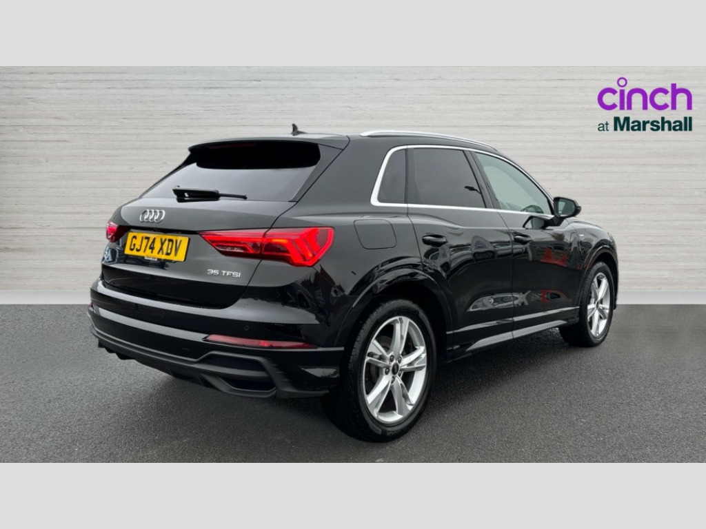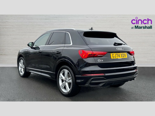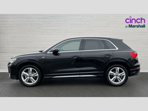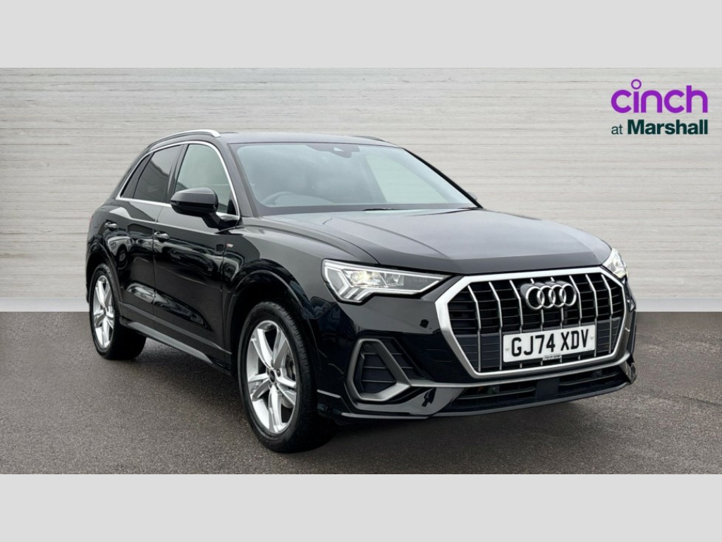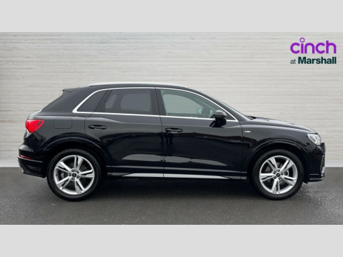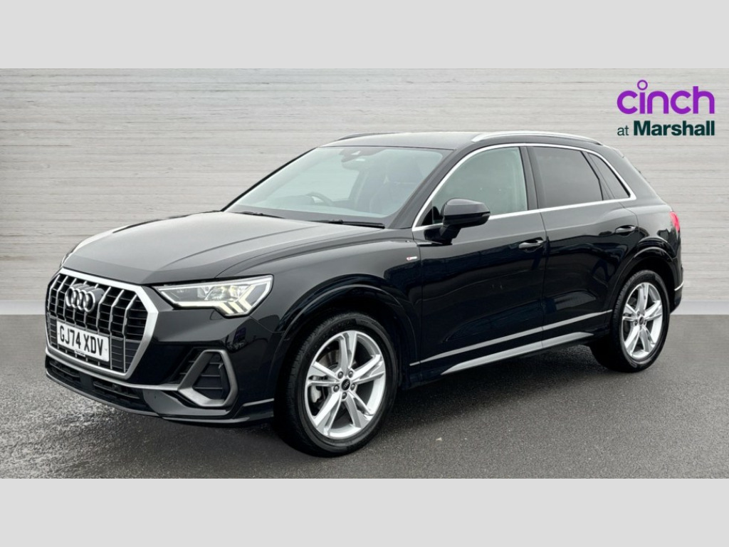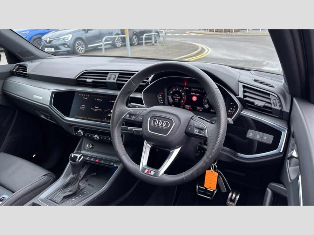 Audi Q3 35 TFSI S Line 5dr S Tronic [Leather] Amazon alexa Integration, Audi connect safety and service, Audi drive select, Audi lane departure warning, Audi Virtual Cockpit - 10.25" display, Bluetooth interface, Camera based traffic sign recognition, Distraction and Fatigue warning, Legal emergency call, MMI Navigation Plus with high resolution 10.1 inch touchscreen colour display, Power operated tailgate, Progressive steering, Service interval indicator, Smartphone interface includes wireless Apple carplay/Android Auto, Start stop system with recuperation, Voice control system with natural language interaction, Sports suspension, 2 USB-C ports with charge and data functions, 6 passive loudspeakers, DAB digital radio module, Acoustic windscreen, Aluminium roof rails, Aluminium window trim, Anthracite black radiator grille, Auto dimming door mirrors, Auto dimming frameless rear view mirror, Body colour front spoiler blade, Electrically folding, adjustable and heated door mirrors with integrated LED side indicators and kerb view function for passenger side, Front and rear electric windows, Front fog lights, Front side air inlets in matt platinum grey, Grille vertical bars in aluminium silver/Matt, High gloss black finish B and C pillars, LED Dynamic rear indicators, LED headlights with LED daytime running lights, LED rear lights, LED third brake light, Privacy glass dark tinted rear and rear-side windows (from B-pillar backwards), Rain and light sensors, Rear diffuser grille in grained matt black, Rear diffuser strip in matt anthracite black, Rear side wing doors, Rear wiper, S line badges on front wings, S line front and rear bumpers and side skirts in contrasting Manhattan grey paint finish, Side skirt insert in matt Platinium grey, Variable front intermittent wipers, 12V socket in rear centre console, 3 seat bench in 2nd row, 3 spoke leather multifunction steering wheel features S badging and grips in perforated leather with contrast stitching, 40:20:40 folding with manual adjustment for 60:40 forwards/backwards position and backrest angle, Adjustable rear seat bench/backrest with centre armrest and cupholder, Black cloth headlining, Dual zone electronic climate control, Electric lumbar support, Front and rear black floor mats with contrast stitching in rock grey, Front and rear headrests, Front centre armrest, Height and reach adjustable steering wheel, Illuminated door sill trims with S logo, ISOFIX child seat mounting for front passenger with airbag deactivation and outer rear seat including top tether attachment point for outer rear seats, Manual front seats with height adjustment, Perforated leather gearknob, Single front passenger seat, Stainless steel luggage compartment sill finisher, Stainless steel pedals, Twin leather upholstery with front sport seats + S embossing, Non smoking pack - Q3, 3x3 point rear seatbelts, 6 airbags - Driver, front passenger, curtain and side windows, Audi pre-sense front with pedestrain and cyclist recognition, Electrically operated child locks on rear doors, Electromechanical parking brake, Electronic stabilisation control including ABS, ASR and EDL, Front seatbelt reminder, Hill descent control, Hill hold assist, Pre sense basic, Seatbelt monitoring, Tyre pressure warning, Warning triangle and first aid kit, Anti theft alarm, Anti theft wheel bolts, Immobiliser, Remote central locking, Aluminium look interior elements, Dark matt brushed aluminium inlay, Detail dashboard around MMI touch colour display in glass look, black with surround in aluminium look, Leatherette door armrest