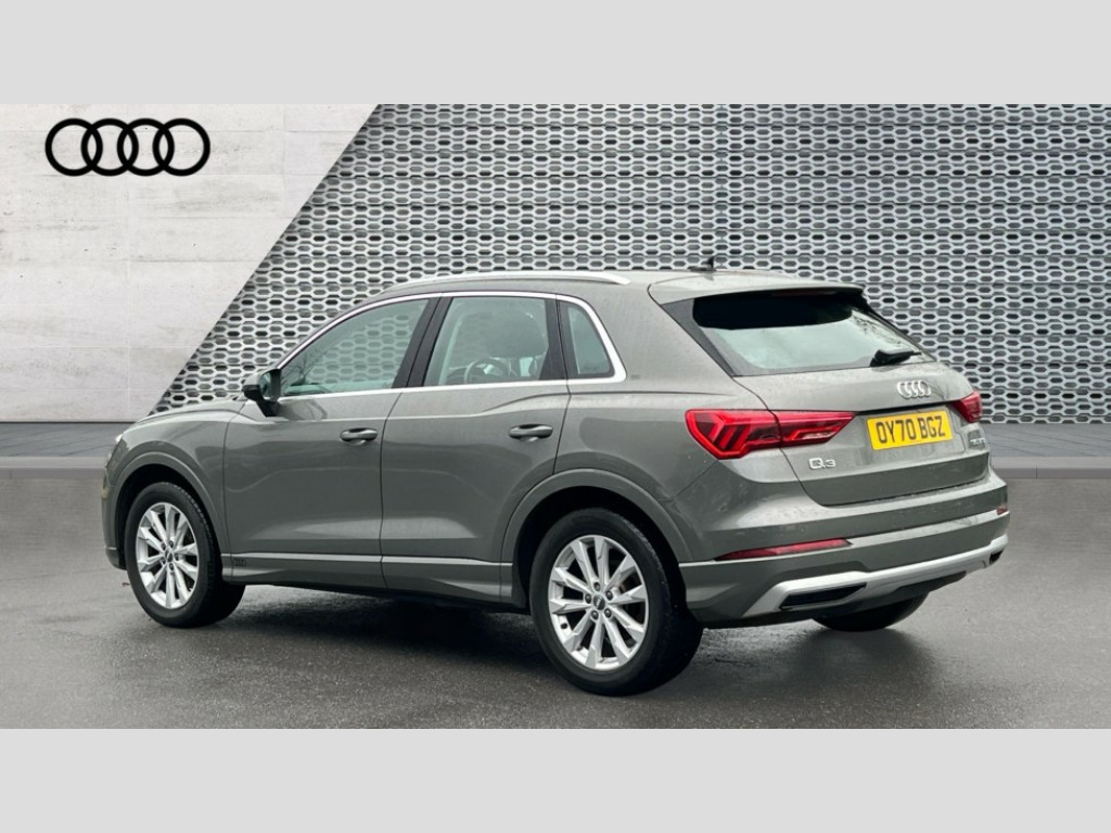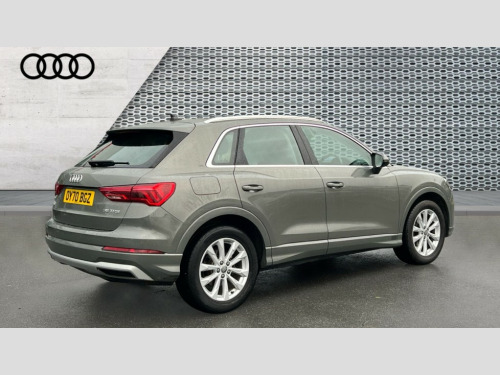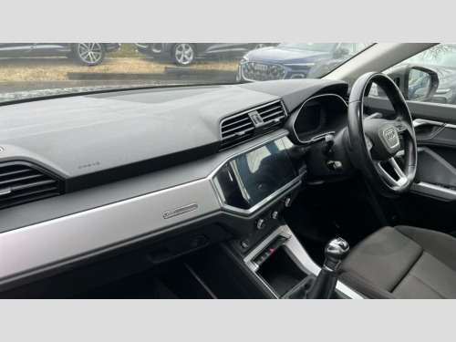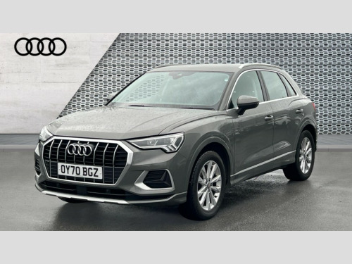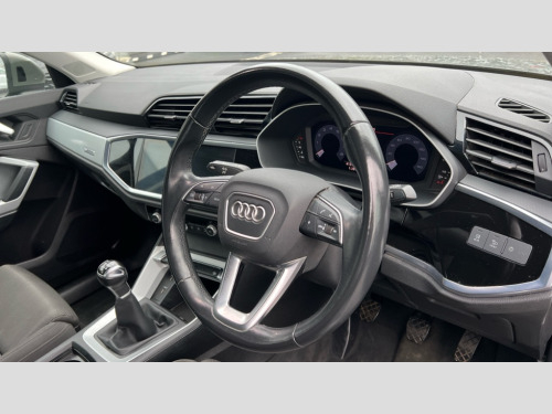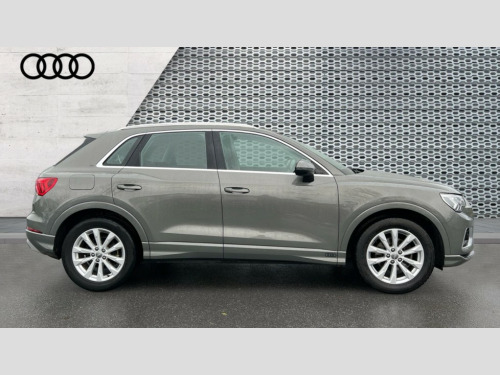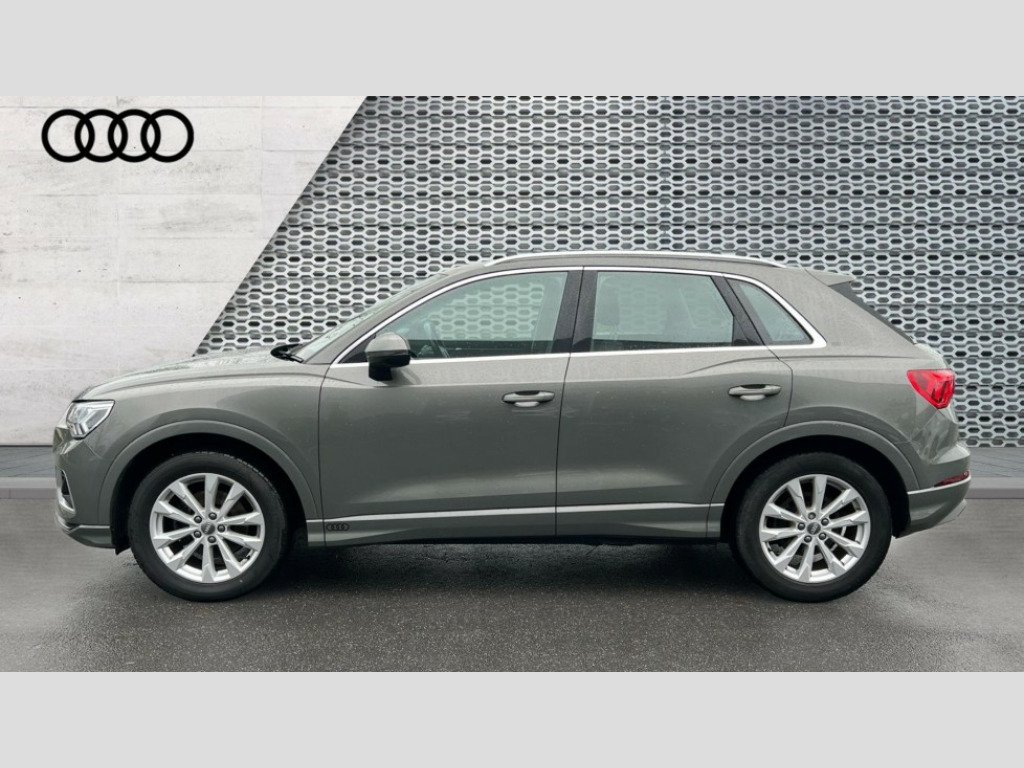 Audi Q3 35 TFSI Sport 5dr Audi connect safety and service (e-call), Audi drive select, Audi lane departure warning, Audi side assist, Audi Virtual Cockpit - 10.25" display, Bluetooth interface, Camera based traffic sign recognition, Cruise control + speed limiter, MMI Navigation Plus with high resolution 10.1 inch touchscreen colour display, Power operated tailgate, Progressive steering, Rear parking sensors, Service interval indicator, Smartphone interface includes wireless Apple carplay/Android Auto, Start stop system with recuperation, Voice control system with natural language interaction, Sports suspension, 1 x USB type C and 1 USB type A charging points, 6 passive loudspeakers, DAB digital radio module, Acoustic windscreen, Aluminium window trim, Auto dimming frameless rear view mirror, Bumpers and underbody protection in contrasting manhattan grey paint finish, Diffuser grille in grained matt black, Diffuser trim in manhattan grey metallic, Door sill trims with illuminated aluminium inlay, Electrically folding, adjustable and heated door mirrors with integrated LED side indicators and kerb view function for passenger side, Front and rear electric windows, Front fog lights, Front side air inlets in Manhattan grey metallic, Grille surround in aluminium silver matt, High gloss black finish B and C pillars, Honeycomb design radiator grille in matt titanium black, LED headlights with LED daytime running lights and dynamic rear indicator, LED rear lights, Rain and light sensors, 12V socket in rear centre console, 40:20:40 folding with manual adjustment for 60:40 forwards/backwards position and backrest angle, Adjustable rear seat bench/backrest, Dual zone electronic climate control, Front and rear floor mats, Front and rear headrests, Front and rear roof module including reading lights, Front centre armrest, Glove compartment lighting, Height and reach adjustable steering wheel, ISOFIX child seat mounting for front passenger with airbag deactivation and outer rear seat including top tether attachment point for outer rear seats, Luggage compartment light, Lunar silver cloth headlining, Manual front seats with height adjustment, Stainless steel luggage compartment sill finisher, Non smoking pack - Q3, 3x3 point rear seatbelts, 6 airbags - Driver, front passenger, curtain and side windows, Audi pre-sense front with pedestrain and cyclist recognition, Electrically operated child locks on rear doors, Electromechanical parking brake, Electronic stabilisation control including ABS, ASR and EDL, Hill descent control, Hill hold assist, Pre sense basic, Seatbelt monitoring, Tyre pressure warning, Warning triangle and first aid kit, Anti theft alarm, Anti theft wheel bolts, Remote central locking, Detail dashboard around MMI touch colour display in glass look, black with surround in aluminium look, Micrometallic silver inlay