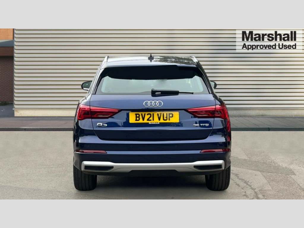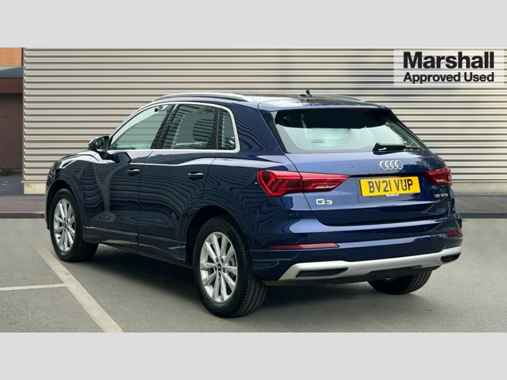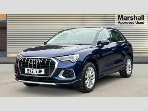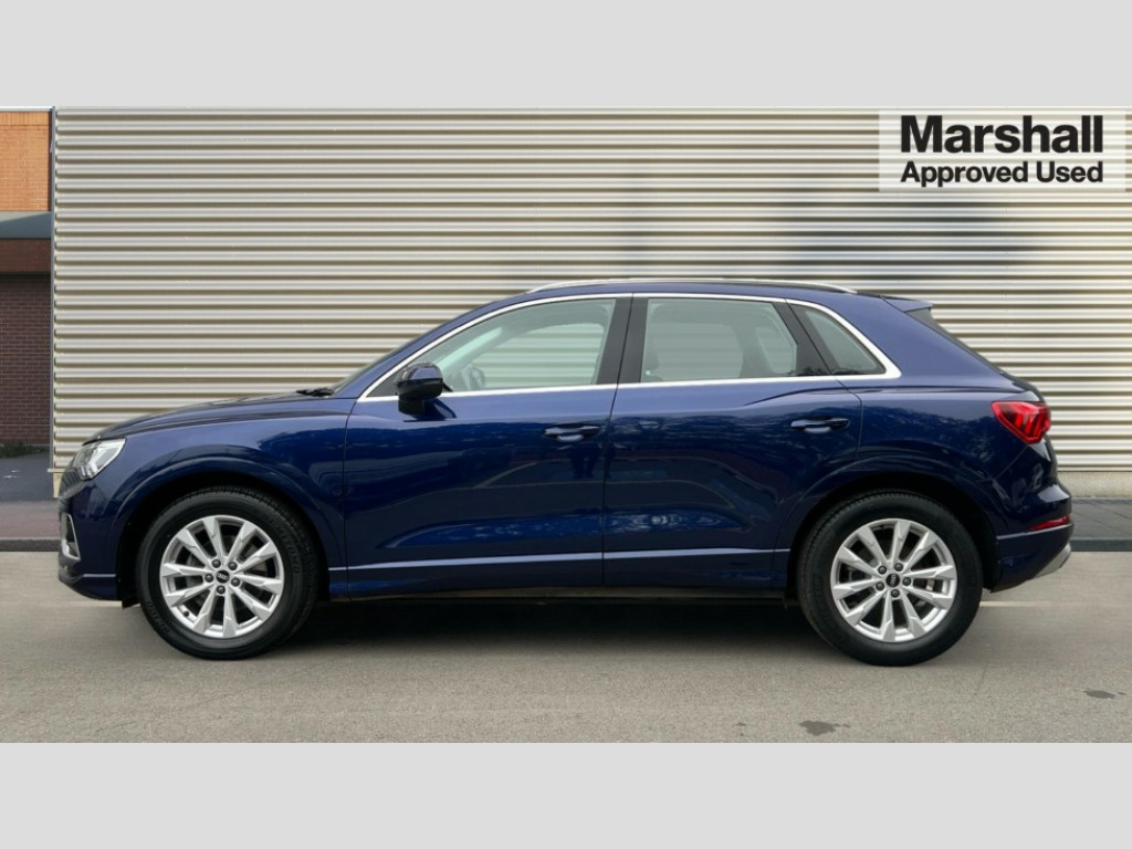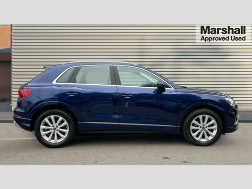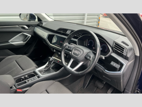 Audi Q3 35 TFSI Sport 5dr S Tronic Audi connect safety and service (e-call), Audi drive select, Audi lane departure warning, Audi Virtual Cockpit - 10.25" display, Bluetooth interface, Camera based traffic sign recognition, MMI Navigation Plus with high resolution 10.1 inch touchscreen colour display, Power operated tailgate, Progressive steering, Service interval indicator, Smartphone interface includes wireless Apple carplay/Android Auto, Start stop system with recuperation, Voice control system with natural language interaction, 48V Mild hybrid technology, Standard suspension, 2 USB-C ports with charge and data functions, 6 passive loudspeakers, DAB digital radio module, Acoustic windscreen, Aluminium roof rails, Aluminium window trim, Auto dimming frameless rear view mirror, Body coloured bumpers, Electrically folding, adjustable and heated door mirrors with integrated LED side indicators and kerb view function for passenger side, Front and rear electric windows, Front fog lights, Front side air inlets in matt selenite silver, Front spoiler in matt selenite silver, Grille vertical bars in aluminium silver/Matt, High gloss black finish B and C pillars, LED headlights with LED daytime running lights and dynamic rear indicator, LED rear lights, Rain and light sensors, Rear diffuser strip in matt selenite silver, Silver chrome grille surround, Titanium black radiator grille, 12V socket in rear centre console, 3 spoke multi-function leather steering wheel, 40:20:40 folding with manual adjustment for 60:40 forwards/backwards position and backrest angle, Adjustable rear seat bench/backrest, Aluminium door sill trims, Dual zone electronic climate control, Front and rear floor mats, Front and rear headrests, Front and rear roof module including reading lights, Front centre armrest, Glove compartment lighting, Height and reach adjustable steering wheel, ISOFIX child seat mounting for front passenger with airbag deactivation and outer rear seat including top tether attachment point for outer rear seats, Luggage compartment light, Lunar silver cloth headlining, Manual front seats with height adjustment, Stainless steel luggage compartment sill finisher, Non smoking pack - Q3, 3x3 point rear seatbelts, 6 airbags - Driver, front passenger, curtain and side windows, Audi pre-sense front with pedestrain and cyclist recognition, Electrically operated child locks on rear doors, Electromechanical parking brake, Electronic stabilisation control including ABS, ASR and EDL, Hill descent control, Hill hold assist, Pre sense basic, Seatbelt monitoring, Tyre pressure warning, Warning triangle and first aid kit, Anti theft alarm, Anti theft wheel bolts, Remote central locking, Detail dashboard around MMI touch colour display in glass look, black with surround in aluminium look, Micrometallic silver inlay, Tool kit, Tyre repair kit
