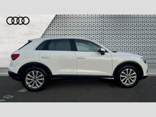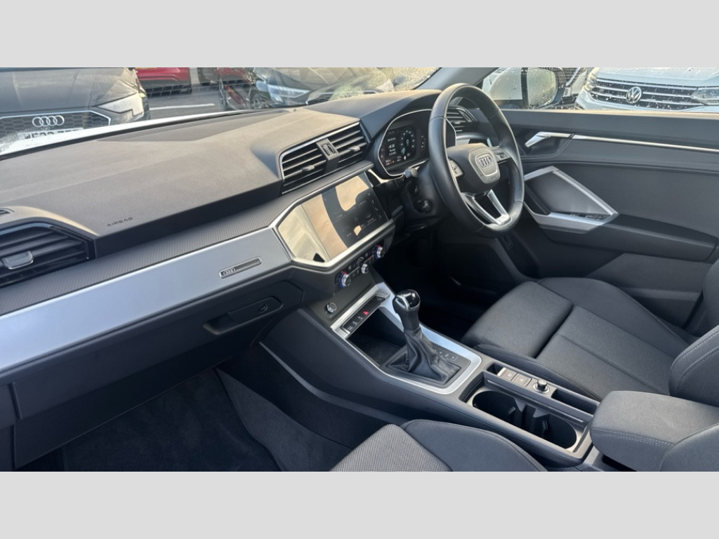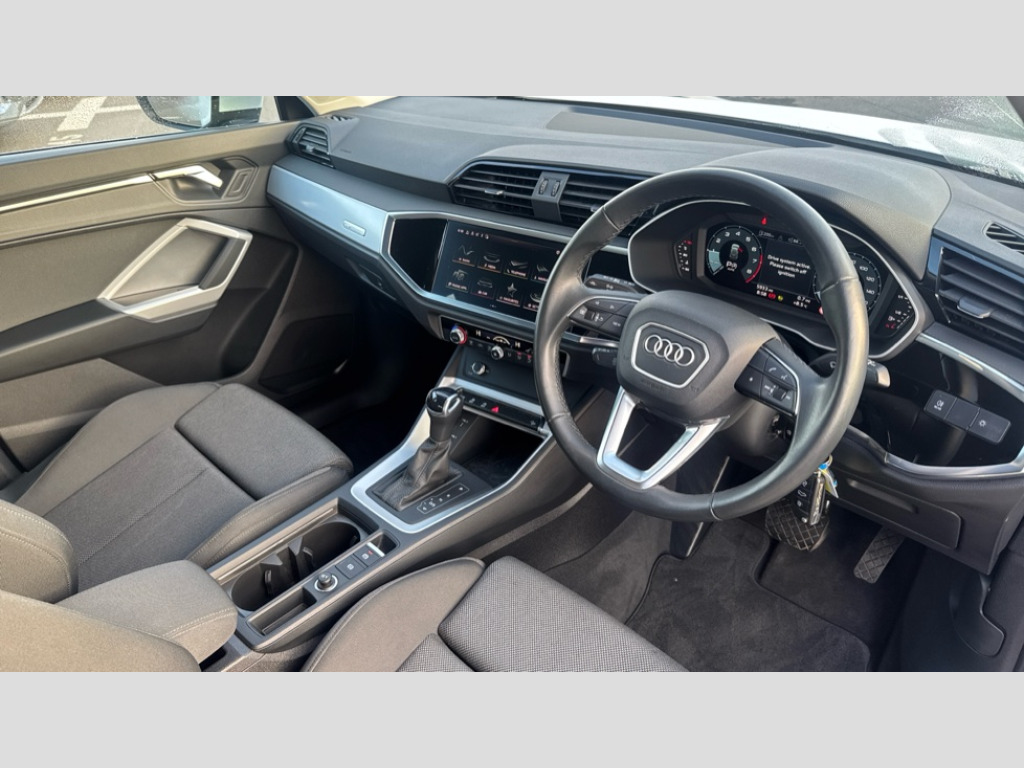 Audi Q3 35 TFSI Sport 5dr S Tronic Amazon alexa Integration, Audi connect safety and service, Audi drive select, Audi lane departure warning, Audi Virtual Cockpit - 10.25" display, Bluetooth interface, Camera based traffic sign recognition, Distraction and Fatigue warning, Legal emergency call, MMI Navigation Plus with high resolution 10.1 inch touchscreen colour display, Power operated tailgate, Progressive steering, Service interval indicator, Smartphone interface includes wireless Apple carplay/Android Auto, Start stop system with recuperation, Voice control system with natural language interaction, Standard suspension, 2 USB-C ports with charge and data functions, 6 passive loudspeakers, DAB digital radio module, Acoustic windscreen, Aluminium roof rails, Aluminium window trim, Anthracite black radiator grille, Auto dimming door mirrors, Auto dimming frameless rear view mirror, Electrically folding, adjustable and heated door mirrors with integrated LED side indicators and kerb view function for passenger side, Front and rear bumpers, wheel arch trims and side sill trims in contrasting Manhattan grey paint finish, Front and rear electric windows, Front fog lights, Front side air inlets in matt selenite silver, Front spoiler in matt selenite silver, Grille vertical bars in aluminium silver/Matt, High gloss black finish B and C pillars, LED headlights with LED daytime running lights, LED third brake light, Rain and light sensors, Rear diffuser strip in matt selenite silver, Rear side wing doors, Rear wiper, Variable front intermittent wipers, 12V socket in rear centre console, 3 seat bench in 2nd row, 3 spoke multi-function leather steering wheel, 40:20:40 folding with manual adjustment for 60:40 forwards/backwards position and backrest angle, Door sill trims with aluminium inlay, Dual zone electronic climate control, Electric lumbar support, Front and rear floor mats, Front and rear headrests, Front centre armrest, Height and reach adjustable steering wheel, ISOFIX child seat mounting for front passenger with airbag deactivation and outer rear seat including top tether attachment point for outer rear seats, Lunar silver cloth headlining, Manual front seats with height adjustment, Single front passenger seat, Stainless steel luggage compartment sill finisher, Non smoking pack - Q3, 3x3 point rear seatbelts, 6 airbags - Driver, front passenger, curtain and side windows, Audi pre-sense front with pedestrain and cyclist recognition, Electrically operated child locks on rear doors, Electromechanical parking brake, Electronic stabilisation control including ABS, ASR and EDL, Front seatbelt reminder, Hill descent control, Hill hold assist, Pre sense basic, Seatbelt monitoring, Tyre pressure warning, Warning triangle and first aid kit, Anti theft alarm, Anti theft wheel bolts, Immobiliser, Remote central locking, Aluminium look interior elements, Detail dashboard around MMI touch colour display in glass look, black with surround in aluminium look, Micrometallic silver inlay