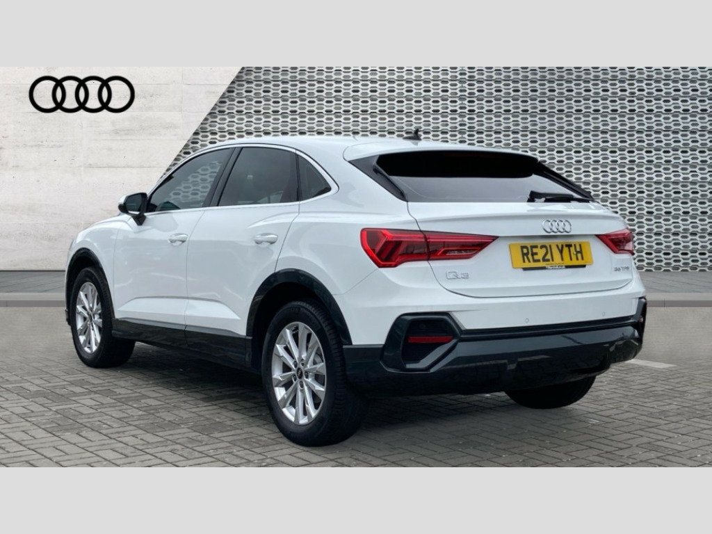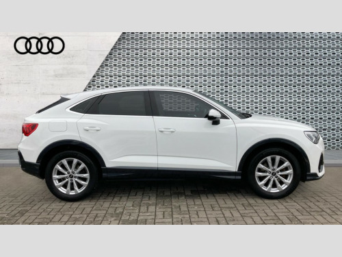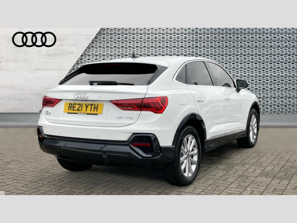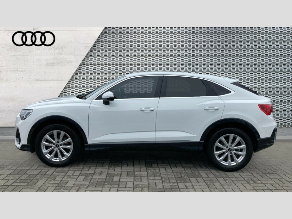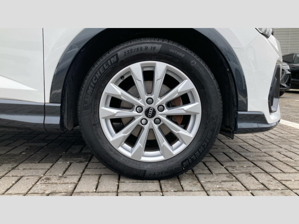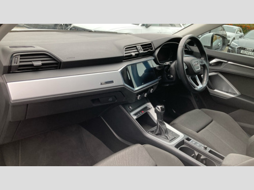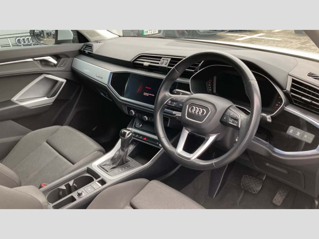 Audi Q3 35 TFSI Sport 5dr S Tronic Audi connect safety and service (e-call), Audi drive select, Audi lane departure warning, Audi Virtual Cockpit - 10.25" display, Bluetooth interface, Camera based traffic sign recognition, MMI Navigation Plus with high resolution 10.1 inch touchscreen colour display, Power operated tailgate, Progressive steering, Service interval indicator, Smartphone interface includes wireless Apple carplay/Android Auto, Start stop system with recuperation, Voice control system with natural language interaction, 48V Mild hybrid technology, Sports suspension, 2 USB-C ports with charge and data functions, 6 passive loudspeakers, DAB digital radio module, Acoustic windscreen, Aluminium window trim, Auto dimming frameless rear view mirror, Bumpers and underbody protection in contrasting manhattan grey paint finish, Diffuser grille in grained matt black, Diffuser trim in manhattan grey metallic, Door sill trims with illuminated aluminium inlay, Electrically folding, adjustable and heated door mirrors with integrated LED side indicators and kerb view function for passenger side, Front and rear electric windows, Front fog lights, Front side air inlets in Manhattan grey metallic, Grille surround in aluminium silver matt, High gloss black finish B and C pillars, Honeycomb design radiator grille in matt titanium black, LED headlights with LED daytime running lights and dynamic rear indicator, LED rear lights, Rain and light sensors, 12V socket in rear centre console, 3 spoke multi-function leather steering wheel, 40:20:40 folding with manual adjustment for 60:40 forwards/backwards position and backrest angle, Adjustable rear seat bench/backrest, Dual zone electronic climate control, Front and rear floor mats, Front and rear headrests, Front and rear roof module including reading lights, Front centre armrest, Glove compartment lighting, Height and reach adjustable steering wheel, ISOFIX child seat mounting for front passenger with airbag deactivation and outer rear seat including top tether attachment point for outer rear seats, Luggage compartment light, Lunar silver cloth headlining, Manual front seats with height adjustment, Stainless steel luggage compartment sill finisher, Non smoking pack - Q3, 3x3 point rear seatbelts, 6 airbags - Driver, front passenger, curtain and side windows, Audi pre-sense front with pedestrain and cyclist recognition, Electrically operated child locks on rear doors, Electromechanical parking brake, Electronic stabilisation control including ABS, ASR and EDL, Hill descent control, Hill hold assist, Pre sense basic, Seatbelt monitoring, Tyre pressure warning, Warning triangle and first aid kit, Anti theft alarm, Anti theft wheel bolts, Remote central locking, Black dashboard, Detail dashboard around MMI touch colour display in glass look, black with surround in aluminium look, Micrometallic silver inlay, Tool kit, Tyre repair kit