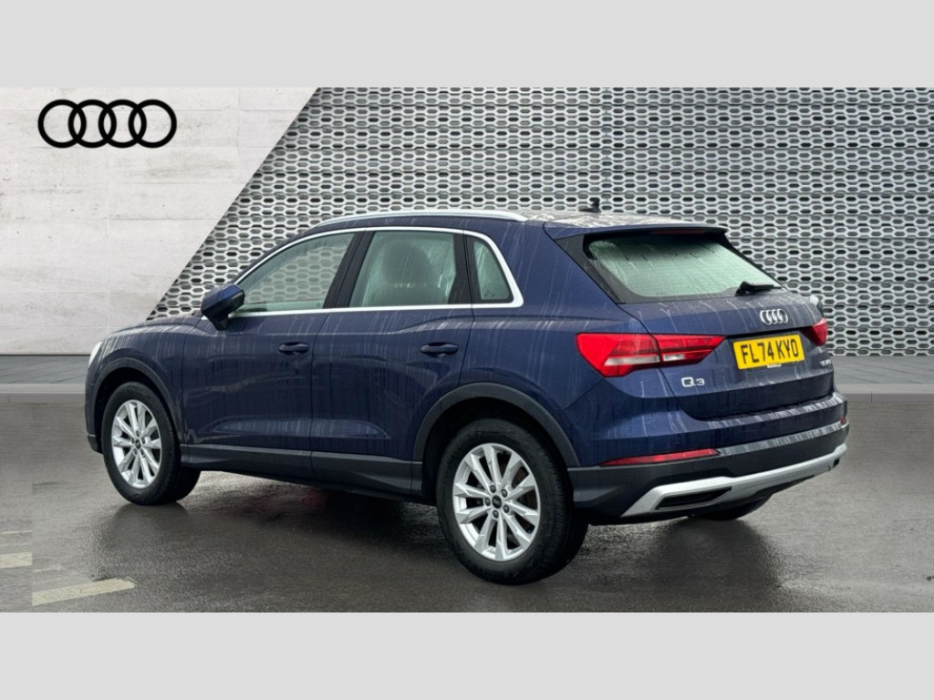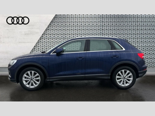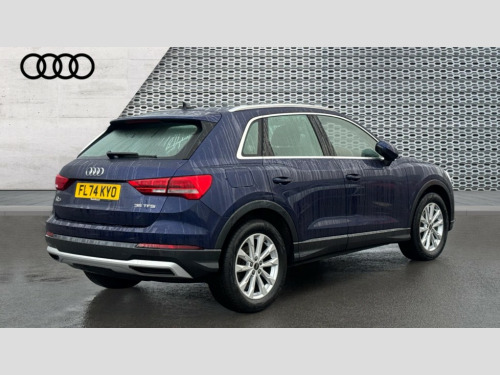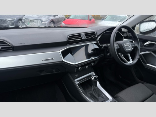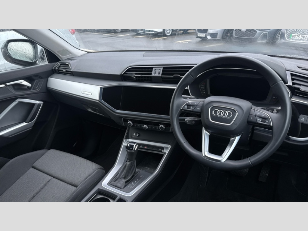 Audi Q3 35 TFSI Sport 5dr S Tronic Amazon alexa Integration, Audi connect safety and service, Audi drive select, Audi lane departure warning, Audi Virtual Cockpit - 10.25" display, Bluetooth interface, Camera based traffic sign recognition, Distraction and Fatigue warning, Legal emergency call, MMI Navigation Plus with high resolution 10.1 inch touchscreen colour display, Power operated tailgate, Progressive steering, Service interval indicator, Smartphone interface includes wireless Apple carplay/Android Auto, Start stop system with recuperation, Voice control system with natural language interaction, Standard suspension, 2 USB-C ports with charge and data functions, 6 passive loudspeakers, DAB digital radio module, Acoustic windscreen, Aluminium roof rails, Aluminium window trim, Anthracite black radiator grille, Auto dimming door mirrors, Auto dimming frameless rear view mirror, Electrically folding, adjustable and heated door mirrors with integrated LED side indicators and kerb view function for passenger side, Front and rear bumpers, wheel arch trims and side sill trims in contrasting Manhattan grey paint finish, Front and rear electric windows, Front fog lights, Front side air inlets in matt selenite silver, Front spoiler in matt selenite silver, Grille vertical bars in aluminium silver/Matt, High gloss black finish B and C pillars, LED headlights with LED daytime running lights, LED third brake light, Rain and light sensors, Rear diffuser strip in matt selenite silver, Rear side wing doors, Rear wiper, Variable front intermittent wipers, 12V socket in rear centre console, 3 seat bench in 2nd row, 3 spoke multi-function leather steering wheel, 40:20:40 folding with manual adjustment for 60:40 forwards/backwards position and backrest angle, Door sill trims with aluminium inlay, Dual zone electronic climate control, Electric lumbar support, Front and rear floor mats, Front and rear headrests, Front centre armrest, Height and reach adjustable steering wheel, ISOFIX child seat mounting for front passenger with airbag deactivation and outer rear seat including top tether attachment point for outer rear seats, Lunar silver cloth headlining, Manual front seats with height adjustment, Single front passenger seat, Stainless steel luggage compartment sill finisher, Non smoking pack - Q3, 3x3 point rear seatbelts, 6 airbags - Driver, front passenger, curtain and side windows, Audi pre-sense front with pedestrain and cyclist recognition, Electrically operated child locks on rear doors, Electromechanical parking brake, Electronic stabilisation control including ABS, ASR and EDL, Front seatbelt reminder, Hill descent control, Hill hold assist, Pre sense basic, Seatbelt monitoring, Tyre pressure warning, Warning triangle and first aid kit, Anti theft alarm, Anti theft wheel bolts, Immobiliser, Remote central locking, Aluminium look interior elements, Detail dashboard around MMI touch colour display in glass look, black with surround in aluminium look, Micrometallic silver inlay