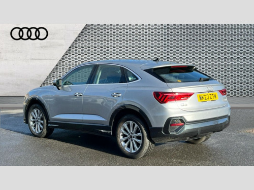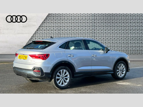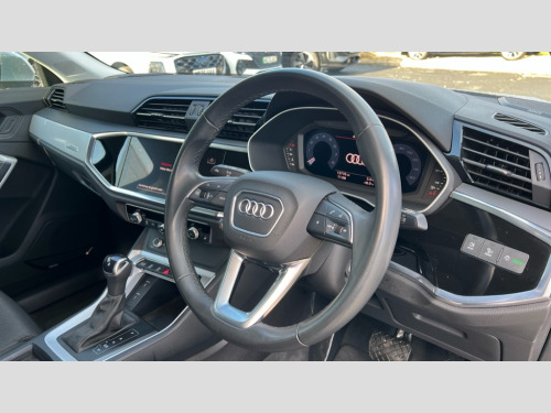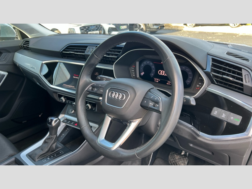 Audi Q3 35 TFSI Sport 5dr [Comfort+Sound Pack] Audi drive select, Audi lane departure warning, Audi Virtual Cockpit - 10.25" display, Bluetooth interface, Camera based traffic sign recognition, Legal emergency call, MMI Navigation Plus with high resolution 10.1 inch touchscreen colour display, Power operated tailgate, Progressive steering, Reversing camera, Service interval indicator, Smartphone interface includes wireless Apple carplay/Android Auto, Start stop system with recuperation, Voice control system with natural language interaction, Sports suspension, 2 USB-C ports with charge and data functions, DAB digital radio module, SONOS premium sound system, Acoustic windscreen, Aluminium window trim, Auto dimming frameless rear view mirror, Bumpers and underbody protection in contrasting manhattan grey paint finish, Diffuser grille in grained matt black, Diffuser trim in manhattan grey metallic, Door sill trims with illuminated aluminium inlay, Electrically folding, adjustable and heated door mirrors with integrated LED side indicators and kerb view function for passenger side, Front and rear electric windows, Front fog lights, Front side air inlets in Manhattan grey metallic, Grille surround in aluminium silver matt, High gloss black finish B and C pillars, Honeycomb design radiator grille in matt anthracite black, LED Dynamic rear indicators, LED headlights with LED daytime running lights, LED rear lights, LED third brake light, Rain and light sensors, Rear side wing doors, Rear wiper, Variable front intermittent wipers, 12V socket in rear centre console, 3 seat bench in 2nd row, 3 spoke multi-function leather steering wheel, 40:20:40 folding with manual adjustment for 60:40 forwards/backwards position and backrest angle, Dual zone electronic climate control, Front and rear floor mats, Front and rear headrests, Front and rear roof module including reading lights, Front centre armrest, Glove compartment lighting, Heated front seats, Height and reach adjustable steering wheel, ISOFIX child seat mounting for front passenger with airbag deactivation and outer rear seat including top tether attachment point for outer rear seats, Luggage compartment light right in white, Luggage compartment sill protection in stainless steel, Lunar silver cloth headlining, Manual front seats with height adjustment, Single front passenger seat, Non smoking pack - Q3, 3x3 point rear seatbelts, 6 airbags - Driver, front passenger, curtain and side windows, Audi pre-sense front with pedestrain and cyclist recognition, Electrically operated child locks on rear doors, Electromechanical parking brake, Electronic stabilisation control including ABS, ASR and EDL, Front seatbelt reminder, Hill descent control, Hill hold assist, Pre sense basic, Seatbelt monitoring, Tyre pressure warning, Warning triangle and first aid kit, Anti theft alarm, Anti theft wheel bolts, Immobiliser, Remote central locking, Aluminium look interior elements, Black dashboard, Detail dashboard around MMI touch colour display in glass look, black with surround in aluminium look, Micrometallic silver inlay