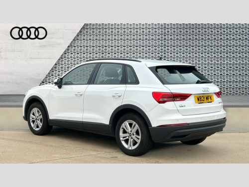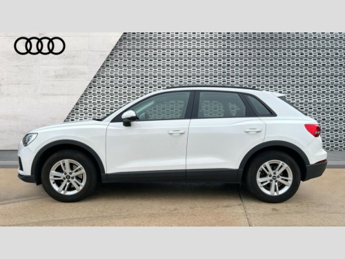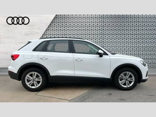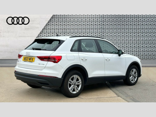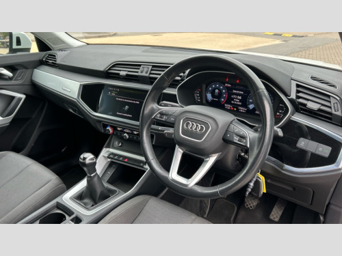 Audi Q3 35 TFSI Technik 5dr Amazon alexa Integration, Audi connect safety and service (e-call), Audi drive select, Audi lane departure warning, Audi Virtual Cockpit - 10.25" display, Bluetooth interface, Camera based traffic sign recognition, Cruise control + speed limiter, MMI Navigation Plus with high resolution 10.1 inch touchscreen colour display, Power operated tailgate, Progressive steering, Rear parking sensors, Service interval indicator, Smartphone interface includes wireless Apple carplay/Android Auto, Start stop system with recuperation, Voice control system with natural language interaction, Standard suspension, 2 USB-C ports with charge and data functions, 6 passive loudspeakers, DAB digital radio module, Acoustic windscreen, Auto dimming frameless rear view mirror, Black roof rails, Body colour door mirrors, Diffuser in grained anthracite, Electrically folding, adjustable and heated door mirrors with integrated LED side indicators and kerb view function for passenger side, Exterior bumper with wheel arch trims and side sill trims in grained black matt, Front and rear electric windows, Grained radiator protective grille, Halogen rear lights, LED headlights with LED daytime running lights, Rain and light sensors, 12V socket in rear centre console, 3 spoke multi-function leather steering wheel, 40:20:40 folding with manual adjustment for 60:40 forwards/backwards position and backrest angle, Dual zone electronic climate control, Front and rear floor mats, Front and rear headrests, Front and rear roof module including reading lights, Front centre armrest, Glove compartment lighting, Height and reach adjustable steering wheel, ISOFIX child seat mounting for front passenger with airbag deactivation and outer rear seat including top tether attachment point for outer rear seats, Luggage compartment light, Lunar silver cloth headlining, Manual front seats with height adjustment, Stainless steel luggage compartment sill finisher, Non smoking pack - Q3, 3x3 point rear seatbelts, 6 airbags - Driver, front passenger, curtain and side windows, Audi pre-sense front with pedestrain and cyclist recognition, Electrically operated child locks on rear doors, Electromechanical parking brake, Electronic stabilisation control including ABS, ASR and EDL, Hill descent control, Hill hold assist, Pre sense basic, Seatbelt monitoring, Tyre pressure warning, Warning triangle and first aid kit, Anti theft alarm, Anti theft wheel bolts, Remote central locking, Detail dashboard around MMI touch colour display in glass look, black with surround in aluminium look, Micrometallic silver inlay, 17" 5 twin spoke design alloy wheels