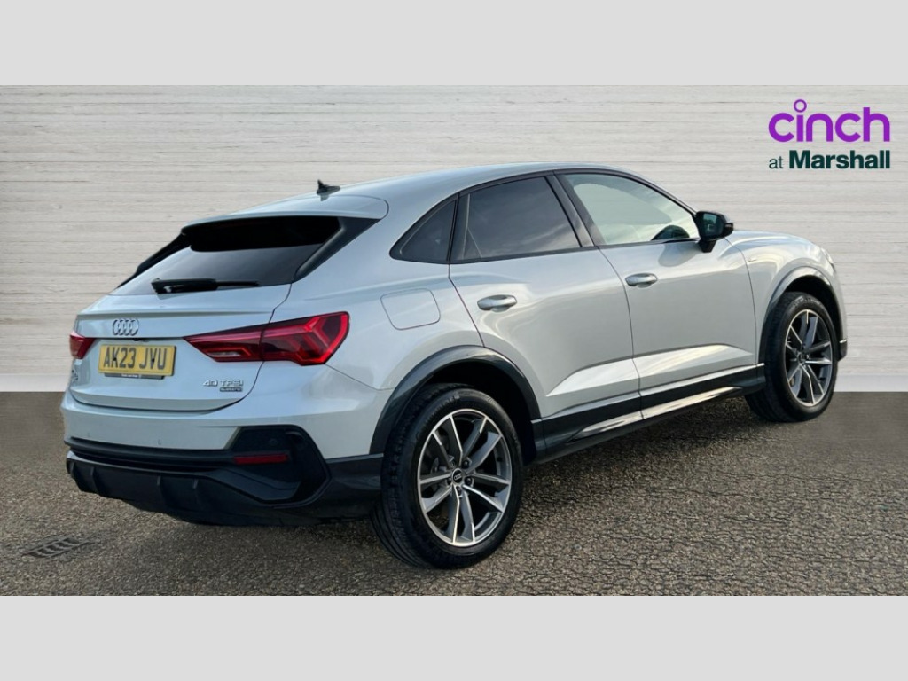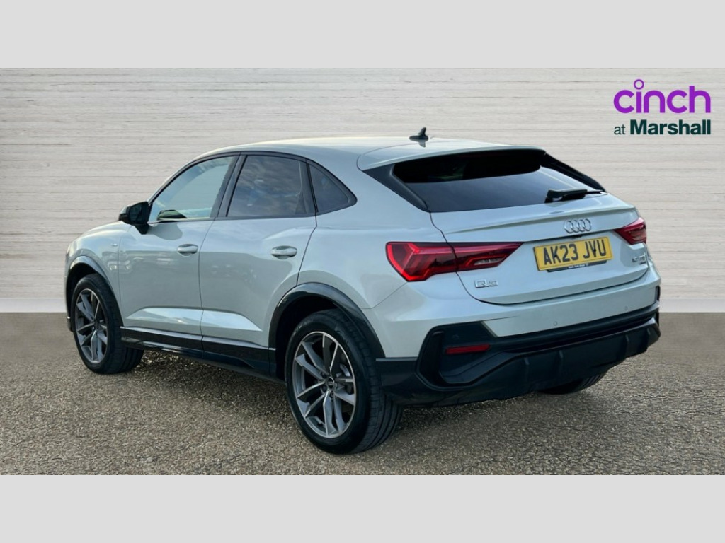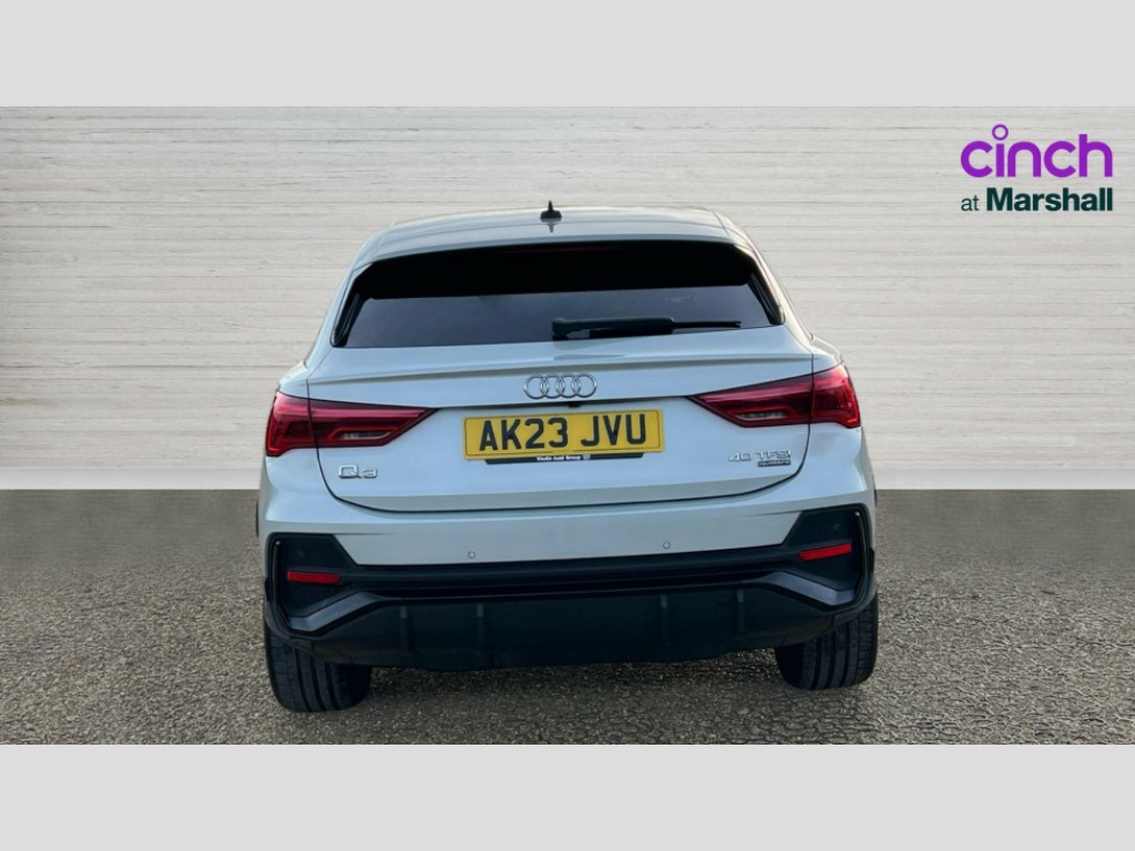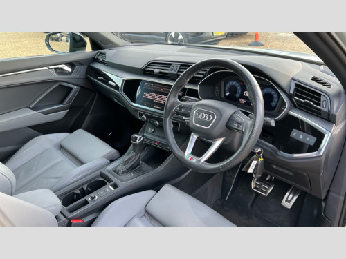 Audi Q3 40 TFSI Quattro Black Edition 5dr S Tronic Audi drive select, Audi lane departure warning, Audi Virtual Cockpit - 10.25" display, Bluetooth interface, Camera based traffic sign recognition, Legal emergency call, MMI Navigation Plus with high resolution 10.1 inch touchscreen colour display, Power operated tailgate, Progressive steering, Service interval indicator, Smartphone interface includes wireless Apple carplay/Android Auto, Start stop system with recuperation, Voice control system with natural language interaction, Sports suspension, 2 USB-C ports with charge and data functions, 6 passive loudspeakers, DAB digital radio module, Acoustic windscreen, Auto dimming frameless rear view mirror, Diffuser grille in grained matt black, Diffuser trim in selenite silver, Electrically folding, adjustable and heated door mirrors with integrated LED side indicators and kerb view function for passenger side, Front and rear electric windows, Front fog lights, Front underbody protection in manhattan grey paint finish, High gloss black finish B and C pillars, LED Dynamic rear indicators, LED headlights with LED daytime running lights, LED rear lights, LED third brake light, Privacy glass dark tinted rear and rear-side windows (from B-pillar backwards), Rain and light sensors, Rear side wing doors, Rear underbody protection in matt black, Rear wiper, Variable front intermittent wipers, 12V socket in rear centre console, 3 seat bench in 2nd row, 40:20:40 folding with manual adjustment for 60:40 forwards/backwards position and backrest angle, Adjustable rear seat bench/backrest with centre armrest and cupholder, Black cloth headlining, Dual zone electronic climate control, Front and rear black floor mats with contrast stitching, Front and rear headrests, Front and rear roof module including reading lights, Front centre armrest, Glove compartment lighting, Height and reach adjustable steering wheel, Illuminated door sill trims with S logo, ISOFIX child seat mounting for front passenger with airbag deactivation and outer rear seat including top tether attachment point for outer rear seats, Luggage compartment light right in white, Luggage compartment sill protection in stainless steel, Manual front seats with height adjustment, Perforated leather gearknob, Single front passenger seat, Stainless steel pedals, Ambient lighting pack - Q3, Black styling pack - Q3, Non smoking pack - Q3, 3x3 point rear seatbelts, 6 airbags - Driver, front passenger, curtain and side windows, Audi pre-sense front with pedestrain and cyclist recognition, Electrically operated child locks on rear doors, Electromechanical parking brake, Electronic stabilisation control including ABS, ASR and EDL, Front seatbelt reminder, Hill descent control, Hill hold assist, Pre sense basic, Seatbelt monitoring, Tyre pressure warning, Warning triangle and first aid kit, Anti theft alarm, Anti theft wheel bolts, Immobiliser, Remote central locking, Aluminium look interior elements, Black dashboard, Detail dashboard around MMI touch colour display in glass look, black with surround in aluminium look, Leatherette door armrest, Piano black inlay, 19" 5 twin arm design diamond cut audi sport alloy wheels in matt grey look