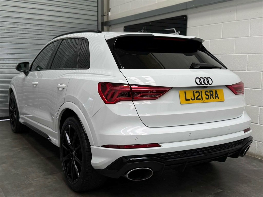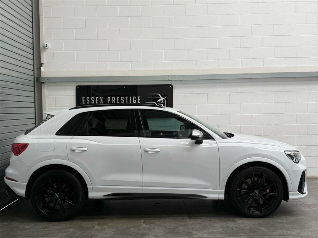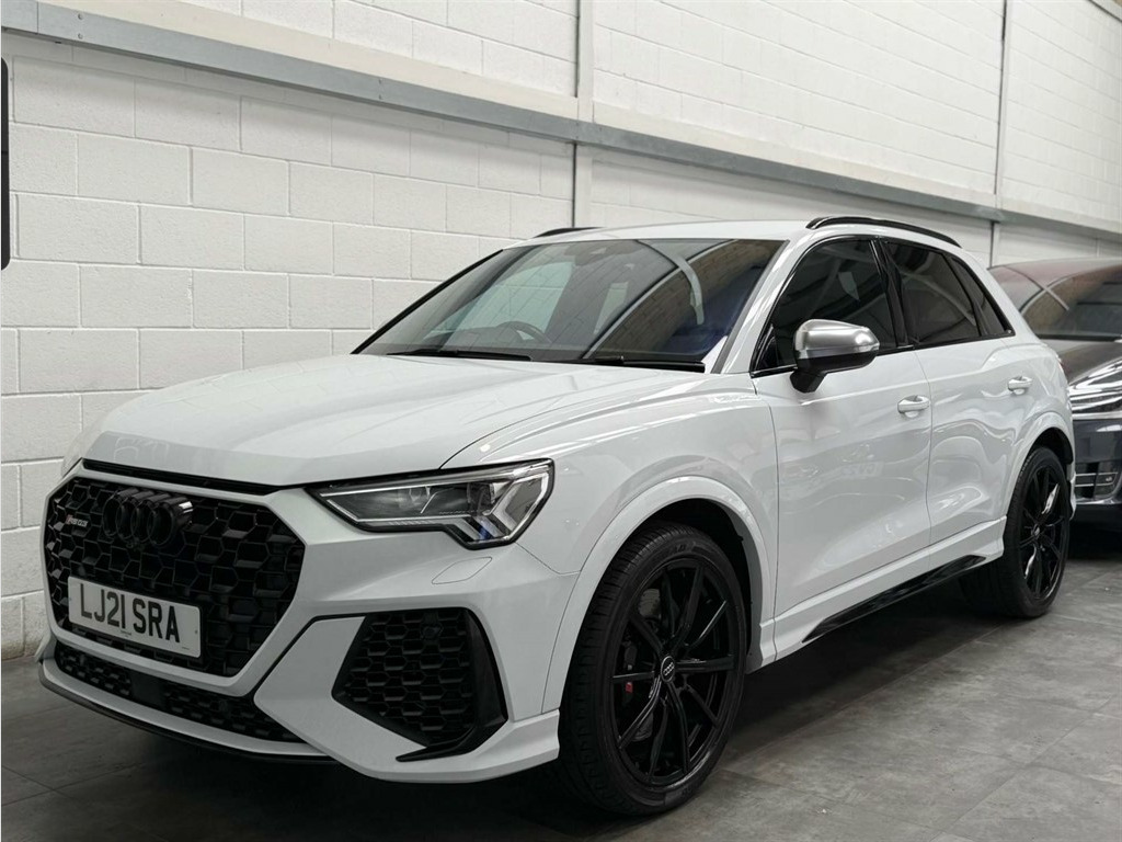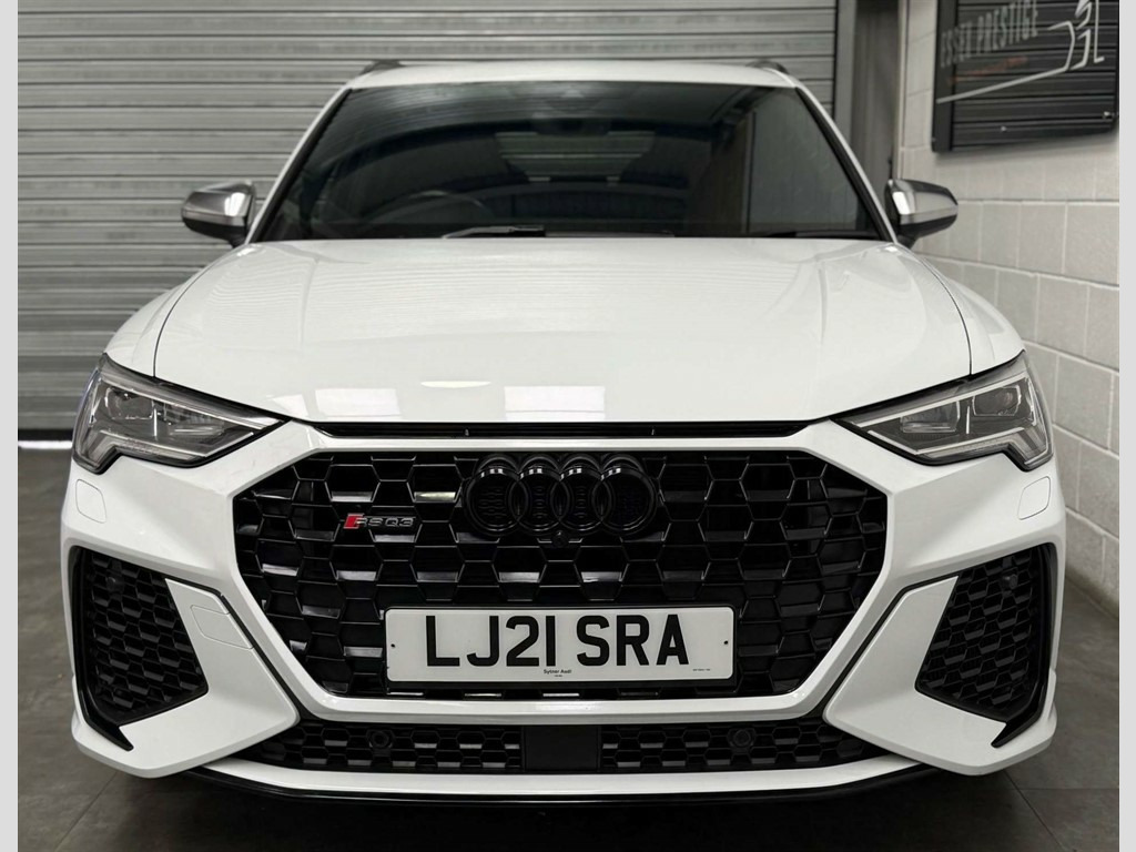 Full Service History, Sat Nav, Black Pack, Rear View Camera, Bang And Olufsen Sound System, Supersport Seats, 1 x USB-C and 1 x USB-A Port with Charge and Data Functions,20in Alloy Wheels - 8.5J 10-Star-Spoke Design,4-Way Electric Lumbar Support,6-Airbag System,Adjustable Rear Seat Bench-Backrest with Centre Armrest and Cupholder,Advanced Key,Aluminium Look Interior Elements,Aluminium Roof Rails,Aluminium Window Trims,Ambient Lighting Pack,Anti Theft Locking Wheel Bolts,Anti-Theft Alarm,Audi Beam,Audi Connect Safety and Service - e-call,Audi Drive Select,Audi Pre-Sense Basic,Audi Pre-Sense Front with Pedestrian and Cyclist Recognition,Audi Smartphone Interface includes Wireless Apple CarPlay,Audi Sound System,Audi Virtual Cockpit - 12.3in High Resolution LCD Display,Auto Dimming and Frameless Rear View Mirror,B and C-Pillar Trim in High-Gloss Black,Bluetooth Interface,Body Coloured Rear Spoiler,Camera-Based Traffic Sign Recognition,Cloth Headlining in Black,Cruise Control System with Speed Limiter,DAB Digital Radio,Detail in Dashboard Around the MMI Touch Colour Display in Glass Look - Black with Surround in Aluminium Look,Door Mirrors - Electrically Folding - Adjustable and Heated with Integrated LED Side Indicators and Kerb-view Function for Passenger Side,Dual-Zone Electronic Climate Control,ESC - Electronic Stabilisation Control inc ABS - ASR and EDL,Electric Windows - Front,Electrically Adjustable Front Seats,Electromechanical Parking Brake,Exterior Mirror Housings in Aluminium Look,First Aid Kit and Warning Triangle,Flared Wheel Arches - by 10mm,Flat Slits above Singleframe Grille,Front Centre Armrest,Front RS Sports Seats,Front Spoiler Blade - Side Blades - Inserts on Door Trim Strips and Diffuser Insert in Matt Aluminium Look,Front and Rear Floor Mats,Headlights Washers,Heated Front Seats,Hill Descent Control,Hill Hold Assist,ISOFIX Child Seat Mounting for the Front Passenger Seat with Front Passenger Airbag Deactivation and ISOFIX Child Seat Mounting and Top Tether for the Outer Rear Seats,Illuminated Door Sill Trims with RS Q3 Logo at Front,Inlays - Aluminium Race - Anthracite,Interior Elements in Black Alcantara,LED Headlights with LED Daytime Running Lights and Dynamic Rear Indicator,LED Rear Lights,Lane Departure Warning,Light and Rain Sensor,Luggage Compartment Sill Protection in Stainless Steel,MMI Navigation Plus with High Resolution 10.1in Touchscreen Colour Display,Non-Smoking Package,Parking System Plus - Front and Rear Sensors,Pedals in Stainless Steel,Power Operated Tailgate,Privacy Glass - Dark-Tinted Rear and Rear-Side Windows - From B-Pillar Backwards,Progressive Steering,RS Brake System with Brake Calipers in Black,RS Flat Bottomed Leather Multifunction Steering Wheel,RS Specific Front and Rear Bumpers,RS Sports Suspension,Radiator Grille with Honeycomb Design in Gloss Black,Seat Belt Monitoring,Tool Kit,Tyre Pressure Warning Light,Tyre Repair Kit,Voice Control System with Natural Language Interaction,Windscreen in Acoustic Glazing,Audi Connect Infotainment Services Plus including Amazon Alexa Integration (3 Year Subscription From New),Glacier White