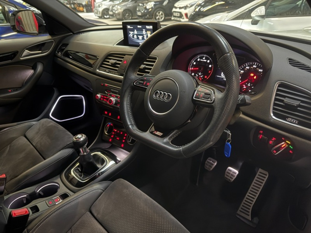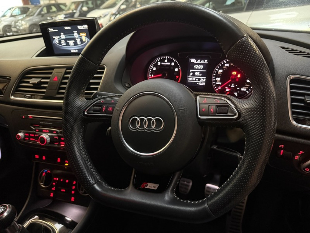This 2018 Audi Q3 TFSI Black Edition offers exceptional value with remarkably low mileage for its age, having covered just 44,000 miles. With a Full Service History, As a Euro 6 compliant vehicle, it features a 1.4 litre petrol engine and is presented in the sought after Black Edition trim. This particular Q3 comes equipped with the Audi Parking System Advanced, which includes a reversing camera, front and rear parking sensors, and parking assistance. Further enhancing its appeal is the Comfort and Sound Package, adding a premium BOSE sound system and heated seats for an even more enjoyable driving experience. The interior is further distinguished by a flat bottomed, three spoke perforated leather trimmed multifunction steering wheel with contrast stitching and an aluminium gear knob, complemented by a Bluetooth interface for seamless connectivity. The Q3 TFSI Black Edition delivers an impressive fuel economy of 49 miles per gallon, a highlight that demonstrates its efficiency compared to other vehicles in its class. Its CO2 emissions are also low, contributing to its cost effective ownership. For those who appreciate performance, this Audi Q3 accelerates from 0 to 62 miles per hour in just 9.2 seconds, offering a responsive and engaging drive. These combined highlights underscore the Q3's blend of practicality, comfort, and performance, making it a compelling choice. HPi Clear. PLEASE CONTACT US PRIOR TO YOUR VISIT TO CONFIRM YOUR APPOINTMENT, AS WE ARE AN AA CARS DEALER THIS VEHICLE COMES WITH A FULL AA MOT HISTORY CHECK AND ALSO 12 MONTHS FREE BREAKDOWN COVER, FINANCE PACKAGES AVAILABLE WITH ALL LEADING LENDERS INC CLOSE BROTHERS | ZUTO Finance subject to terms and conditions (please see our website for full details)