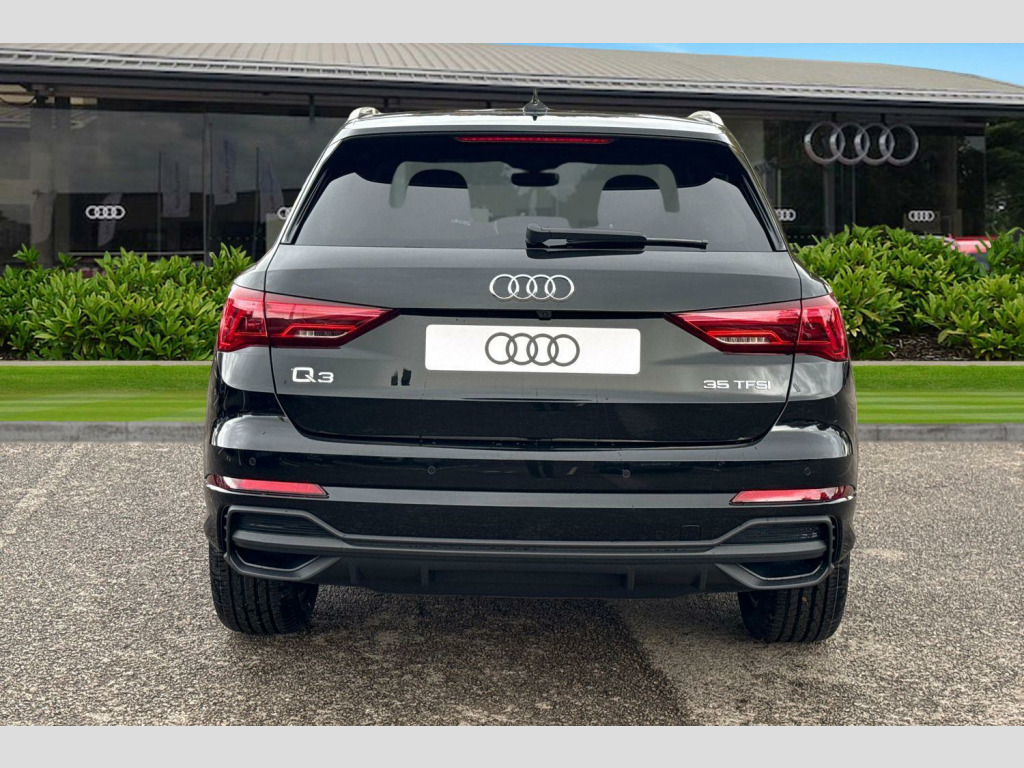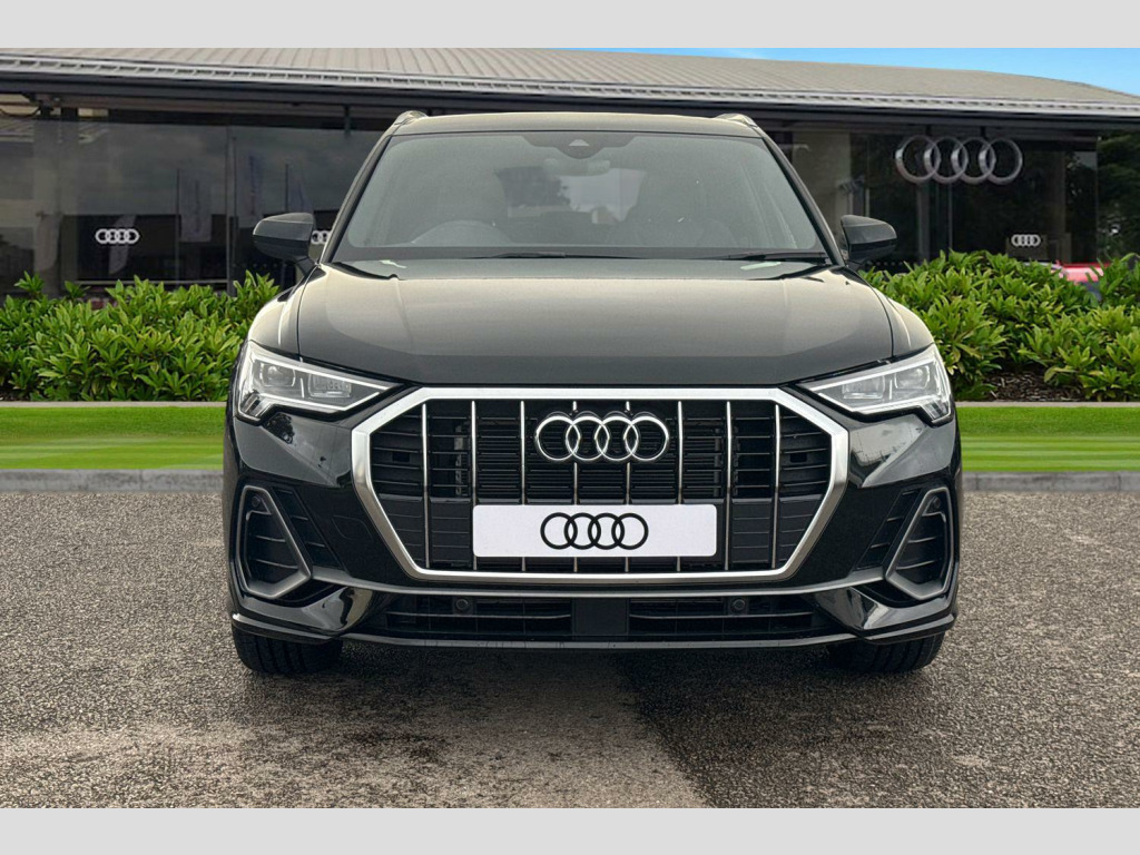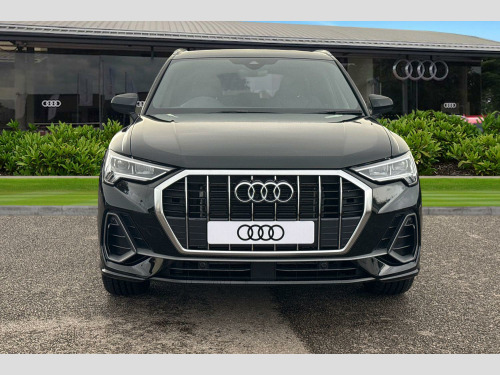 Introducing the Brand-new Audi Q3 S Line TFSI in Mythos black with its 19" 5-twin-spoke dynamic design alloy wheels which look superb out on the roads. The LED headlights with LED rear lights create that strong visibility in all weather conditions.