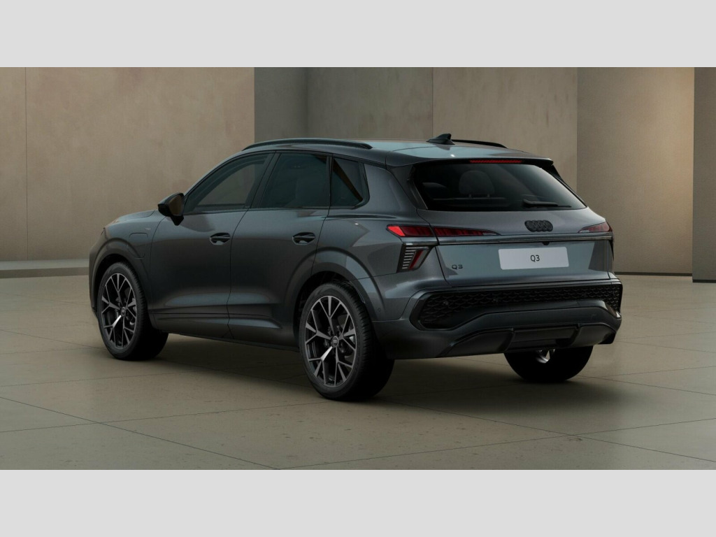 Sound and Vision Pack, 20in Alloy Wheels - 8.5J 5-Spoke Tripod Design - Gloss Turned Finish in Darkened Metallic Black, 3 Pin 10amp Domestic Charging Cable - Length 1.6 Meters, 3-Point Seat Belts in Front with Pretensioner and Electric Height Adjustment, 3-Zone Deluxe Automatic Air Conditioning, 4-Way Lumbar Support for Front Seats, Acoustic Glass for Front Door Windows, Acoustic Vehicle Alerting System - AVAS, Adaptive Cruise Control, Airbags - Driver and Front Passenger with Passenger Airbag Deactivation, Ambient Lighting Package Pro, Anti Theft Wheel Bolts, Anti-Theft Alarm, Audi Application Store and Smartphone Interface, Audi Connect Emergency Call and Service with Audi Connect Remote and Control, Audi Connect Navigation and Infotainment (3 Year Subscription From New), Audi Drive Select, Audi Phone Box Light with Wireless Charging, Audi Q3 Lettering on the B-pillars, Audi Sound System, Audi Virtual Cockpit Plus, Auto-Dimming Rear-View Mirror, Black Styling Package, Camera-Based Traffic Sign Recognition, Charging Socket CCS - Type 2, Cloth Headlining in Black, Comfort Suspension, Compact Charging System, Convenience Auxiliary - Air Conditioning, Convenience Key with Safelock, DAB Digital Radio, Digital Matrix LED Headlights with LED Rear Lights Pro, Driver Assist Pack, Driver Attention and Fatigue Monitor with Driver Monitoring, ESC - Electronic Stabilisation Control, Electronically Operated Child Locks, Exterior Mirrors - Electrically Adjustable - Heated - Folding and Automatically Dimming, First Aid Kit with Warning Triangle and High Visibility Vest, Front Cross-Traffic Assist, Front Door Sill with Aluminium Inserts - Illuminated with S Logo, Front Emergency Brake Assist, Front Head Restraints, Front Side Airbags with Head Airbags and Front Interaction Airbag, Front and Rear Floor Mats, Full Paint Finish, Heated Front Seats, Hill Hold Assist, Hold Assist, I-Size Compliant Child Seat Mounting on Front Passenger Side and Outer Rear Seats - Top Tether for Outer Rear Seats, Industrial Connector CEE 32 A - 230 V - Length 1.6 Meters, Inlay - American Whitewood Natural - Anthracite, Interior Elements in Dinamica Microfibre, Interior Trim in Aluminium Look, Lane Departure Warning with Emergency Assist, Loading Sill Protection in Stainless Steel, Luggage Compartment Lid - Electrically Opening and Closing, Main Beam Assist, Manually Adjustable Front Seats, Mode 3 Charging Cable for Public Charging - AC, Panoramic Curved Display with 12.8in MMI Navigation Plus and MMI Touch, Park Assist Plus with Parking System and 360 Display, Pedals in Stainless Steel, Privacy Glass - Dark-Tinted Rear Window - Rear Door and Side Window., Proactive Occupant Protection - Front - Sides and Rear, Progressive Steering, Projection Light in the Exterior Mirrors, Q3 Badging on the Rear, Rear Bench Seat Plus, Reversing Camera, S Line Exterior Styling, Seat Belt Monitoring, Side Assist with Exit Warning and Rear Cross-Traffic Assist, Sport Steering Wheel - Heated Flat Top and Bottomed 3-Spoke Leather- Multi-function with Gear Shift Paddles and S Badging, Start-Stop System, Steering Wheel Operating Unit - Glossy Black, Storage Compartment in Front Centre Console, Storage Compartments, Swerve Assist and Turn Assist, Traffic-Sign-Based Speed Limiter, Tyre Pressure Loss Indicator, Tyre Repair Kit - Tool Kit and Jack, USB Ports with Charging Function, Windscreen with Acoustic Glass