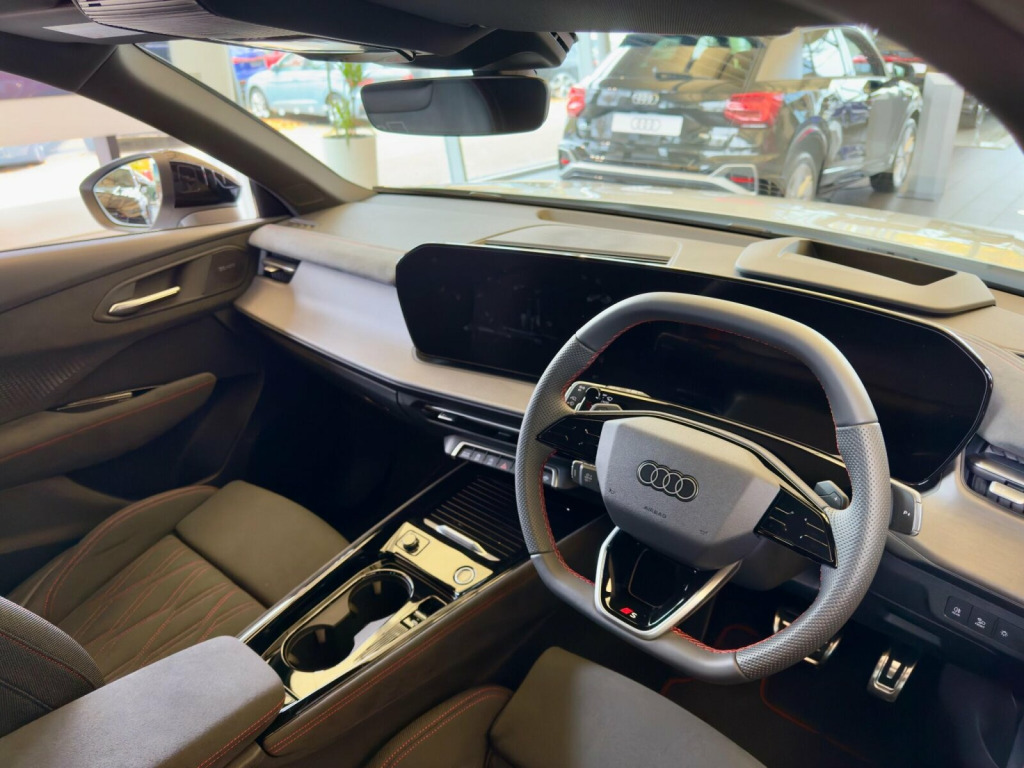 Finished in stunning Glacier White, this model embodies Audi’s latest design language — sharp, confident and unmistakably premium. The Launch Edition specification adds a wealth of features that elevate every journey, while the red contrast stitching throughout the interior adds a touch of sporting flair.