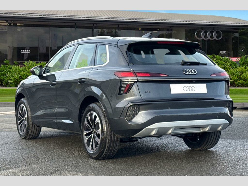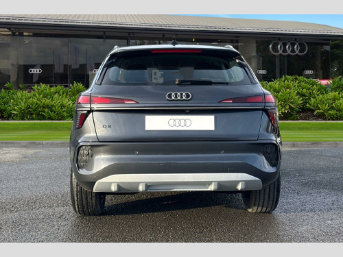 In Stock Now 18in Alloy Wheels - 8.0J 5-Arm Aero Design - Gloss Turned Finish in Black, 18in Alloy Wheels - 8.0J Multi-Spoke Design, 3-Zone Deluxe Automatic Air Conditioning, 4-Way Lumbar Support for Front Seats, Acoustic Glass for Front Door Windows, Adaptive Cruise Control, Airbags - Driver and Front Passenger with Passenger Airbag Deactivation, Aluminium Roof Rails, Aluminium Window Trims, Ambient Lighting Package Plus, Anti Theft Wheel Bolts, Anti-Theft Alarm, Audi Application Store and Smartphone Interface, Audi Connect Emergency Call and Service with Audi Connect Remote and Control, Audi Connect Navigation and Infotainment (3 Year Subscription From New), Audi Drive Select, Audi Phone Box Light with Wireless Charging, Audi Q3 Lettering on the B-pillars, Audi Sound System, Audi Virtual Cockpit Plus, Auto-Dimming Rear-View Mirror, Body Coloured Door Mirrors, Camera-Based Traffic Sign Recognition, Clear Glass for Rear Door - Side Windows and Rear Window, Cloth Headlining in Lunar Silver, Comfort Suspension, Convenience Key with Safelock, DAB Digital Radio, Driver Attention and Fatigue Monitor with Driver Monitoring, ESC - Electronic Stabilisation Control, Electromechanical Power Steering, Electronically Operated Child Locks, Exterior Mirrors - Electrically Adjustable - Heated - Folding and Automatically Dimming, First Aid Kit with Warning Triangle and High Visibility Vest, Front Cross-Traffic Assist, Front Door Sill Trims with Aluminium Inlay, Front Emergency Brake Assist, Front Head Restraints, Front Side Airbags with Head Airbags and Front Interaction Airbag, Front and Rear Floor Mats, Heated Front Seats, Hill Hold Assist, Hold Assist, I-Size Compliant Child Seat Mounting on Front Passenger Side and Outer Rear Seats - Top Tether for Outer Rear Seats, Inlay - Matt Cross-Brushed Aluminium, Interior Elements in Cloth, Interior Trim in Aluminium Look, LED Daytime Running Lights, LED Headlights with LED Rear Lights, Lane Departure Warning with Emergency Assist, Loading Sill Protection in Stainless Steel, Luggage Compartment Lid - Electrically Opening and Closing, Main Beam Assist, Manually Adjustable Front Seats, Panoramic Curved Display with 12.8in MMI Navigation Plus and MMI Touch, Park Assist Plus with Parking System and 360 Display, Projection Light in the Exterior Mirrors, Q3 Badging on the Rear, Rear Bench Seat Plus, Reversing Camera, Seat Belt Monitoring, Sport Bumpers, Start-Stop System, Steering Wheel - Multifunction Twin-Spoke Leather and Shift Paddles, Steering Wheel Operating Unit - Matt Black, Storage Compartment in Front Centre Console, Storage Compartments, Swerve Assist and Turn Assist, Three-Point Automatic Belts with Belt Tensioner and Height Adjustment, Traffic-Sign-Based Speed Limiter, Tyre Pressure Loss Indicator, Tyre Repair Kit - Tool Kit and Jack, USB Ports with Charging Function, Windscreen with Acoustic Glass
