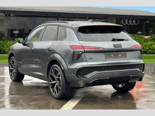 Sound and Vision Pack, 20in Alloy Wheels - 8.5J 5-Spoke Tripod Design - Gloss Turned Finish in Darkened Metallic Black, 3-Point Seat Belts in Front with Pretensioner and Electric Height Adjustment, 3-Zone Deluxe Automatic Air Conditioning, 4-Way Lumbar Support for Front Seats, Acoustic Glass for Front Door Windows, Adaptive Cruise Control, Airbags - Driver and Front Passenger with Passenger Airbag Deactivation, Ambient Lighting Package Pro, Anti Theft Wheel Bolts, Anti-Theft Alarm, Audi Application Store and Smartphone Interface, Audi Connect Emergency Call and Service with Audi Connect Remote and Control, Audi Connect Navigation and Infotainment (3 Year Subscription From New), Audi Drive Select, Audi Phone Box Light with Wireless Charging, Audi Q3 Lettering on the B-pillars, Audi Sound System, Audi Virtual Cockpit Plus, Auto-Dimming Rear-View Mirror, Black Styling Package, Camera-Based Traffic Sign Recognition, Cloth Headlining in Black, Convenience Key with Safelock, DAB Digital Radio, Digital Matrix LED Headlights with LED Rear Lights Pro, Driver Assist Pack, Driver Attention and Fatigue Monitor with Driver Monitoring, Dynamic Package, ESC - Electronic Stabilisation Control, Electronically Operated Child Locks, Exterior Mirrors - Electrically Adjustable - Heated - Folding and Automatically Dimming, First Aid Kit with Warning Triangle and High Visibility Vest, Front Cross-Traffic Assist, Front Door Sill with Aluminium Inserts - Illuminated with S Logo, Front Emergency Brake Assist, Front Head Restraints, Front Side Airbags with Head Airbags and Front Interaction Airbag, Front and Rear Floor Mats, Full Paint Finish, Heated Front Seats, Hill Hold Assist, Hold Assist, I-Size Compliant Child Seat Mounting on Front Passenger Side and Outer Rear Seats - Top Tether for Outer Rear Seats, Inlay - American Whitewood Natural - Anthracite, Interior Elements in Dinamica Microfibre, Interior Trim in Aluminium Look, Lane Departure Warning with Emergency Assist, Loading Sill Protection in Stainless Steel, Luggage Compartment Lid - Electrically Opening and Closing, Main Beam Assist, Manually Adjustable Front Seats, Panoramic Curved Display with 12.8in MMI Navigation Plus and MMI Touch, Park Assist Plus with Parking System and 360 Display, Pedals in Stainless Steel, Privacy Glass - Dark-Tinted Rear Window - Rear Door and Side Window., Proactive Occupant Protection - Front - Sides and Rear, Progressive Steering, Projection Light in the Exterior Mirrors, Q3 Badging on the Rear, Rear Bench Seat Plus, Reversing Camera, S Line Exterior Styling, Seat Belt Monitoring, Side Assist with Exit Warning and Rear Cross-Traffic Assist, Sport Steering Wheel - Heated Flat Top and Bottomed 3-Spoke Leather- Multi-function with Gear Shift Paddles and S Badging, Start-Stop System, Steering Wheel Operating Unit - Glossy Black, Storage Compartment in Front Centre Console, Storage Compartments, Swerve Assist and Turn Assist, Traffic-Sign-Based Speed Limiter, Tyre Pressure Loss Indicator, Tyre Repair Kit - Tool Kit and Jack, USB Ports with Charging Function, Windscreen with Acoustic Glass