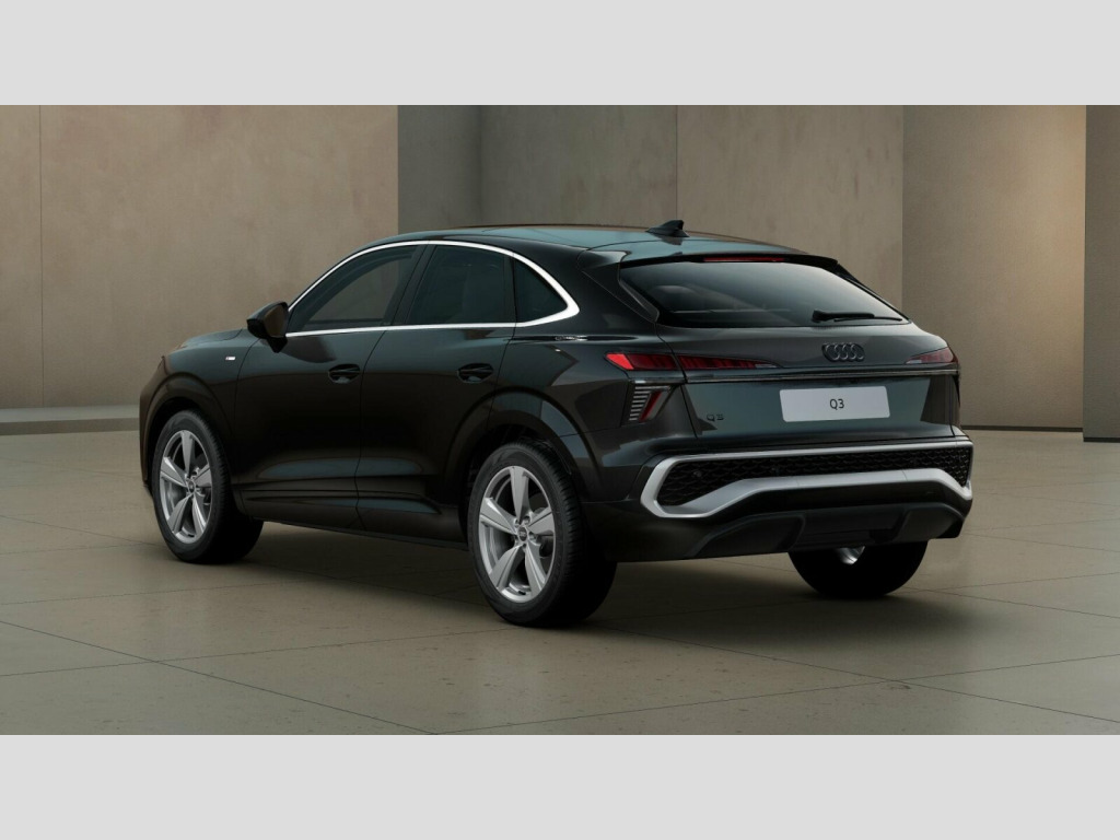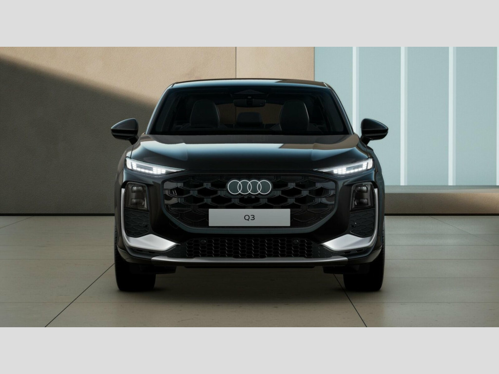 This brand new Audi Q3 Sportback S line combines a sleek, coupe-like design with the practical benefits of a family SUV. Dressed in the sophisticated Mythos Black metallic paint, this model looks sharp and premium from every angle.