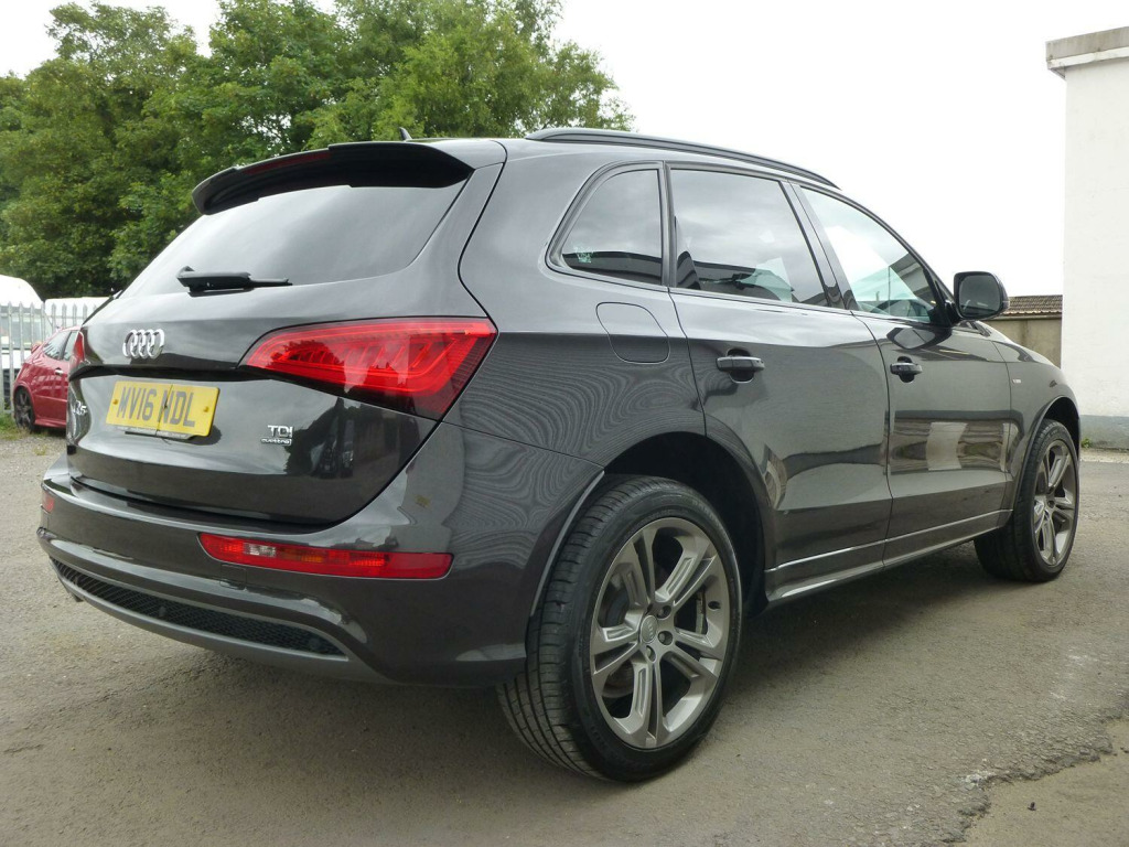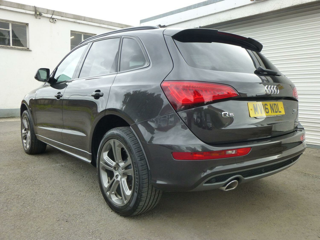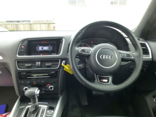 audi q5 2.0 tdi 190 bhp s-line plus edition 7 spd s-tronic automatic transmission euro6 ulez compliant suv,nice car,nice colour,very high spec comes with the following,Hard Drive 40GB,MMI Navigation Plus Mobile Telephone Preparation Bluetooth Interface,SD Card Reader x2,SDHC Card Reader,Single CD-DVD Player,Technology Package,12V Power Socket,20GB Jukebox for Storing and Managing Music Files WMA and MP3 Format,[AMI] Audi Music Interface,AUX-IN Socket,6 channel Amplifier,Audi Sound System,DAB Digital Radio,Display Screen Colour 7 inch TFT High Resolution and Split Screen Mode for Route Information,Dynamic Route Guidance [TMC],European Navigation Data,Rear Parking Sensors,Rest Recommendation System,Tyre Pressure Monitoring System,Audi Parking System Plus,[dis] Colour Drivers Information system, Cruise Control,Privacy Glass,Radiator Grille S Line with gloss black surround and Vertical Bars,gloss black belt line trims,Roof Bars and Storage Bag,S Line Side skirts, ,Spoiler,Styling Package S line Exterior,20 inch Alloy Wheels 5-Segment-Spoke Design in sparkle silver,Acoustic Windscreen,Aluminium Roof Rails,Bumpers S line Front,Platinum Grey rear diffuser,Door Mirrors Electrically Adjustable and Heated,Electric Windows x4,Headlight Washers,Bi-Xenon Plus headlights,Headlights with Coming-Leaving Home Function,Headlights with Light Sensor,LED Daytime Running Lights,LED Rear Lights,Automatic Headlight Range Adjustment,Front Fog Lights,Matt Brushed Aluminium inlays,Leather Package,MMI Display Frame in satin aluminium,Manual Height Adjustment for Front Seats,Power Operated Tailgate,Remote Boot Release,S line Sill Plates and Aluminium Loading Strip for the Boot,Seats with Front Height Adjustment,S Line Embossed,Front Sports seats,Split Folding 60-40 Rear seats,Steering Column with Rake and Reach Adjustment,3-Spoke Leather s-line Multi-function Sports steering with gear Shift Paddles,TP Memo Automatically Saves Traffic News,Tailgate with Lid Closing Assistance Unit,Air Conditioning plus Deluxe Automatic at the a/c to the Rear,Auto-Dimming Rear-View Mirror,Automatic Wipers with Rain Sensor,Headlining in Black cloth,Deluxe 3-Zone Climate control,Electrically Adjustable 4-Way Lumbar Support,Front Centre Armrest,Electromechanical Power Steering,Hill Descent Control,ISOFIX Child Seat Mounting for Front Passenger,ISOFIX Child Seat Preparation for Rear Seats with Top Tether,Misfuelling Inhibition,Remote Central Locking x 2 keys,Traction Control,Warning Triangle[ABS] Anti-Lock Braking System,multiple air bags,[EBD] Electronic Brakeforce Distribution,[ESP] Electronic Stability Programme,[epb] Electromechanical Parking Brake,Front Passenger Airbag Deactivation Switch,looks and drives superb,7 spd s-tronic automatic transmission,heated front seats,87,000 with digi history,possibly 1 of audis best colours [LZ7L] lava grey pearl effect metallic, , , , , , , , , , , , hpi report available on all vehicles