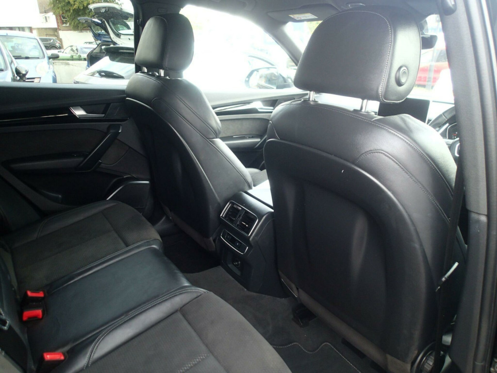 This 2019 Audi Q5 TDI Black Edition offers a superb blend of style and practicality, boasting a powerful 2.0 litre diesel engine and Audi's renowned four wheel drive system for confident handling in all conditions. As a Euro 6 compliant vehicle, it meets stringent emission standards. This Black Edition model comes equipped with a host of desirable features, including automatic LED headlights with dynamic rear indicators, a light and rain sensor for enhanced visibility, and heated front seats for added comfort. Parking is made effortless with the Audi Parking System Plus, featuring front and rear sensors, while the deluxe 3 zone climate control ensures a pleasant cabin temperature for all occupants.The Q5 TDI Black Edition also impresses with its generous boot space, providing ample room for luggage or shopping. Its acceleration is notably brisk, achieving 0 to 62 miles per hour in just 8.1 seconds, demonstrating its responsive performance. These highlights, such as the advanced lighting system, all weather capability, and swift acceleration, position this Audi Q5 as a superior choice compared to other vehicles in its class.,  x sdxc card readers, 2 x usb charging ports and 1 x aux-in, 20in alloy wheels - 5-arm rotor design gloss anthracite black- diamond cut finish audi sport, 4-way electric lumbar support, 6-airbag system, anti theft locking wheel bolts, anti-theft alarm, audi connect infotainment services - 3 month trial, audi connect safety and service - e-call, audi drive select, audi parking system plus, audi pre-sense city, audi smartphone interface, audi sound system, auto-dimming rear-view mirror, automatic headlight adjustment, bluetooth interface, cd drive, cloth headlining in black, colour drivers information system with 7in display, contrast stitching on seats - steering wheel and gear lever gaiter, cruise control with speed limiter, dab digital radio, deluxe 3-zone climate control, door mirrors - electrically folding and heated, dynamic suspension, esc - electronic stabilisation control inc abs - asr and edl, electric windows - front and rear, electromechanical parking brake, electromechanical power steering, email - calendar and text messages can be displayed on your vehicles mmi, first aid kit and warning triangle, flat-bottomed 3-spoke leather high multi-function steering wheel, front centre armrest, front sports seats with s embossed logo, front and rear floor mats, gear lever knob in black perforated leather, headlights - high-beam assist, heated front seats, high-gloss package, hill descent control, hill hold assist, isofix child seat mounting and top tether, inlays - piano finish - black, keyless go, led headlights with led rear lights and dynamic rear indicators, led interior lighting pack, light and rain sensor, mmi navigation - sd card based, mmi radio plus with 7in colour mmi screen and mmi controller, manual seat adjustment, multi collision brake assist, pedals in stainless steel, pop-up bonnet for pedestrian protection, power operated tailgate, privacy glass with acoustic glazing for front windows, radiator grille in twilight grey with horizontal matt aluminium struts, rear diffuser in body colour with matt aluminium silver surrounds, remote central locking, removable luggage compartment floor, removable net partition, s line badges on the front wing panels, s line front and rear bumpers, s line roof spoiler, s line side skirts, seat belt monitoring, side and rear windows in heat-insulating glass, split folding rear seat bench - 40-20-40 with rear seat armrest, stainless steel loading sill protector, sun visors - with vanity mirror, titanium black door mirrors, titanium black styling pack with black roof rails, tool kit, tow bar preparation, tyre pressure warning light, tyre repair kit, underbody protection in body colour, voice control system, windscreen with acoustic glass, quattro on demand