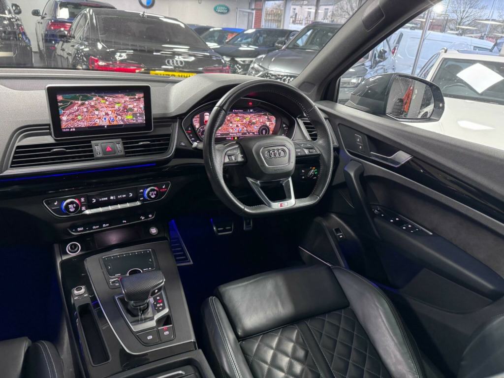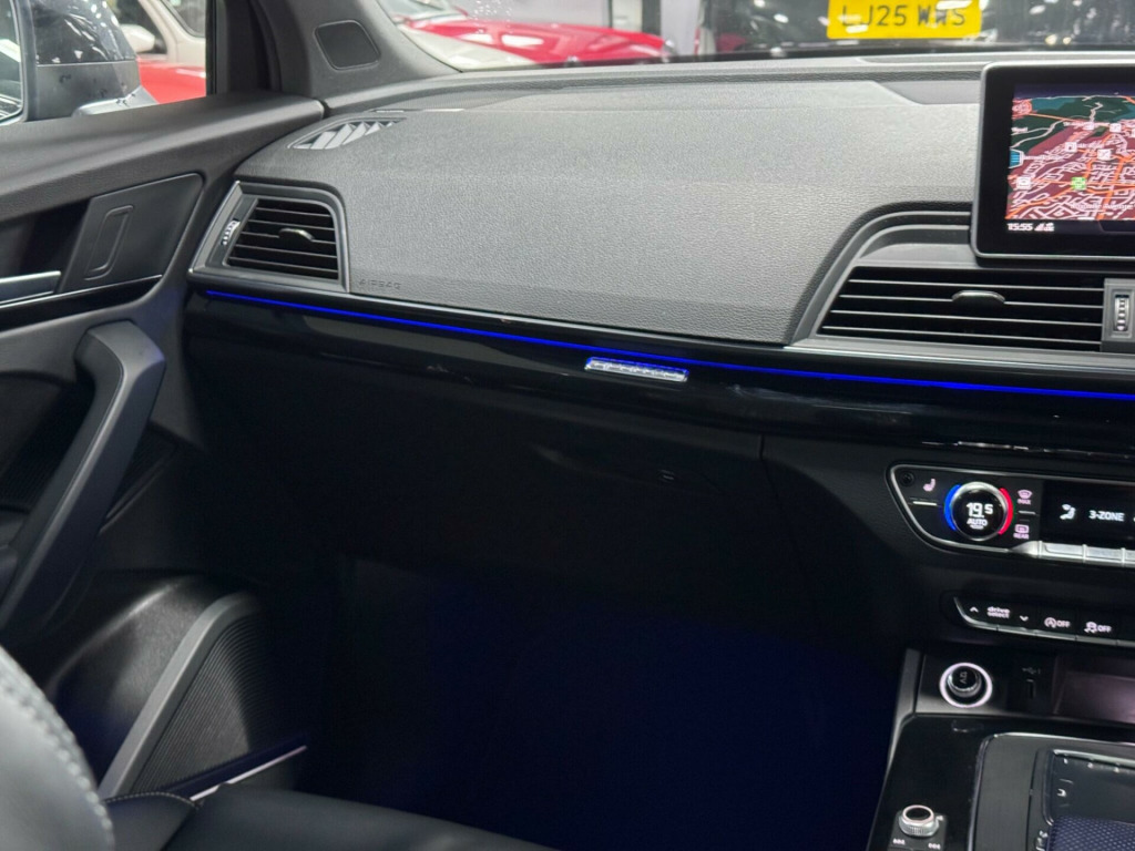 (70 REGISTRATION) AUDI Q5 2.0 TDI 40 BLACK EDITION S TRONIC QUATTRO EURO 6 | PANORAMIC ROOF| SUPER SPORTS SEATS| COMFORT AND SOUND PACKAGE| PANORAMIC ROOF| VIRTUAL DASH| FLAT BOTTOM STEERING WHEEL| REVERSE CAMERA| AMBIENT LIGHTING PACKAGE | 1 FORMER KEEPER| AUDI SERVICE HISTORY | 20” ALLOYS| BANG & OLUSFEN SOUND SYSTEM| TECHNOLOGY PACKAGE| PRIVACY GLASS| HEATED SEATS| FINANCE ARRANGED £0 DEPOSIT NEEDED | PART EXCHANGE WELCOME| PCP AND HP FINANCE DEALS AVAILABLE | LOW MONTHLY PAYMENTS |PCP AND HP FINANCE DEALS AVAILABLE | RAC APPROVED DEALERSHIP| HIGHLY RATED FOR OUR CUSTOMER SERVICE OVER 300 5 STAR REVIEWS ON AUTOTRADER |. 2 x SDXC Card Readers, 2 x USB Charging Ports and 1 x AUX-IN, 20in Alloy Wheels - 5-Arm Rotor Design Gloss Anthracite Black- Diamond Cut Finish Audi Sport, 4-Way Electric Lumbar Support, 6-Airbag System, Air Inlets in Matt Titanium Black with Blades in Matt Aluminium Silver, Anti Theft Locking Wheel Bolts, Anti-Theft Alarm, Audi Connect Infotainment Services - 3 Month Trial, Audi Connect Safety and Service - e-call, Audi Drive Select, Audi Parking System Plus, Audi Pre-Sense City, Audi Smartphone Interface, Auto-Dimming Rear-View Mirror, Automatic Headlight Adjustment, Bluetooth Interface, CD Drive, Chrome-Plated Exhaust Trim, Cloth Headlining in Black, Colour Drivers Information System with 7in Display, Contrast Stitching on Seats - Steering Wheel and Gear Lever Gaiter, Cruise Control with Speed Limiter, DAB Digital Radio, Deluxe 3-Zone Climate Control, Door Mirrors - Electrically Folding and Heated, Door Sill Trims with Aluminium Inlays, Dynamic Suspension, ESC - Electronic Stabilisation Control inc ABS - ASR and EDL, Electric Windows - Front, Electromechanical Parking Brake, Electromechanical Power Steering, First Aid Kit and Warning Triangle, Flat-Bottomed 3-Spoke Leather High Multi-Function Steering Wheel, Front Centre Armrest, Front Sports Seats with S Embossed Logo, Front and Rear Floor Mats, Gear Lever Knob in Black Perforated Leather, Headlights - High-Beam Assist, Heated Front Seats, High-Gloss Package, Hill Descent Control, Hill Hold Assist, ISOFIX Child Seat Mounting and Top Tether, Illuminated Door Sill Trims with S Logo, Inlays - Piano Finish - Black, Keyless Go, LED Headlights with LED Rear Lights and Dynamic Rear Indicators, LED Interior Lighting Pack, Light and Rain Sensor, MMI Navigation, MMI Radio Plus with 7in Colour MMI Screen, Manual Seat Adjustment, Multi Collision Brake Assist, Pedals in Stainless Steel, Pop-Up Bonnet for Pedestrian Protection, Power Operated Tailgate, Privacy Glass - Rear and Rear-Side Windows, Radiator Grille in Matt Twilight Grey with Horizontal Matt Aluminium Struts, Removable Luggage Compartment Floor, S Line Badges on the Front Wing Panels, S Line Front and Rear Bumpers, S Line Roof Spoiler, S Line Side Skirts, Seat Belt Monitoring, Split Folding Rear Seat Bench - 40-20-40 with Rear Seat Armrest, Stainless Steel Loading Sill Protector, Sun Visors - with Vanity Mirror, Titanium Black Door Mirrors, Titanium Black Styling Pack with Black Roof Rails, Tool Kit, Tow Bar Preparation, Trunk Roller Cover, Tyre Pressure Warning Light, Tyre Repair Kit, Underbody Protection in Body Colour, Voice Control System, Windscreen with Acoustic Glass, quattro On Demand, Technology Package, Panoramic Glass Sunroof, Comfort and Sound Package, Fine Nappa Leather - Black with Rock Grey Stitching, Fine Nappa Leather - Rotor Grey with Anthracite Stitching, Parking Assistance Pack.