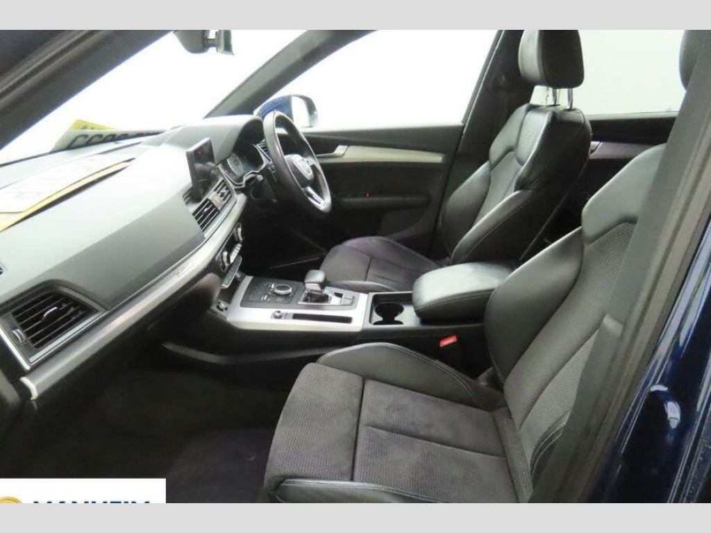 2 FORMER KEEPERSPART SERVICE HISTORYEURO 6ULEZ COMPLIANTDoor Mirrors - Folding with Auto-Dimming and Memory FunctionVery rareExtended LED Interior Lighting Package - Multi-ColouredVery rareLeather-Alcantara - Black with Rock Grey StitchingEquipment:Air ConditioningAuto Climate ControlAutomatic LightsAutomatic WipersBluetoothCruise ControlDABDual Zone ClimateFront Parking SThis 2019 Audi Q5 TDI Black Edition offers a superb blend of style and performance, boasting a powerful 2.0 litre diesel engine and four wheel drive for confident handling in all conditions. As a Euro 6 compliant vehicle, it meets stringent emission standards. The Black Edition trim enhances its striking appearance, while practical features such as a deluxe three zone climate control system and heated front seats ensure comfort for all occupants. Navigating is made easier with the integrated Bluetooth interface, and the light and rain sensor automatically adjusts headlights and wipers.Experience the dynamic acceleration of this Q5, reaching 0 to 62 miles per hour in just 8.1 seconds, demonstrating its responsive power. The advanced LED headlights with dynamic rear indicators provide excellent visibility and a modern aesthetic. Furthermore, the generous boot space offers ample room for luggage or shopping, making this Audi Q5 a versatile choice for families and individuals alike. These highlights collectively position this vehicle as a superior option within its class. or mirrors - folding with auto-dimming and memory function, extended led interior lighting package - multi-coloured, leather-alcantara - black with rock grey stitching, 2 x sdxc card readers, 2 x usb charging ports and 1 x aux-in, 20in alloy wheels - 5-arm rotor design gloss anthracite black- diamond cut finish audi sport, 4-way electric lumbar support, 6-airbag system, anti theft locking wheel bolts, anti-theft alarm, audi connect infotainment services - 3 month trial, audi connect safety and service - e-call, audi drive select, audi parking system plus, audi pre-sense city, audi smartphone interface, audi sound system, auto-dimming rear-view mirror, automatic headlight adjustment, bluetooth interface, cd drive, cloth headlining in black, colour drivers information system with 7in display, contrast stitching on seats - steering wheel and gear lever gaiter, cruise control with speed limiter, dab digital radio, deluxe 3-zone climate control, door mirrors - electrically folding and heated, dynamic suspension, esc - electronic stabilisation control inc abs - asr and edl, electric windows - front and rear, electromechanical parking brake, electromechanical power steering, email - calendar and text messages can be displayed on your vehicles mmi, first aid kit and warning triangle, flat-bottomed 3-spoke leather high multi-function steering wheel, front centre armrest, front sports seats with s embossed logo, front and rear floor mats, gear lever knob in black perforated leather, headlights - high-beam assist, heated front seats, high-gloss package, hill descent control, hill hold assist, isofix child seat mounting and top tether, inlays - piano finish - black, keyless go, led headlights with led rear lights and dynamic rear indicators, led interior lighting pack, light and rain sensor, mmi navigation - sd card based, mmi radio plus with 7in colour mmi screen and mmi controller, manual seat adjustment, multi collision brake assist, pedals in stainless steel, pop-up bonnet for pedestrian protection, power operated tailgate, privacy glass with acoustic glazing for front windows, radiator grille in twilight grey with horizontal matt aluminium struts, rear diffuser in body colour with matt aluminium silver surrounds, remote central locking, removable luggage compartment floor, removable net partition, s line badges on the front wing panels, s line front and rear bumpers, s line roof spoiler, s line side skirts, seat belt monitoring, side and rear windows in heat-insulating glass, split folding rear seat bench - 40-20-40 with rear seat armrest, stainless steel loading sill protector, sun visors - with vanity mirror, titanium black door mirrors, titanium black styling pack with black roof rails, tool kit, tow bar preparation, tyre pressure warning light, tyre repair kit, underbody protection in body colour, voice control system, windscreen with acoustic glass, quattro on demand