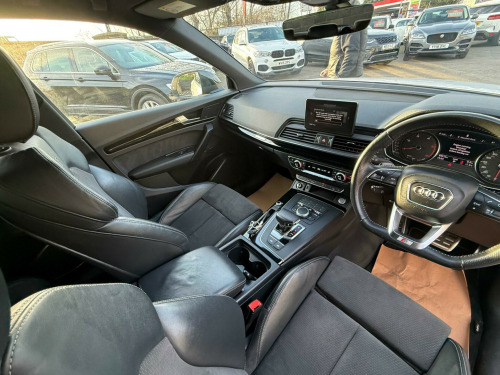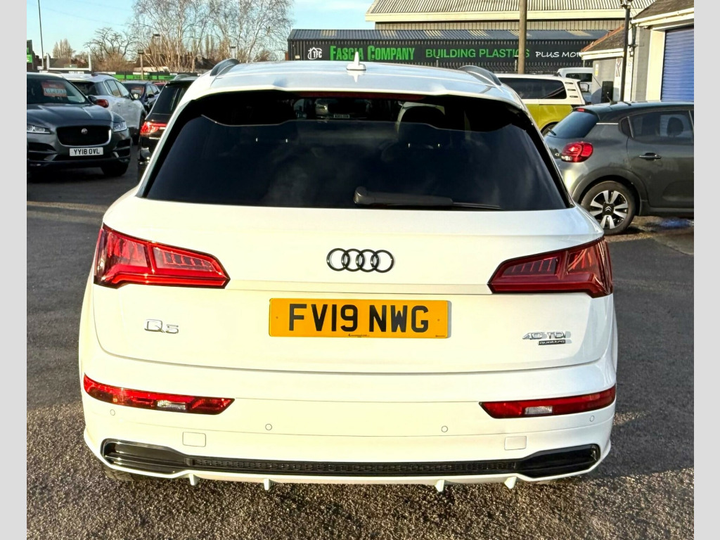 This 2019 Audi Q5 TDI Black Edition offers a superb blend of style and practicality, boasting a powerful 2.0 litre diesel engine and four wheel drive for confident handling. As a Euro 6 compliant vehicle, it meets modern emission standards. This Black Edition model comes equipped with a Bluetooth interface for seamless connectivity, and the Audi Parking System Plus, featuring front and rear sensors, makes manoeuvring effortless. Inside, you'll appreciate the Deluxe 3-Zone Climate Control and the comfort of heated front seats, while the Light and Rain Sensor automatically adjusts headlights and wipers, ensuring you're always prepared for changing conditions.The generous boot space provides ample room for all your luggage, making it ideal for family trips or everyday errands. Performance is also a strong point, with the Q5 accelerating from 0 to 62 miles per hour in a brisk 8.1 seconds. These features, combined with its sophisticated design and advanced technology, position this Audi Q5 as a superior choice for those seeking a premium and capable SUV. chnology package, 2 x sdxc card readers, 2 x usb charging ports and 1 x aux-in, 20in alloy wheels - 5-arm rotor design gloss anthracite black- diamond cut finish audi sport, 4-way electric lumbar support, 6-airbag system, anti theft locking wheel bolts, anti-theft alarm, audi connect infotainment services - 3 month trial, audi connect safety and service - e-call, audi drive select, audi parking system plus, audi pre-sense city, audi smartphone interface, audi sound system, auto-dimming rear-view mirror, automatic headlight adjustment, bluetooth interface, cd drive, cloth headlining in black, colour drivers information system with 7in display, contrast stitching on seats - steering wheel and gear lever gaiter, cruise control with speed limiter, dab digital radio, deluxe 3-zone climate control, door mirrors - electrically folding and heated, dynamic suspension, esc - electronic stabilisation control inc abs - asr and edl, electric windows - front and rear, electromechanical parking brake, electromechanical power steering, email - calendar and text messages can be displayed on your vehicles mmi, first aid kit and warning triangle, flat-bottomed 3-spoke leather high multi-function steering wheel, front centre armrest, front sports seats with s embossed logo, front and rear floor mats, gear lever knob in black perforated leather, headlights - high-beam assist, heated front seats, high-gloss package, hill descent control, hill hold assist, isofix child seat mounting and top tether, inlays - piano finish - black, keyless go, led headlights with led rear lights and dynamic rear indicators, led interior lighting pack, light and rain sensor, mmi navigation - sd card based, mmi radio plus with 7in colour mmi screen and mmi controller, manual seat adjustment, multi collision brake assist, pedals in stainless steel, pop-up bonnet for pedestrian protection, power operated tailgate, privacy glass with acoustic glazing for front windows, radiator grille in twilight grey with horizontal matt aluminium struts, rear diffuser in body colour with matt aluminium silver surrounds, remote central locking, removable luggage compartment floor, removable net partition, s line badges on the front wing panels, s line front and rear bumpers, s line roof spoiler, s line side skirts, seat belt monitoring, side and rear windows in heat-insulating glass, split folding rear seat bench - 40-20-40 with rear seat armrest, stainless steel loading sill protector, sun visors - with vanity mirror, titanium black door mirrors, titanium black styling pack with black roof rails, tool kit, tow bar preparation, tyre pressure warning light, tyre repair kit, underbody protection in body colour, voice control system, windscreen with acoustic glass, quattro on demand