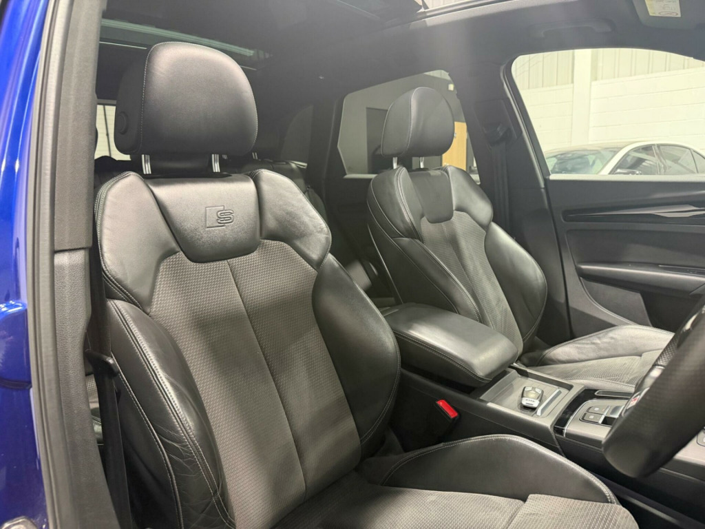 Here at BP Car Sales we have a stunning Audi Q5 2.0 TDI 40 Black Edition SUV 5dr Diesel S Tronic quattro Euro 6 in a stunning IMPERIAL BLUE (massive optional extra) comes with 2 KEYS , AIR CON , SATELITTE NAVIGATION , PANORAMIC SUNROOF , REVERSE CAMERA , HEATED SEATS , ALLOY WHEELS , DAB RADIO , CRUISE CONTROL , FLAT BOTTOM MULTI FUNCTION STEERING WHEEL , ALLOY WHEELS , AUTOMATIC TAILGATE , FOLDING MIRRORS , FULL AUDI SERVICE HISTORY , 6 MAIN DEALER STAMPS , 12 MONTHS MOT FROM PURCHASE DATE , FULLY VALETED , Zero Deposit Finance Available All Cars HPI Clear with Verified Mileage DELIVERY Service Available Back to base warranty, Reserve Any Car with a £100 Refundable Holding FEE Finance admin fee £300 , Free Complimentary Collection from Local Airport and Train Stations Available Card Payments Accepted Open 7 Days , LOCATED 1 MILE FROM THE M606 , APPOINTMENT BASED ONLY **PLEASE BOOK APPOINTMENT TO VIEW VEHICLE ** noramic glass sunroof, leather-alcantara - rotor grey with anthracite stitching, parking assistance pack, 2 x sdxc card readers, 2 x usb charging ports and 1 x aux-in, 20in alloy wheels - 5-arm rotor design gloss anthracite black- diamond cut finish audi sport, 4-way electric lumbar support, 6-airbag system, air inlets in matt titanium black with blades in matt aluminium silver, anti theft locking wheel bolts, anti-theft alarm, audi connect infotainment services - 3 month trial, audi connect safety and service - e-call, audi drive select, audi parking system plus, audi pre-sense city, audi smartphone interface, auto-dimming rear-view mirror, automatic headlight adjustment, bluetooth interface, cd drive, chrome-plated exhaust trim, cloth headlining in black, colour drivers information system with 7in display, contrast stitching on seats - steering wheel and gear lever gaiter, cruise control with speed limiter, dab digital radio, deluxe 3-zone climate control, door mirrors - electrically folding and heated, door sill trims with aluminium inlays, dynamic suspension, esc - electronic stabilisation control inc abs - asr and edl, electric windows - front, electromechanical parking brake, electromechanical power steering, first aid kit and warning triangle, flat-bottomed 3-spoke leather high multi-function steering wheel, front centre armrest, front sports seats with s embossed logo, front and rear floor mats, gear lever knob in black perforated leather, headlights - high-beam assist, heated front seats, high-gloss package, hill descent control, hill hold assist, isofix child seat mounting and top tether, illuminated door sill trims with s logo, inlays - piano finish - black, keyless go, led headlights with led rear lights and dynamic rear indicators, led interior lighting pack, light and rain sensor, mmi navigation, mmi radio plus with 7in colour mmi screen, manual seat adjustment, multi collision brake assist, pedals in stainless steel, pop-up bonnet for pedestrian protection, power operated tailgate, privacy glass - rear and rear-side windows, radiator grille in matt twilight grey with horizontal matt aluminium struts, removable luggage compartment floor, s line badges on the front wing panels, s line front and rear bumpers, s line roof spoiler, s line side skirts, seat belt monitoring, split folding rear seat bench - 40-20-40 with rear seat armrest, stainless steel loading sill protector, sun visors - with vanity mirror, titanium black door mirrors, titanium black styling pack with black roof rails, tool kit, tow bar preparation, trunk roller cover, tyre pressure warning light, tyre repair kit, underbody protection in body colour, voice control system, windscreen with acoustic glass, quattro on demand