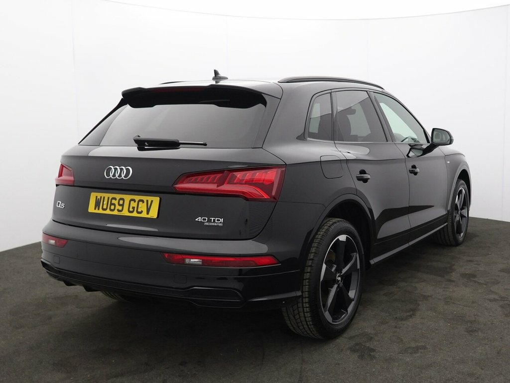 This 2019 Audi Q5 TDI Black Edition boasts a single owner and a clear vehicle history check, offering you peace of mind. As a Euro 6 compliant model, it features a capable 2.0 litre diesel engine paired with Audi's renowned four wheel drive system for confident handling in all conditions. The Black Edition trim enhances its sophisticated appearance, while the inclusion of the Technology Package, complete with wireless phone charging, ensures you stay connected. Enjoy the convenience of automatic headlights thanks to the light and rain sensor, and make parking effortless with the Audi Parking System Plus, which includes front and rear sensors. For added comfort on every journey, the front seats are heated, and the Bluetooth interface allows for seamless audio streaming and hands free calls. The Q5 TDI Black Edition offers a compelling blend of performance and practicality. Its acceleration from 0 to 60 miles per hour in just 8.1 seconds demonstrates its responsive power delivery. You'll also appreciate the generous boot space, making it ideal for everything from weekly shopping to weekend getaways. These features, combined with its service history, indicate a well maintained vehicle that stands out from others in its class, providing a refined and enjoyable driving experience. 2 x SDXC Card Readers, 2 x USB Charging Ports and 1 x AUX-IN, Audi Connect Infotainment Services - 3 M, Audi Connect Safety and Service - e-call, Audi Smartphone Interface, Bluetooth Interface, CD Drive, DAB Digital Radio, MMI Navigation, MMI Radio Plus with 7in Colour MMI Scree, Tow Bar Preparation, 20in Alloy Wheels - 5-Arm Rotor Design G, Air Inlets in Matt Titanium Black with B, Chrome-Plated Exhaust Trim, Door Mirrors - Electrically Folding and , Electric Windows - Front, High-Gloss Package, Privacy Glass - Rear and Rear-Side Windo, Radiator Grille in Matt Twilight Grey wi, S Line Badges on the Front Wing Panels, S Line Front and Rear Bumpers, S Line Roof Spoiler, S Line Side Skirts, Ti
