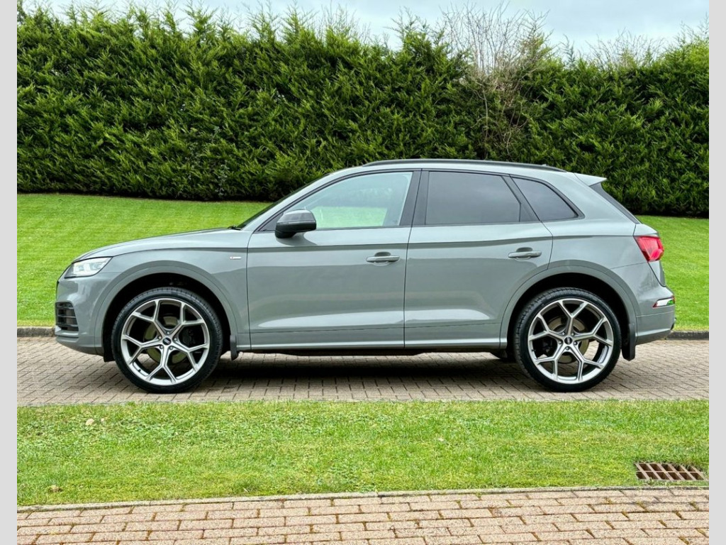 January 2020 Audi Q5 40TDI Quattro Black Edition S-Tronic in Quantum Grey. Full Service History. Mot'd to September 2026. Loaded with spec including Virtual Cockpit, Tech Pack, Half Leather / Alcantara Interior, Heated Seats, Navigation System, LED Headlights, Piano Black Dash Inlays, Flat Bottom Steering Wheel, Tech Pack, Privacy Glass, Audi Drive Select, DAB Radio, Bluetooth, Multi-Functional Steering Wheel etc. Fitted with Brand New 22" Alloys & Tyres (Optional Extra £1295) FINANCE AVAILABLE AT KEEN RATES!! Viewing by Appointment Only Please. 2 x SDXC Card Readers, 2 x USB Charging Ports and 1 x AUX-IN, 20in Alloy Wheels - 5-Arm Rotor Design G, 4-Way Electric Lumbar Support, 6-Airbag System, Air Inlets in Matt Titanium Black with B, Anti Theft Locking Wheel Bolts, Anti-Theft Alarm, Audi Connect Infotainment Services - 3 M, Audi Connect Safety and Service - e-call, Audi Drive Select, Audi Parking System Plus, Audi Pre-Sense City, Audi Smartphone Interface, Auto-Dimming Rear-View Mirror, Automatic Headlight Adjustment, Bluetooth Interface, CD Drive, Chrome-Plated Exhaust Trim, Cloth Headlining in Black, Colour Drivers Information System with 7, Contrast Stitching on Seats - Steering W, Cruise Control with Speed Limiter, DAB Digital