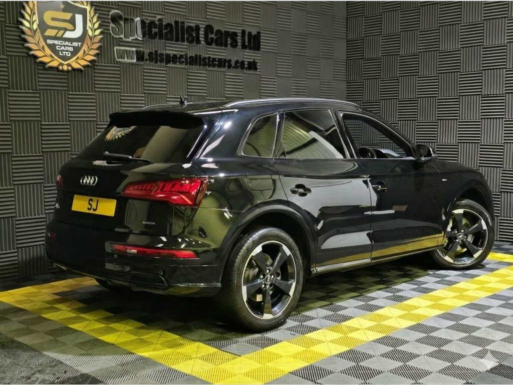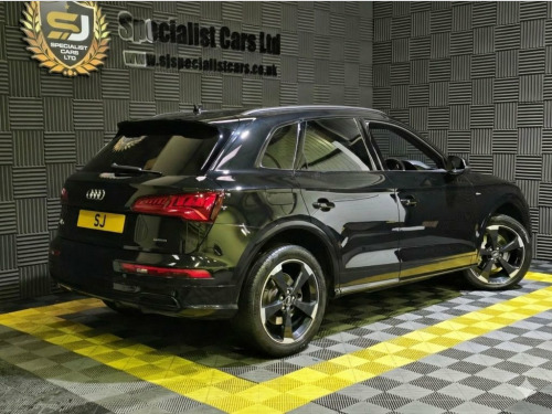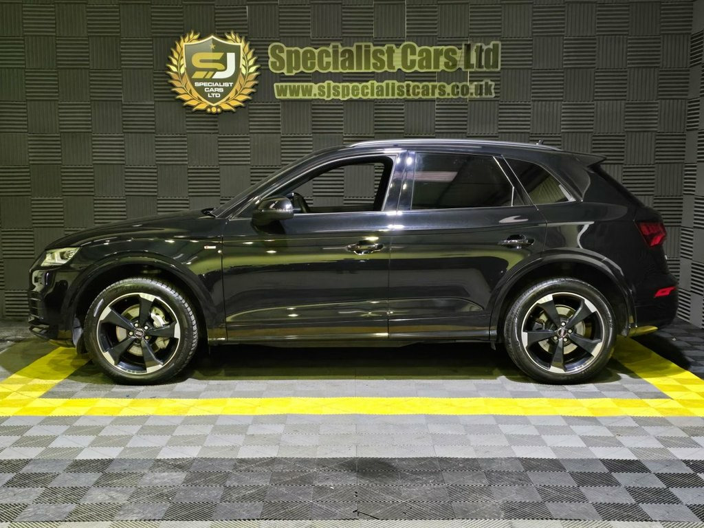 2019 / 19 Audi Q5 40 TDI Black Edition Quattro. Finished in Mythos Black, with Full Black Diamond Quilted Nappa Leather. 46000 Miles. Great Spec Inc : Very Rare Panoramic Sunroof, 20" Alloys, Technology Pack with Virtual Cockpit, Diamond Quilted Nappa Leather, Privacy Glass, Sat Nav, Black Roof Rails. Lovely Throughout. Warranties, Finance and Part Exchange Available. 24-litre AdBlue Tank and 70-litre Fuel T, Mythos Black, Technology Package, Rear Bench Seat Plus, Deletion of Engine Technology Designatio, Panoramic Glass Sunroof, 2 x SDXC Card Readers, 2 x USB Charging Ports and 1 x AUX-IN, 20in Alloy Wheels - 5-Arm Rotor Design G, 4-Way Electric Lumbar Support, 6-Airbag System, Anti Theft Locking Wheel Bolts, Anti-Theft Alarm, Audi Connect Infotainment Services - 3 M, Audi Connect Safety and Service - e-call, Audi Drive Select, Audi Parking System Plus, Audi Pre-Sense City, Audi Smartphone Interface, Audi Sound System, Auto-Dimming Rear-View Mirror, Automatic Headlight Adjustment, Bluetooth Interface, CD Drive, Cloth Headlining in Black, Colour Drivers I