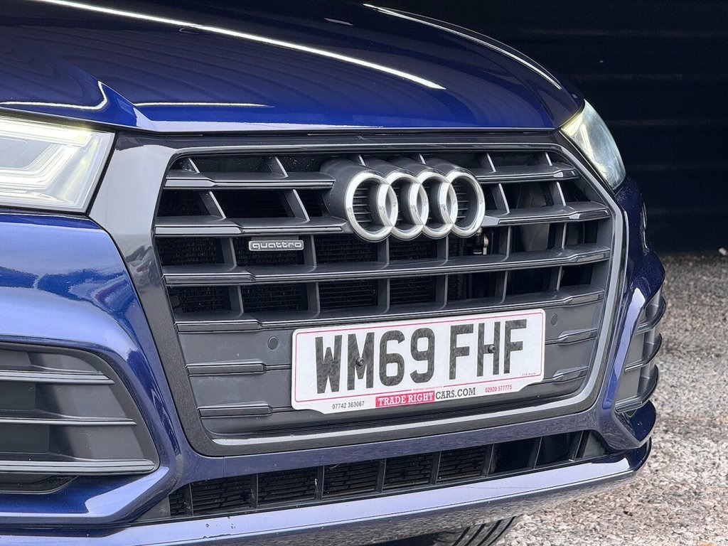JUST ARRIVED & READY TO DRIVE AWAY! 2020/69 Audi Q5 2.0 TDi 40 Black Edition [Tech Pack] Quattro S-Tronic finished in Navarra Blue. We are pleased to offer this lovely 5 door diesel SUV. This is the highly desirable 2.0 litre Quattro model with a 7 speed automatic [S-Tronic] transmission that offers 188 BHP. It has covered just 40,152 miles with full service history (3 services) and drives as you would expect. Just serviced upon arrival. The service intervals are 24 months/20,000 miles. MOT until 9th October 2026 with no advisories. The car is ready to drive away. We will also include a complimentary 12 month AA breakdown cover. Two owners from new, the last owner has had the car since 2020. Euro 6 status - ULEZ compliant. A superb low mileage example with the sought-after Q5 specification. Key features include; technology package, virtual cockpit, navigation with 7" HD display, 20" two-tone diamond cut 'Rotor Design' alloy wheels, keyless start, cruise control with speed limiter, deluxe 3 zone A/C climate control, DAB, bluetooth connectivity, heated seats, LED headlights & dynamic indicators, electric powered tailgate and privacy glass. Advertised below the AutoTrader RRP. Please let us know if you would like any further information or a video sent via WhatsApp. Please be aware many of our cars sell before the photos go live so please call or reserve to avoid any disappointment. Navarra Blue, 2 x SDXC Card Readers, 2 x USB Charging Ports and 1 x AUX-IN, 20in Alloy Wheels - 5-Arm Rotor Design G, 4-Way Electric Lumbar Support, 6-Airbag System, Air Inlets in Matt Titanium Black with B, Anti Theft Locking Wheel Bolts, Anti-Theft Alarm, Audi Connect Infotainment Services - 3 M, Audi Connect Safety and Service - e-call, Audi Drive Select, Audi Parking System Plus, Audi Pre-Sense City, Audi Smartphone Interface, Auto-Dimming Rear-View Mirror, Automatic Headlight Adjustment, Bluetooth Interface, CD Drive, Chrome-Plated Exhaust Trim, Cloth Headlining in Black, Colour Drivers Information System with 7, Contrast Stitching on Seats - Steering W, Cruise Control with Speed Limite