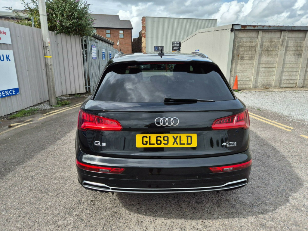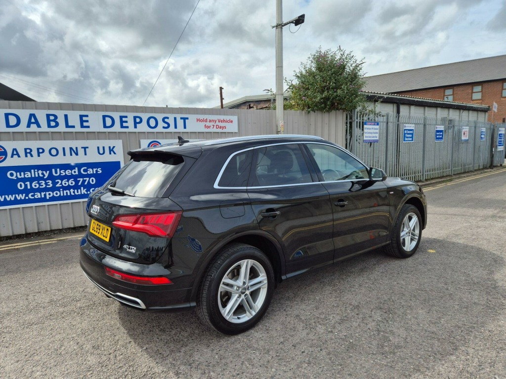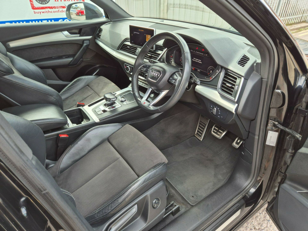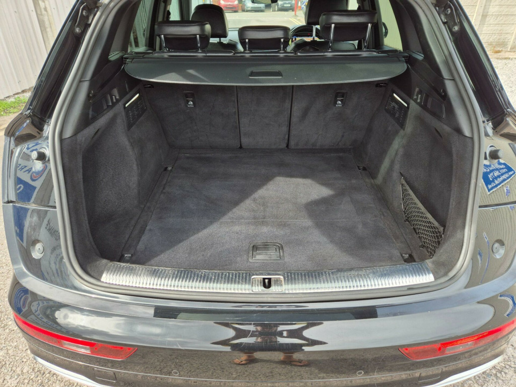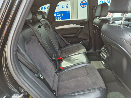 OUR DECEMBER EXTRAVAGANZA SALE IS NOW ON DECEMBER 1ST - DECEMBER 31STALL VEHICLE'S ARE IN THE SALE - WE HAVE DISCOUNTED PRICES BY UPTO £1000SOME OF THE BEST VALUE CARS IN THE UK £100 REFUNDABLE DEPOSIT HOLDS ANY VEHICLE FOR 7 DAYS DRIVE AWAY SAME DAY PART EXCHANGE ACCEPTED WE SETTLE EXISTING FINANCE 60 SECOND FINANCE DECISION FREE WARRANTY ON EVERY VEHICLEWith a full service history and MOT valid until September 2026, this 2019 Audi Q5 TDI S line offers excellent provenance. This four wheel drive model is powered by a 2.0 litre diesel engine and meets Euro 6 emissions standards. It has covered a low mileage of 51,517 miles, with its last service completed on 8th September 2025. Inside, you'll find a host of desirable features including a light and rain sensor for automatic headlight activation, deluxe three zone climate control, For added convenience, it boasts heated front seats and the Audi Parking System Plus, which includes front and rear parking sensors. The Q5 also offers generous boot space, making it practical for everyday use and longer journeys.The performance of this Audi Q5 is further enhanced by its impressive acceleration, reaching 0 to 62 miles per hour in just 8.1 seconds, demonstrating its capability compared to other vehicles in its class. The combination of its S line trim, advanced technology, and low mileage for its age makes this Q5 a compelling choice for those seeking a premium and well maintained SUV.. 19in Alloy Wheels - 5-Twin-Spoke Star Design - Diamond Cut Finish, 2 x SDXC Card Readers, 2 x USB Charging Ports and 1 x AUX-IN, 4-Way Electric Lumbar Support, 6-Airbag System, Aluminium Roof Rails, Anti Theft Locking Wheel Bolts, Anti-Theft Alarm, Audi Connect Infotainment Services - 3 Month Trial, Audi Connect Safety and Service - e-call, Audi Drive Select, Audi Parking System Plus, Audi Pre-Sense City, Audi Smartphone Interface, Audi Sound System, Auto-Dimming Rear-View Mirror, Automatic Headlight Adjustment, Body Coloured Door Mirrors, CD Drive, Cloth Headlining in Black, Colour Drivers Information System with 7in Display, Contrast Stitching on Seats - Steering Wheel and Gear Lever Gaiter, Cruise Control with Speed Limiter, DAB Digital Radio, Deluxe 3-Zone Climate Control, Door Mirrors - Electrically Folding and Heated, Dynamic Suspension, ESC - Electronic Stabilisation Control inc ABS - ASR and EDL, Electric Windows - Front and Rear, Electromechanical Parking Brake, Electromechanical Power Steering, Email - Calendar and Text Messages can be Displayed on your Vehicles MMI, First Aid Kit and Warning Triangle, Front Centre Armrest, Front Sports Seats with S Embossed Logo, Front and Rear Floor Mats, Gear Lever Knob in Black Perforated Leather, Headlights - High-Beam Assist, Heated Front Seats, High Multi-function 3-Spoke Leather Steering Wheel with Grips in Perforated Leather and S Badging with Gear-Shift Paddles, High-Gloss Package, Hill Descent Control, Hill Hold Assist, ISOFIX Child Seat Mounting and Top Tether, Illuminated Door Sill Trims with S Logo, Inlays - Matt Brushed Aluminium, Keyless Go, LED Headlights with LED Rear Lights and Dynamic Rear Indicators, LED Interior Lighting Pack, Light and Rain Sensor, MMI Navigation - SD Card Based, MMI Radio Plus with 7in Colour MMI Screen and MMI Controller, Manual Seat Adjustment, Multi Collision Brake Assist, Pedals in Stainless Steel, Pop-Up Bonnet for Pedestrian Protection, Power Operated Tailgate, Privacy Glass with Acoustic Glazing For Front Windows, Radiator Grille in Twilight Grey with Horizontal Matt Aluminium Struts, Rear Diffuser in Body Colour with Matt Aluminium Silver Surrounds, Remote Central Locking, Removable Luggage Compartment Floor, Removable Net Partition, S Line Badges on the Front Wing Panels, S Line Front and Rear Bumpers, S Line Roof Spoiler, S Line Side Skirts, Seat Belt Monitoring, Side and Rear Windows in Heat-Insulating Glass, Split Folding Rear Seat Bench - 40-20-40 with Rear Seat Armrest, Stainless Steel Loading Sill Protector, Sun Visors - with Vanity Mirror, Tool Kit, Tow Bar Preparation, Tyre Pressure Warning Light, Tyre Repair Kit, Underbody Protection in Body Colour, Voice Control System, Windscreen with Acoustic Glass, quattro On Demand. Full service history