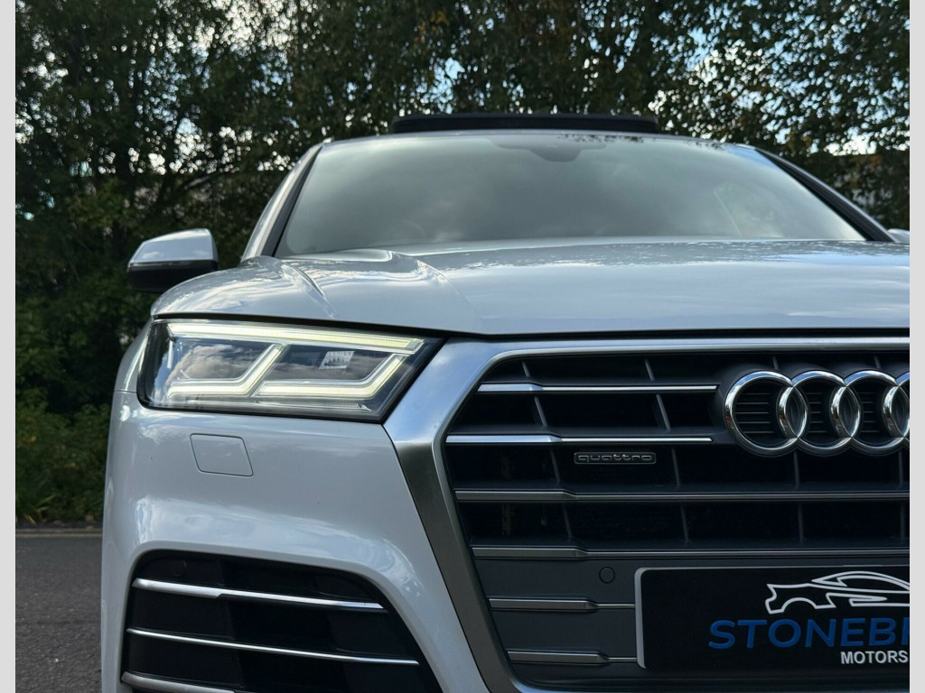 Audi Q5 2.0 TFSI Quattro S Line - 2018 (68)52,000 miles Diesel Automatic £21,989This stylish 2018 Audi Q5 S Line combines confident SUV presence with premium comfort and cutting-edge technology. Finished in sleek Glacier White with black leather and alcantara interior, it's a refined yet sporty family SUV that delivers both on-road comfort and dynamic performance. With a panoramic roof, Bang & Olufsen sound system, and Audi's acclaimed Virtual Cockpit, every journey feels special.Key Features:•S Line Styling Pack•Panoramic Glass Sunroof•Bang & Olufsen Surround Sound System•Audi Virtual Cockpit (Digital Dash) •Rear View Parking Camera•Hill Hold Assist•Wireless Charger•Storage Pack•Multi-Function Sports Steering Wheel•LED Headlights with LED Rear Lights•Cruise Control•Dual-Zone Climate Control•Heated Door Mirrors•Front & Rear Parking Sensors•Privacy GlassAdditional Details:•Full Service History•Long MOT Remaining•ULEZ Compliant•6 Months Warranty Included (Extendable up to 3 Years)•Competitive Finance Options Available•Part Exchange Welcome•Nationwide Delivery OfferedA perfect blend of SUV practicality, premium specification, and timeless Audi styling, this Q5 is a superb all-rounder with fantastic ownership history. ar-view camera, technology package, panoramic glass sunroof, comfort and sound package, deletion of engine technology designation at rear, storage package, leather-alcantara - black with rock grey stitching, audi matrix led headlights with led rear lights and dynamic front and rear indicators, pre-sense basic, 19in alloy wheels - 5-twin-spoke star design - diamond cut finish, 2 x sdxc card readers, 2 x usb charging ports and 1 x aux-in, 4-way electric lumbar support, 6-airbag system, aluminium roof rails, anti theft locking wheel bolts, anti-theft alarm, audi connect infotainment services - 3 month trial, audi connect safety and service - e-call, audi drive select, audi parking system plus, audi pre-sense city, audi smartphone interface, audi sound system, auto-dimming rear-view mirror, automatic headlight adjustment, bluetooth interface, body coloured door mirrors, cd drive, cloth headlining in black, colour drivers information system with 7in display, contrast stitching on seats - steering wheel and gear lever gaiter, cruise control with speed limiter, dab digital radio, deluxe 3-zone climate control, door mirrors - electrically folding and heated, dynamic suspension, esc - electronic stabilisation control inc abs - asr and edl, electric windows - front and rear, electromechanical parking brake, electromechanical power steering, email - calendar and text messages can be displayed on your vehicles mmi, first aid kit and warning triangle, front centre armrest, front sports seats with s embossed logo, front and rear floor mats, gear lever knob in black perforated leather, headlights - high-beam assist, heated front seats, high multi-function 3-spoke leather steering wheel with grips in perforated leather and s badging with gear-shift paddles, high-gloss package, hill descent control, hill hold assist, isofix child seat mounting and top tether, illuminated door sill trims with s logo, inlays - matt brushed aluminium, keyless go, led headlights with led rear lights and dynamic rear indicators, led interior lighting pack, light and rain sensor, mmi navigation - sd card based, mmi radio plus with 7in colour mmi screen and mmi controller, manual seat adjustment, multi collision brake assist, pedals in stainless steel, pop-up bonnet for pedestrian protection, power operated tailgate, privacy glass with acoustic glazing for front windows, radiator grille in twilight grey with horizontal matt aluminium struts, rear diffuser in body colour with matt aluminium silver surrounds, remote central locking, removable luggage compartment floor, removable net partition, s line badges on the front wing panels, s line front and rear bumpers, s line roof spoiler, s line side skirts, seat belt monitoring, side and rear windows in heat-insulating glass, split folding rear seat bench - 40-20-40 with rear seat armrest, stainless steel loading sill protector, sun visors - with vanity mirror, tool kit, tow bar preparation, tyre pressure warning light, tyre repair kit, underbody protection in body colour, voice control system, windscreen with acoustic glass, quattro on demand