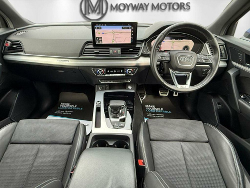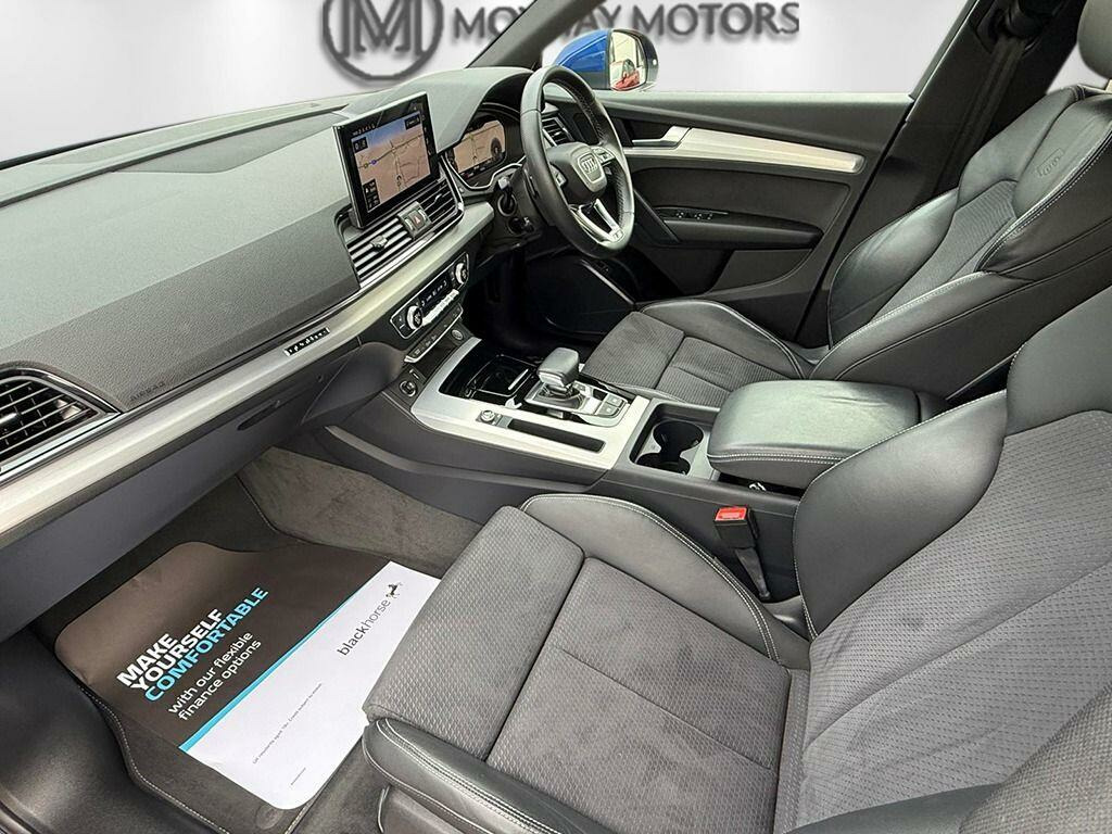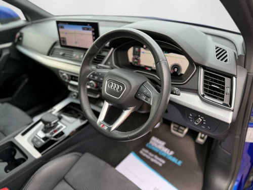 This 2023 Audi Q5 TDI S line boasts a clear vehicle history, offering you peace of mind. This four wheel drive model features a 2.0 litre diesel engine and meets Euro 6 emissions standards. It comes equipped with 19 inch alloy wheels in a rotor design, a Bluetooth interface, and deluxe three zone electronic climate control. For convenience, it includes a reversing camera and the Audi Wireless Smartphone Interface, compatible with both Android Auto and Apple CarPlay.Experience impressive performance with a 0 to 62mph acceleration time of just 7.6 seconds, demonstrating its capability compared to other vehicles in its class. The Q5 also offers a generous boot space, making it practical for all your needs. Furthermore, its low CO2 emissions highlight its efficiency. With a towing weight of 2400 kg, this Audi Q5 TDI S line is a versatile and capable choice.. 19in Alloy Wheels - 5-Twin-Spoke Star Design - Diamond Cut Finish, 2 USB Charging Ports -1 x USB-A and 1 x USB-C Port, 3-Spoke Multi-Function Leather Steering Wheel with Grips in Perforated Leather and S Badging, 6-Airbag System, Aluminium Roof Rails, Amazon Alexa Integration, Anti Theft Locking Wheel Bolts, Anti-Theft Alarm, Audi Connect Navigation and Infotainment Services Plus - 3 Year Trial, Audi Connect with Amazon Alexa Integration, Audi Drive Select, Audi Pre-Sense City, Audi Virtual Cockpit Plus - 12.3in Screen and Three Different Layout Designs, Audi Wireless Smartphone Interface, Auto-Dimming Rear-View Mirror, Automatic Headlight Adjustment, Automatic Headlight and Windscreen Wiper Activation, Automatic Start-Stop with Coasting Functionality and Efficiency Programme, Bluetooth Interface, Body Coloured Door Mirrors, Chrome-Plated Exhaust Trim, Cloth Headlining in Black, Comfort Front Centre Armrest - Height Adjustability and Slide Function, Contrast Stitching on Seats - Steering Wheel and Gear Lever Gaiter, Cruise Control System with Speed Limiter, DAB Digital Radio, Deluxe 3-Zone Electronic Climate Control, Door Mirrors - Electrically Folding and Heated and Auto Dimming, Door Sills in Selenite Silver, ESC - Electronic Stabilisation Control inc ABS - ASR and EDL, Electric Child Locks for Rear Doors, Electric Windows - Front, Electromechanical Parking Brake, Electromechanical Power Steering, First Aid Kit and Warning Triangle, Front Air Inlet Surrounds in Aluminium, Front Radiator Grille in Honeycomb Design, Front and Rear Floor Mats, Front and Rear Parking Sensor with Acoustic Warning, Gear Lever in Black Leather, Headlight Washers, Heated Front Seats, High Gloss Package, Hill Descent Control, Hill Hold Assist, ISOFIX Child Seat Mounting and Top Tether, Illuminated Door Sill Trims with S Logo, Inlays - Matt Brushed Aluminium, Keyless Go, LED Interior Lighting Pack, Lower Bumper Painted in Contrast Manhattan Grey, MMI Navigation Plus with 10.1in Touchscreen, Manual Seat Adjustment with 4-Way Electric Lumbar Support, Matrix LED Headlights with Dynamic Front and Rear Indicators, Multi Collision Brake Assist, Pedals in Stainless Steel, Pop-Up Bonnet for Pedestrian Protection, Power Operated Tailgate, Privacy Glass - Rear and Rear-Side Windows, Rear Chrome Trim Strips Below Lights, Rear Diffuser in Body Colour with Matt Aluminium Silver Insert, Removable Luggage Compartment Floor, Reversing Camera, Roof Bars, S Line Badges on the Front Wing Panels, S Line Front and Rear Bumpers, S Line Side Skirts, S Line Sports Suspension, S line Rear Spoiler, Seat Belt Monitoring, Split Folding 3 Seater - Rear Seat Bench in 3 Parts - 40-20-40 with Rear Centre Armrest, Steering Wheel - Gear Shift Paddles, Sun Visors - with Vanity Mirror, Tool Kit, Trunk Roller Cover, Tyre Pressure Warning Light, Tyre Repair Kit, Underbody Protection in Body Colour, Voice Control System with Audi Hotword Activation - Hey Audi, Windscreen with Acoustic Glass, quattro On Demand, 19in Alloy Wheels - 8.0J 5-Arm - Rotor Design Contrasting Grey - Partly Polished. Full dealership history