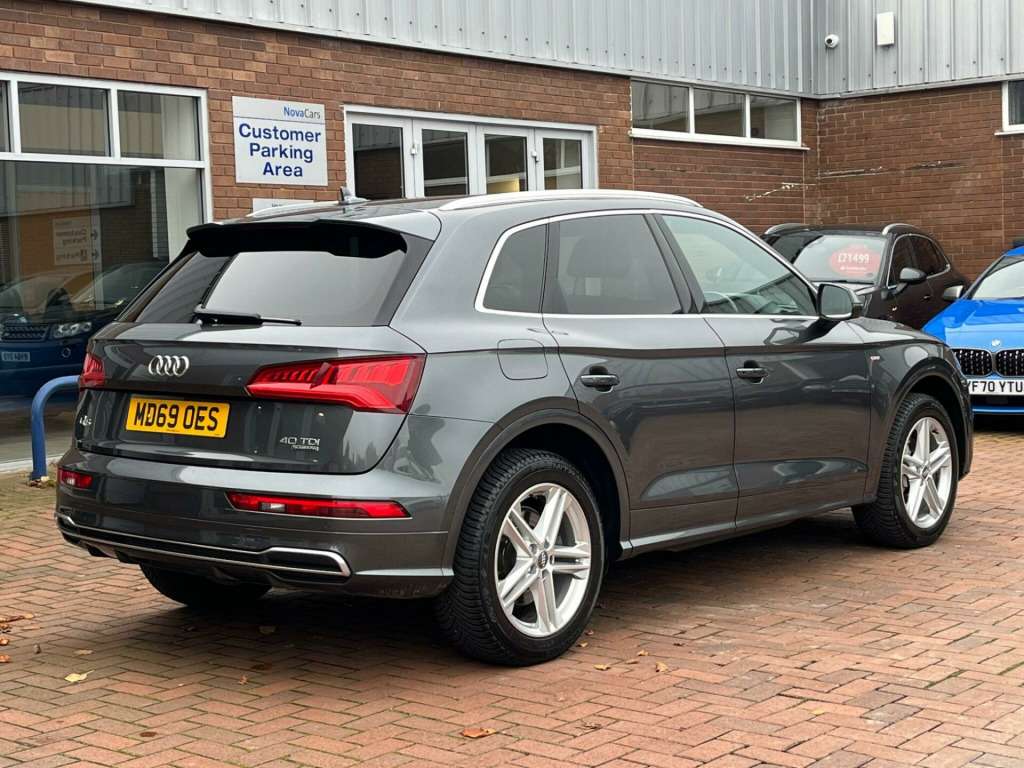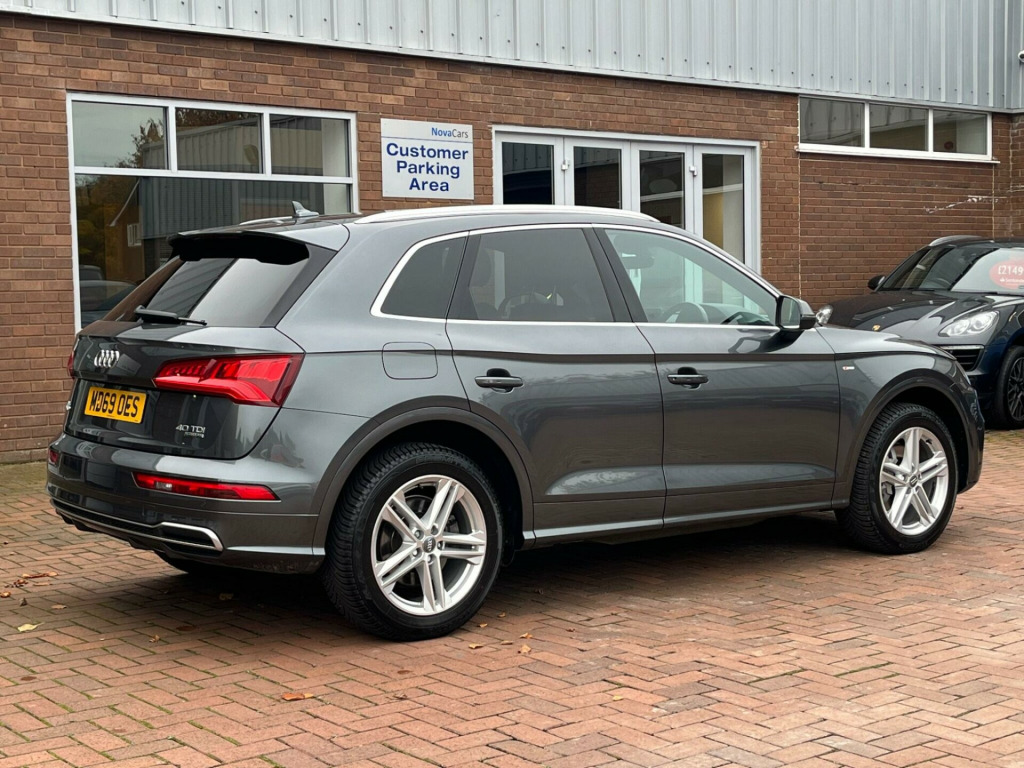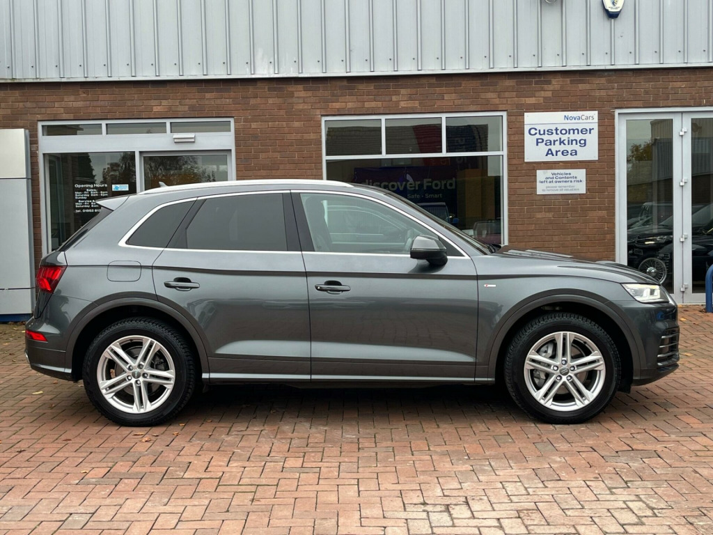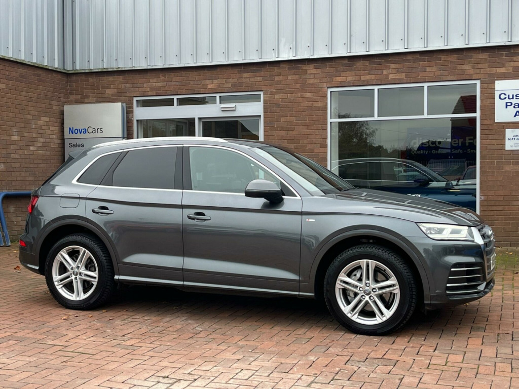 Here at NovaCars we are proud to present this superb Audi Q5 2.0 TDI 40 S line S Tronic quattro Euro 6 (s/s) 5dr finished in Premium Paint Option, Daytona Grey Pearlescent, with contrasting Black Half-Leather/Alcantara interior. Competitive finance available. Extended warranties available up to 3 years on all our vehicles. We are currently operating on an appointment-only basis and offer a Click&Collect/Delivery service where required. Our dedicated sales team are ready and waiting to take your enquiry, so if you are interested please get in touch on 01952 813388, or simply send us a message using the chat feature on this page. We are also happy to offer a live video viewing, where we can show you around the car as if you were here on site looking at it, for more information please get in touch.. 19in Alloy Wheels - 5-Twin-Spoke Star Design - Diamond Cut Finish, 2 x SDXC Card Readers, 2 x USB Charging Ports and 1 x AUX-IN, 4-Way Electric Lumbar Support, 6-Airbag System, Aluminium Roof Rails, Anti Theft Locking Wheel Bolts, Anti-Theft Alarm, Audi Connect Infotainment Services - 3 Month Trial, Audi Connect Safety and Service - e-call, Audi Drive Select, Audi Parking System Plus, Audi Pre-Sense City, Audi Smartphone Interface, Audi Sound System, Auto-Dimming Rear-View Mirror, Automatic Headlight Adjustment, Bluetooth Interface, Body Coloured Door Mirrors, CD Drive, Cloth Headlining in Black, Colour Drivers Information System with 7in Display, Contrast Stitching on Seats - Steering Wheel and Gear Lever Gaiter, Cruise Control with Speed Limiter, DAB Digital Radio, Deluxe 3-Zone Climate Control, Door Mirrors - Electrically Folding and Heated, Dynamic Suspension, ESC - Electronic Stabilisation Control inc ABS - ASR and EDL, Electric Windows - Front and Rear, Electromechanical Parking Brake, Electromechanical Power Steering, Email - Calendar and Text Messages can be Displayed on your Vehicles MMI, First Aid Kit and Warning Triangle, Front Centre Armrest, Front Sports Seats with S Embossed Logo, Front and Rear Floor Mats, Gear Lever Knob in Black Perforated Leather, Headlights - High-Beam Assist, Heated Front Seats, High Multi-function 3-Spoke Leather Steering Wheel with Grips in Perforated Leather and S Badging with Gear-Shift Paddles, High-Gloss Package, Hill Descent Control, Hill Hold Assist, ISOFIX Child Seat Mounting and Top Tether, Illuminated Door Sill Trims with S Logo, Inlays - Matt Brushed Aluminium, Keyless Go, LED Headlights with LED Rear Lights and Dynamic Rear Indicators, LED Interior Lighting Pack, Light and Rain Sensor, MMI Navigation - SD Card Based, MMI Radio Plus with 7in Colour MMI Screen and MMI Controller, Manual Seat Adjustment, Multi Collision Brake Assist, Pedals in Stainless Steel, Pop-Up Bonnet for Pedestrian Protection, Power Operated Tailgate, Privacy Glass with Acoustic Glazing For Front Windows, Radiator Grille in Twilight Grey with Horizontal Matt Aluminium Struts, Rear Diffuser in Body Colour with Matt Aluminium Silver Surrounds, Remote Central Locking, Removable Luggage Compartment Floor, Removable Net Partition, S Line Badges on the Front Wing Panels, S Line Front and Rear Bumpers, S Line Roof Spoiler, S Line Side Skirts, Seat Belt Monitoring, Side and Rear Windows in Heat-Insulating Glass, Split Folding Rear Seat Bench - 40-20-40 with Rear Seat Armrest, Stainless Steel Loading Sill Protector, Sun Visors - with Vanity Mirror, Tool Kit, Tow Bar Preparation, Tyre Pressure Warning Light, Tyre Repair Kit, Underbody Protection in Body Colour, Voice Control System, Windscreen with Acoustic Glass, quattro On Demand, Leather-Alcantara - Black with Rock Grey Stitching. Full dealership history