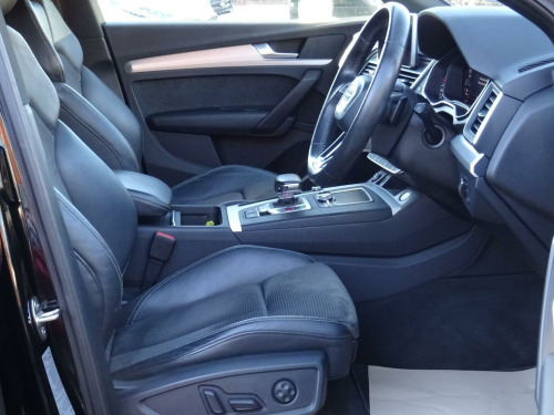 Central Motors are pleased to offer lovely 2 owner from new 2019-19 plate Audi Q5 2.0 40 190ps TDi Quattro S-Line Automatic finished in Mythos Black metallic with Black Leather/Alcantara trim. The car is in excellent order throughout and being an S-Line it is the most desirable model in the Q5 line up. This car was a main Audi dealer car from new being highly specified with the factory fitted options above a standard S-Line of – electrically adjustable front seats with driver memory, power-fold door mirrors with auto dip/ memory function on the passenger side, Tech Pack (Audi virtual cockpit, MMI navigation plus with touch pad & wireless phone charger) & 21 Polygon Arm Audi Sport alloy wheels (just professionally refurbished inside & out) The last owner has had the car since it was just 5 months old, purchased from the supplying main dealer, Watford Audi where it has been serviced prior to coming to us. The car comes with 6 months warranty which can be extended up to 24 months at additional cost. We have all handbooks, wallet & 2 keys. We have just carried out a service & inspection including new front & rear brake pads in our workshop by our fully trained technicians prior to us offering it for sale and also has a very good set of Pirelli P Zero tyres fitted. The car is also now just £195 a year to tax. We are located in East Street Chard TA20 1EP just off of the town centre on the A30 trunk road and also within easy reach of Junction 25 of the M5 Motorway at Taunton. We provide a relaxed but professional buying experience. We check our prices regularly to make sure our cars are competitively priced. , We also carry out thorough checks in our approved workshops and prepare our cars to higher standards than most. , You are welcome to come and view/test drive the car you are interested in at our site in Chard. Please call ahead to make sure the car you are coming to view is still available, we can then put you in the diary so you can be assured we have time to look after you. Please make sure to bring your driving licence.