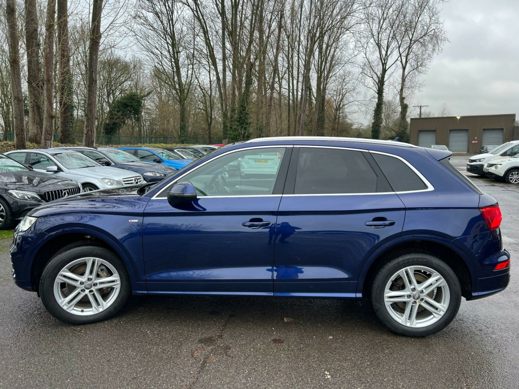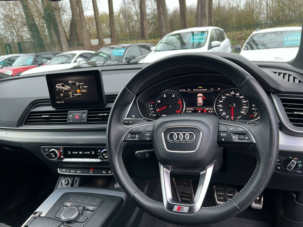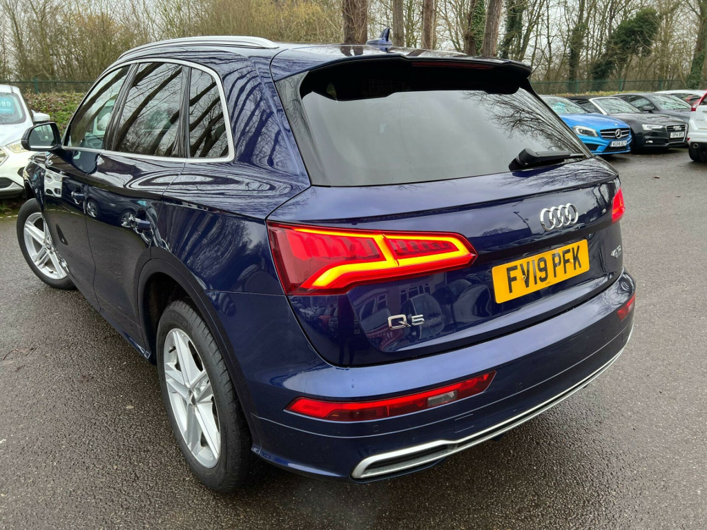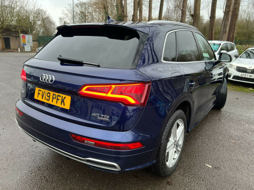 Here at A&A Auto Sales just arrived in stock we have a Audi Q5 2.0 TDI 40 S Line S Tronic Quattro. We are FCA regulated and offer competitive finance packages, do not hesitate to contact us if you would like to explore the option. All our vehicles come with 6 months comprehensive premium warranty which is extendable for up to 3 years. The vehicle comes with 1 previous owner, 12 months MOT upon purchase, Full service history with service book provided, Mileage at 91715 warranted miles. The buyer will be supplied with the V5 registration document, service records, MOT certificate and a HPI clear certificate too.This 2019 Audi Q5 TDI S line offers a superb blend of performance and advanced technology. As a Euro 6 compliant model, it features a powerful 2.0 litre diesel engine paired with Audi's renowned four wheel drive system, ensuring confident handling in all conditions. The S line trim enhances its sporty appeal, while the inclusion of Audi Matrix LED headlights with dynamic indicators, alongside LED rear lights, provides exceptional visibility and a distinctive visual signature. Inside, you'll find comfort and convenience with deluxe 3 zone climate control and heated front seats, all managed through an integrated Bluetooth interface.The Q5 TDI S line demonstrates its capability with an impressive 0-62mph acceleration time of just 8.1 seconds, showcasing its dynamic performance. This acceleration figure indicates a superior driving experience compared to many vehicles in its class. Furthermore, the generous boot space offers practicality for everyday needs and longer journeys, making this Audi Q5 a versatile and capable choice for those seeking a premium SUV.. 19in Alloy Wheels - 5-Twin-Spoke Star Design - Diamond Cut Finish, 2 x SDXC Card Readers, 2 x USB Charging Ports and 1 x AUX-IN, 4-Way Electric Lumbar Support, 6-Airbag System, Aluminium Roof Rails, Anti Theft Locking Wheel Bolts, Anti-Theft Alarm, Audi Connect Infotainment Services - 3 Month Trial, Audi Connect Safety and Service - e-call, Audi Drive Select, Audi Parking System Plus, Audi Pre-Sense City, Audi Smartphone Interface, Audi Sound System, Auto-Dimming Rear-View Mirror, Automatic Headlight Adjustment, Bluetooth Interface, Body Coloured Door Mirrors, CD Drive, Cloth Headlining in Black, Colour Drivers Information System with 7in Display, Contrast Stitching on Seats - Steering Wheel and Gear Lever Gaiter, Cruise Control with Speed Limiter, DAB Digital Radio, Deluxe 3-Zone Climate Control, Door Mirrors - Electrically Folding and Heated, Dynamic Suspension, ESC - Electronic Stabilisation Control inc ABS - ASR and EDL, Electric Windows - Front and Rear, Electromechanical Parking Brake, Electromechanical Power Steering, Email - Calendar and Text Messages can be Displayed on your Vehicles MMI, First Aid Kit and Warning Triangle, Front Centre Armrest, Front Sports Seats with S Embossed Logo, Front and Rear Floor Mats, Gear Lever Knob in Black Perforated Leather, Headlights - High-Beam Assist, Heated Front Seats, High Multi-function 3-Spoke Leather Steering Wheel with Grips in Perforated Leather and S Badging with Gear-Shift Paddles, High-Gloss Package, Hill Descent Control, Hill Hold Assist, ISOFIX Child Seat Mounting and Top Tether, Illuminated Door Sill Trims with S Logo, Inlays - Matt Brushed Aluminium, Keyless Go, LED Headlights with LED Rear Lights and Dynamic Rear Indicators, LED Interior Lighting Pack, Light and Rain Sensor, MMI Navigation - SD Card Based, MMI Radio Plus with 7in Colour MMI Screen and MMI Controller, Manual Seat Adjustment, Multi Collision Brake Assist, Pedals in Stainless Steel, Pop-Up Bonnet for Pedestrian Protection, Power Operated Tailgate, Privacy Glass with Acoustic Glazing For Front Windows, Radiator Grille in Twilight Grey with Horizontal Matt Aluminium Struts, Rear Diffuser in Body Colour with Matt Aluminium Silver Surrounds, Remote Central Locking, Removable Luggage Compartment Floor, Removable Net Partition, S Line Badges on the Front Wing Panels, S Line Front and Rear Bumpers, S Line Roof Spoiler, S Line Side Skirts, Seat Belt Monitoring, Side and Rear Windows in Heat-Insulating Glass, Split Folding Rear Seat Bench - 40-20-40 with Rear Seat Armrest, Stainless Steel Loading Sill Protector, Sun Visors - with Vanity Mirror, Tool Kit, Tow Bar Preparation, Tyre Pressure Warning Light, Tyre Repair Kit, Underbody Protection in Body Colour, Voice Control System, Windscreen with Acoustic Glass, quattro On Demand, Audi Matrix LED Headlights with LED Rear Lights and Dynamic Front and Rear Indicators. Full service history
