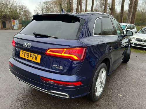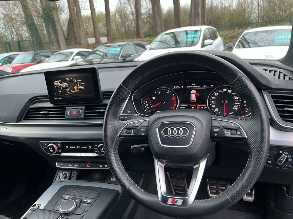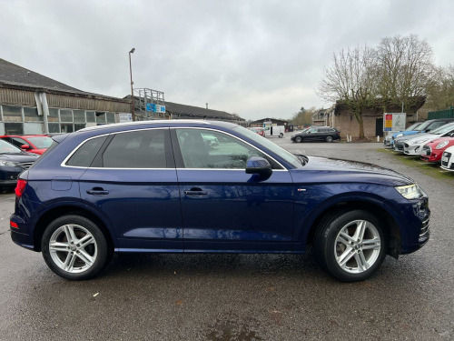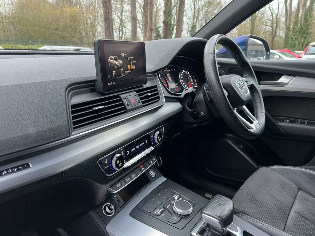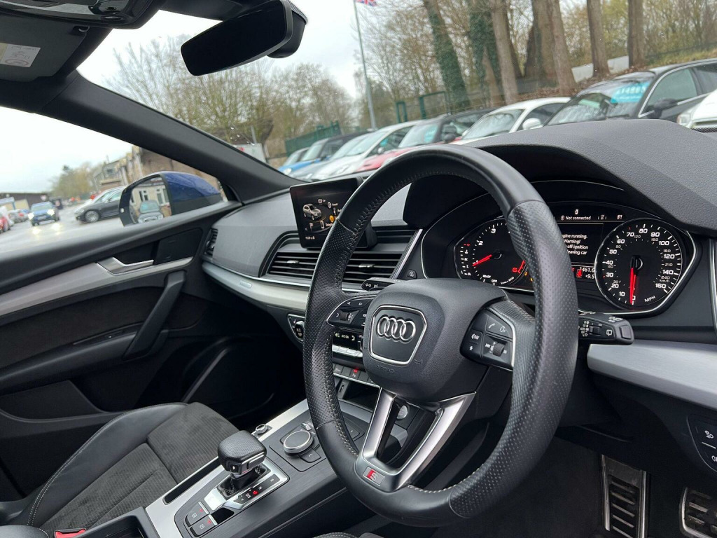 Here at A&A Auto Sales just arrived in stock we have a Audi Q5 2.0 TDI 40 S Line S Tronic Quattro. We are FCA regulated and offer competitive finance packages, do not hesitate to contact us if you would like to explore the option. All our vehicles come with 6 months comprehensive premium warranty which is extendable for up to 3 years. The vehicle comes with 1 previous owner, 12 months MOT upon purchase, Full service history with service book provided, Mileage at 91715 warranted miles. The buyer will be supplied with the V5 registration document, service records, MOT certificate and a HPI clear certificate too. , This 2019 Audi Q5 TDI S line offers a superb blend of performance and advanced technology. As a Euro 6 compliant model, it features a powerful 2.0 litre diesel engine paired with Audis renowned four wheel drive system, ensuring confident handling in all conditions. The S line trim enhances its sporty appeal, while the inclusion of Audi Matrix LED headlights with dynamic indicators, alongside LED rear lights, provides exceptional visibility and a distinctive visual signature. Inside, youll find comfort and convenience with deluxe 3 zone climate control and heated front seats, all managed through an integrated Bluetooth interface. The Q5 TDI S line demonstrates its capability with an impressive 0-62mph acceleration time of just 8.1 seconds, showcasing its dynamic performance. This acceleration figure indicates a superior driving experience compared to many vehicles in its class. Furthermore, the generous boot space offers practicality for everyday needs and longer journeys, making this Audi Q5 a versatile and capable choice for those seeking a premium SUV.