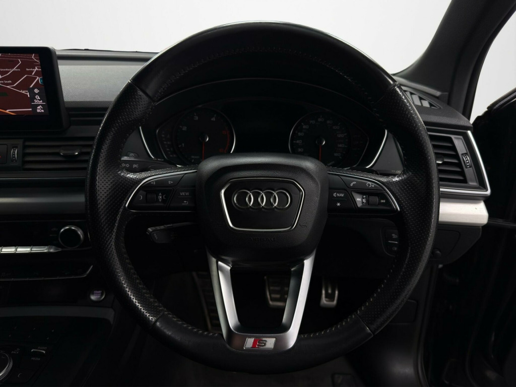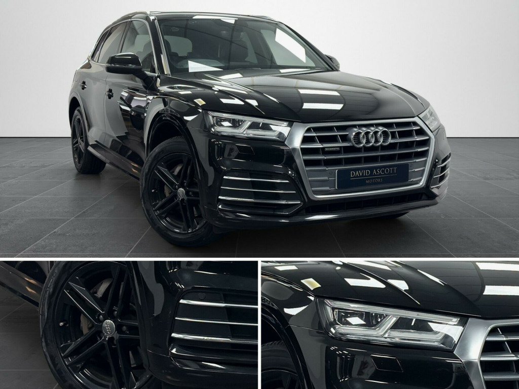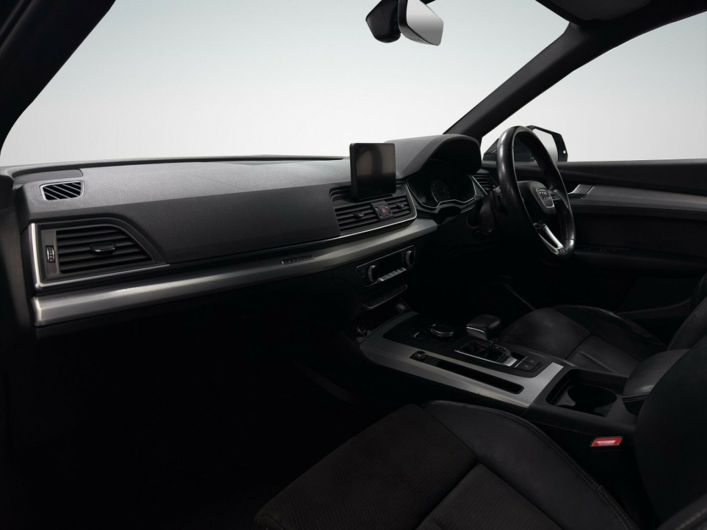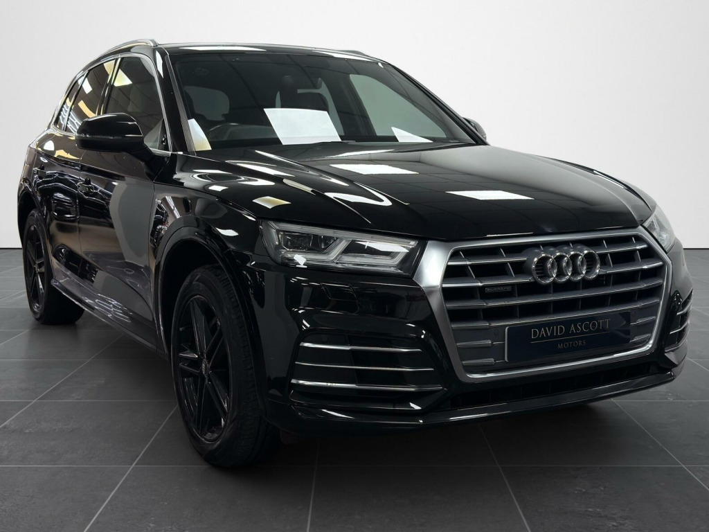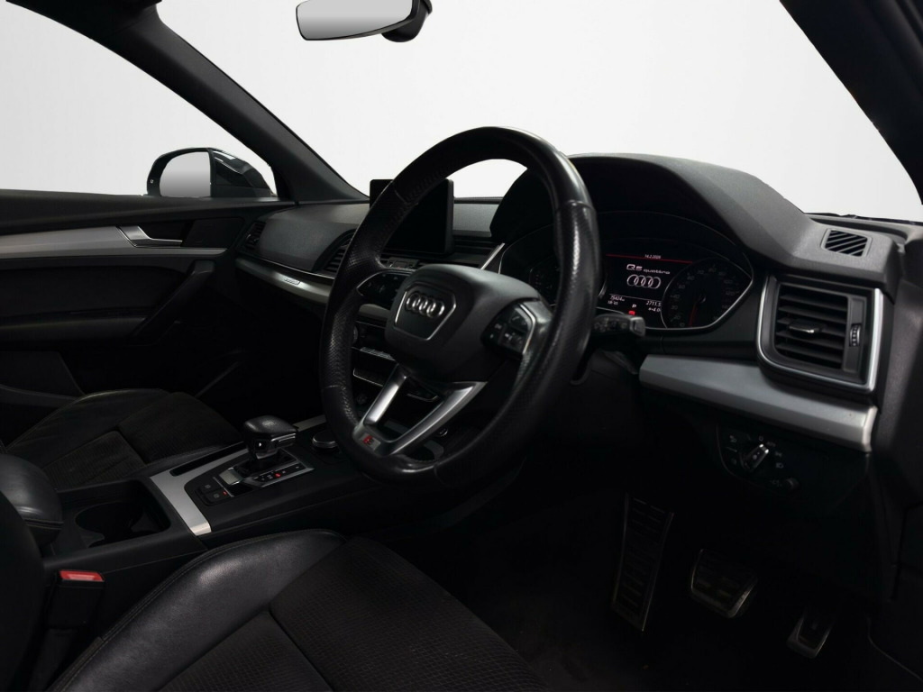 This 2019 Audi Q5 TDI S line boasts a clear vehicle history, offering you peace of mind. This stylish SUV features a powerful 2.0 litre diesel engine paired with Audi's renowned four wheel drive system, ensuring confident performance in all conditions. As a Euro 6 compliant vehicle, it meets modern emissions standards. The S line trim enhances its sporty appeal, and you'll appreciate the convenience of heated front seats, the Audi Parking System Plus with front and rear sensors, and seamless Bluetooth connectivity for your devices. Automatic headlights and wipers are managed by the Light and Rain Sensor, while the striking LED headlights with dynamic rear indicators provide excellent visibility.Experience impressive acceleration with the Q5 reaching 0 to 62 miles per hour in just 8.1 seconds, a testament to its dynamic capabilities. This performance, combined with its spacious boot, makes the Q5 a practical yet engaging choice for everyday driving and longer journeys. The inclusion of features like LED lighting and advanced parking assistance further elevates its appeal, demonstrating how this Audi Q5 offers a superior driving experience compared to other vehicles in its class. in alloy wheels - 5-twin-spoke star design - diamond cut finish, 2 x sdxc card readers, 2 x usb charging ports and 1 x aux-in, 4-way electric lumbar support, 6-airbag system, aluminium roof rails, anti theft locking wheel bolts, anti-theft alarm, audi connect infotainment services - 3 month trial, audi connect safety and service - e-call, audi drive select, audi parking system plus, audi pre-sense city, audi smartphone interface, audi sound system, auto-dimming rear-view mirror, automatic headlight adjustment, bluetooth interface, body coloured door mirrors, cd drive, cloth headlining in black, colour drivers information system with 7in display, contrast stitching on seats - steering wheel and gear lever gaiter, cruise control with speed limiter, dab digital radio, deluxe 3-zone climate control, door mirrors - electrically folding and heated, dynamic suspension, esc - electronic stabilisation control inc abs - asr and edl, electric windows - front and rear, electromechanical parking brake, electromechanical power steering, email - calendar and text messages can be displayed on your vehicles mmi, first aid kit and warning triangle, front centre armrest, front sports seats with s embossed logo, front and rear floor mats, gear lever knob in black perforated leather, headlights - high-beam assist, heated front seats, high multi-function 3-spoke leather steering wheel with grips in perforated leather and s badging with gear-shift paddles, high-gloss package, hill descent control, hill hold assist, isofix child seat mounting and top tether, illuminated door sill trims with s logo, inlays - matt brushed aluminium, keyless go, led headlights with led rear lights and dynamic rear indicators, led interior lighting pack, light and rain sensor, mmi navigation - sd card based, mmi radio plus with 7in colour mmi screen and mmi controller, manual seat adjustment, multi collision brake assist, pedals in stainless steel, pop-up bonnet for pedestrian protection, power operated tailgate, privacy glass with acoustic glazing for front windows, radiator grille in twilight grey with horizontal matt aluminium struts, rear diffuser in body colour with matt aluminium silver surrounds, remote central locking, removable luggage compartment floor, removable net partition, s line badges on the front wing panels, s line front and rear bumpers, s line roof spoiler, s line side skirts, seat belt monitoring, side and rear windows in heat-insulating glass, split folding rear seat bench - 40-20-40 with rear seat armrest, stainless steel loading sill protector, sun visors - with vanity mirror, tool kit, tow bar preparation, tyre pressure warning light, tyre repair kit, underbody protection in body colour, voice control system, windscreen with acoustic glass, quattro on demand