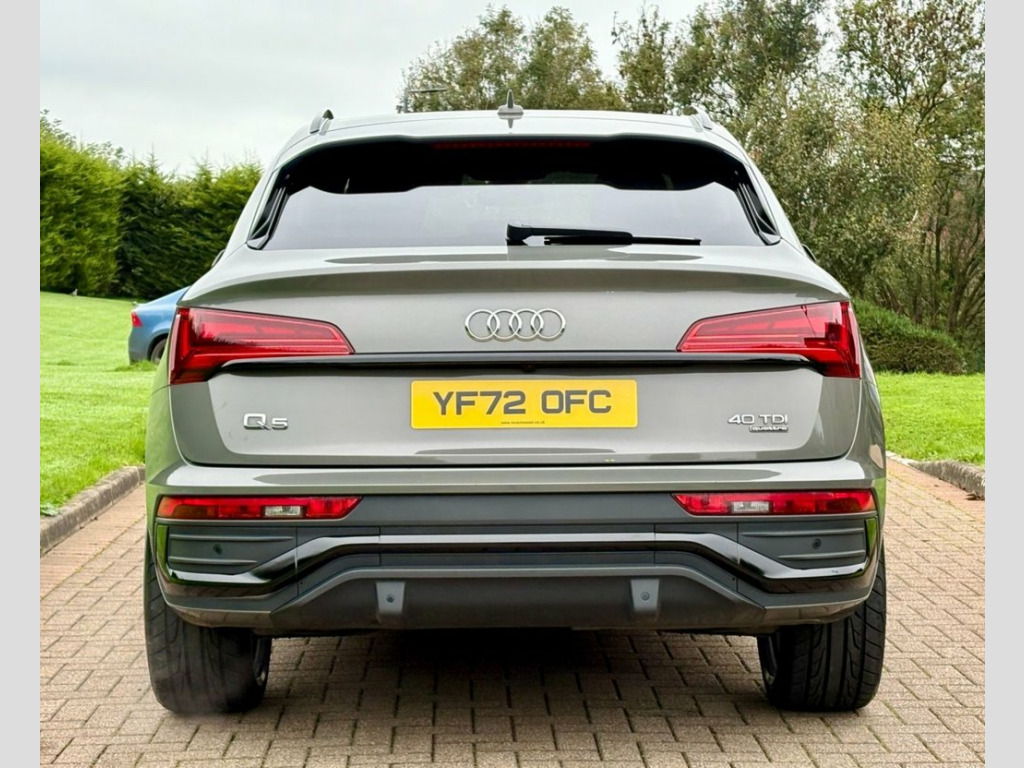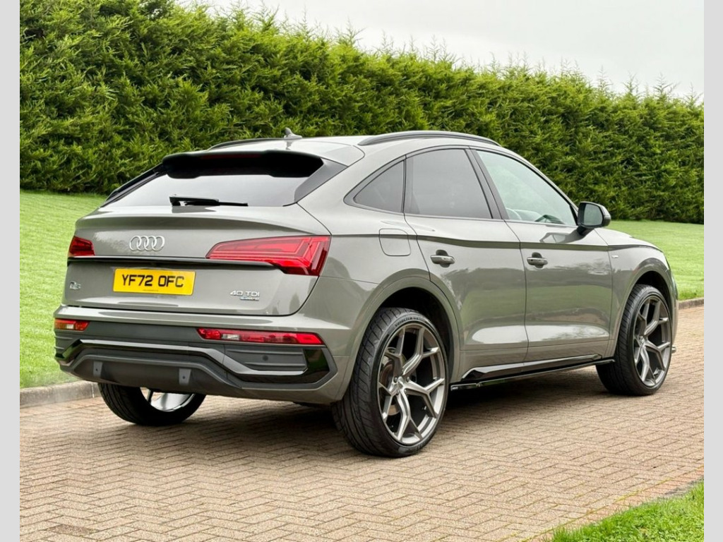 December 2022 Audi Q5 Sportback 40TDI Quattro S-Line S-Tronic in Chronos Grey. Full Service History. Mot'd to December 2026. Loaded with spec including Half Leather / Alcantara Interior, Heated Seats, Tech Pack, Virtual Cockpit, Navigation System, Phone Booster, LED Headlights, Privacy Glass, Audi Drive Select, DAB Radio, Multi-Functional Steering Wheel, Side Steps, Aero Styling Kit etc. Fitted with Brand New 22" Alloys & Tyres (Optional Extra £1395) FINANCE AVAILABLE AT KEEN RATES!! 19in Alloy Wheels - 5-Twin-Spoke Star De, 2 USB Charging Ports -1 x USB-A and 1 x , 3-Spoke Multi-Function Leather Steering , 6-Airbag System, Air Vents - Inserts and Centre Console i, Aluminium Roof Rails, Anti Theft Locking Wheel Bolts, Anti-Theft Alarm, Audi Connect Navigation and Infotainment, Audi Connect Safety and Service, Audi Connect with Amazon Alexa Integrati, Audi Drive Select, Audi Pre-Sense City, Audi Virtual Cockpit Plus - 12.3in Scree, Audi Wireless Smartphone Interface, Auto Dimming and Frameless Rear View Mir, Automatic Headlight Adjustment, Automatic Headlight and Windscreen Wiper, Automatic Start-Stop with Coasting Funct, Bluetooth Interface, Body Coloured Door Mirrors, C