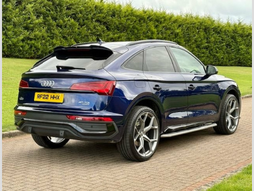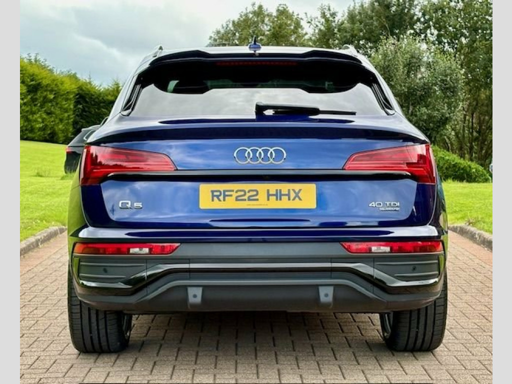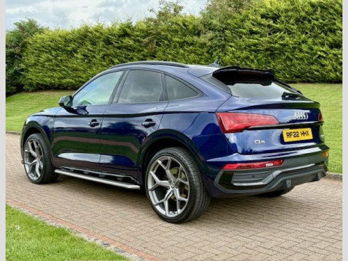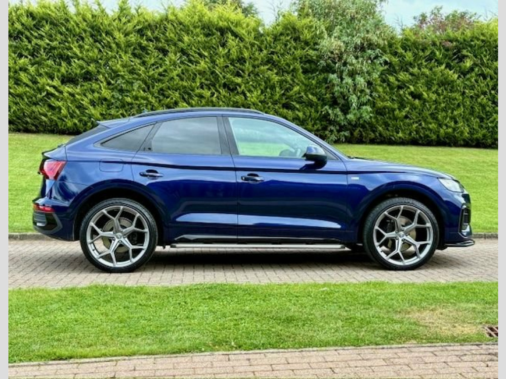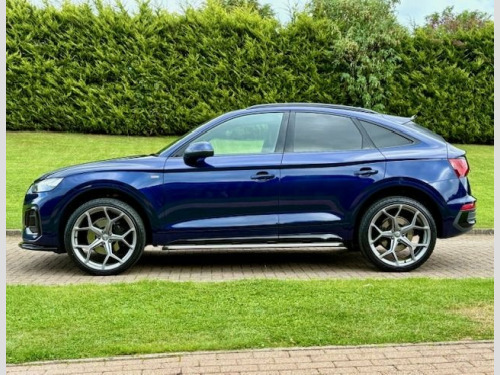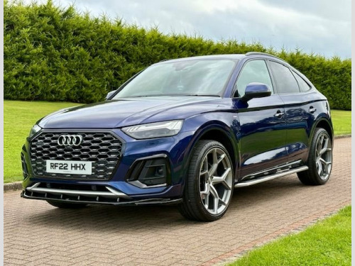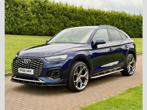 August 2022 Audi Q5 Sportback 40TDI Quattro S-Line S-Tronic in Navarra Blue. Full Service History. Mot'd to August 2026. Loaded with spec including Half Leather / Alcantara Interior, Heated Seats, Tech Pack, Virtual Cockpit, Navigation System, Phone Booster, LED Headlights, Privacy Glass, Audi Drive Select, DAB Radio, Multi-Functional Steering Wheel, Side Steps, Aero Styling Kit etc. Fitted with Brand New 22" Alloys & Tyres (Optional Extra £1395) FINANCE AVAILABLE AT KEEN RATES!! 19in Alloy Wheels - 5-Twin-Spoke Star De, 2 USB Charging Ports -1 x USB-A and 1 x , 3-Spoke Multi-Function Leather Steering , 6-Airbag System, Air Vents - Inserts and Centre Console i, Aluminium Roof Rails, Anti Theft Locking Wheel Bolts, Anti-Theft Alarm, Audi Connect Navigation and Infotainment, Audi Connect Safety and Service, Audi Connect with Amazon Alexa Integrati, Audi Drive Select, Audi Pre-Sense City, Audi Virtual Cockpit Plus - 12.3in Scree, Audi Wireless Smartphone Interface, Auto Dimming and Frameless Rear View Mir, Automatic Headlight Adjustment, Automatic Headlight and Windscreen Wiper, Automatic Start-Stop with Coasting Funct, Bluetooth Interface, Body Coloured Door Mirrors, C