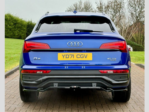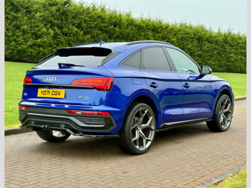 September 2021 Audi Q5 Sportback 40TDI Quattro S-Line S-Tronic in Ultra Blue. Full Service History. Mot'd to August 2026. Loaded with spec including Full Upgraded Diamond Stitched Leather Interior, Heated Seats, Tech Pack, Virtual Cockpit, Navigation System, Phone Booster, LED Headlights, Privacy Glass, Audi Drive Select, DAB Radio, Multi-Functional Steering Wheel, Side Steps, Aero Styling Kit etc. Fitted with Brand New 22" Alloys & Tyres (Optional Extra £1395) FINANCE AVAILABLE AT KEEN RATES!! 19in Alloy Wheels - 5-Twin-Spoke Star De, 2 USB Charging Ports -1 x USB-A and 1 x , 3-Spoke Multi-Function Leather Steering , 6-Airbag System, Aluminium Roof Rails, Anti Theft Locking Wheel Bolts, Anti-Theft Alarm, Audi Connect Navigation and Infotainment, Audi Connect with Amazon Alexa Integrati, Audi Drive Select, Audi Pre-Sense City, Audi Virtual Cockpit Plus - 12.3in Scree, Audi Wireless Smartphone Interface, Auto-Dimming Rear-View Mirror, Automatic Headlight Adjustment, Automatic Headlight and Windscreen Wiper, Automatic Start-Stop with Coasting Funct, Bluetooth Interface, Body Coloured Door Mirrors, Chrome-Plated Exhaust Trim, Cloth Headlining in Black, Comfort Front Centre Armrest - H
