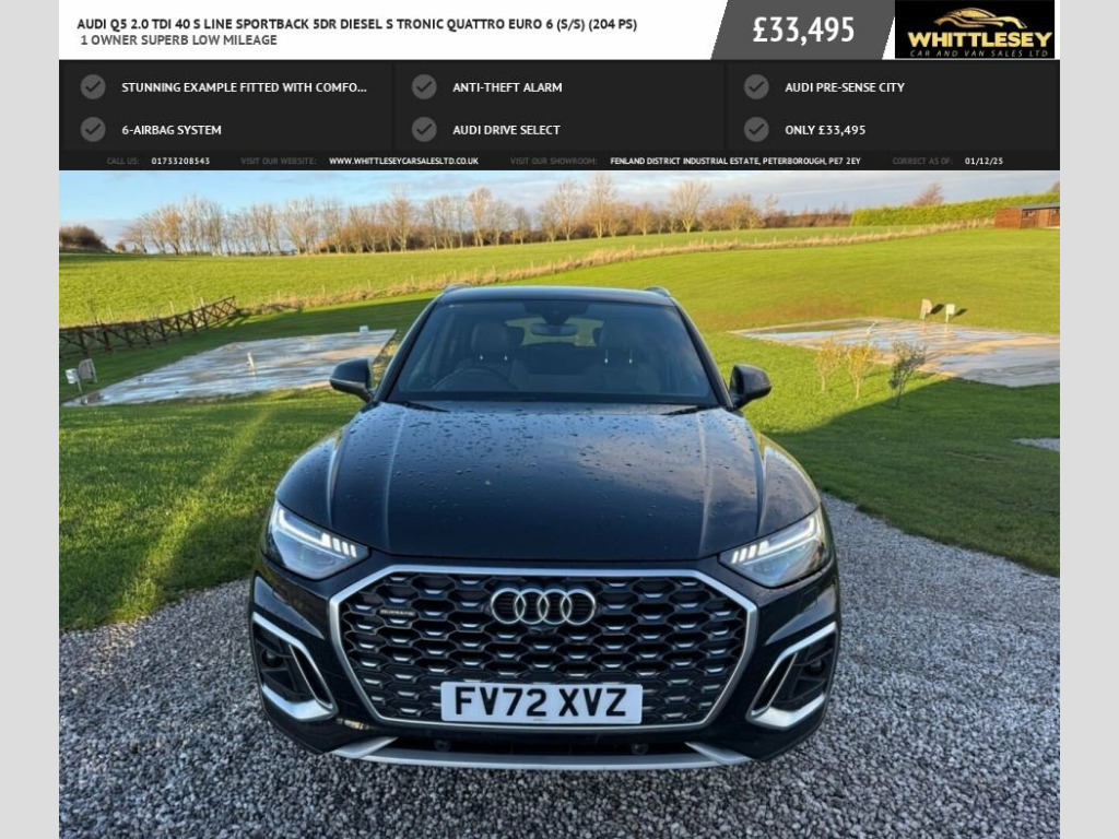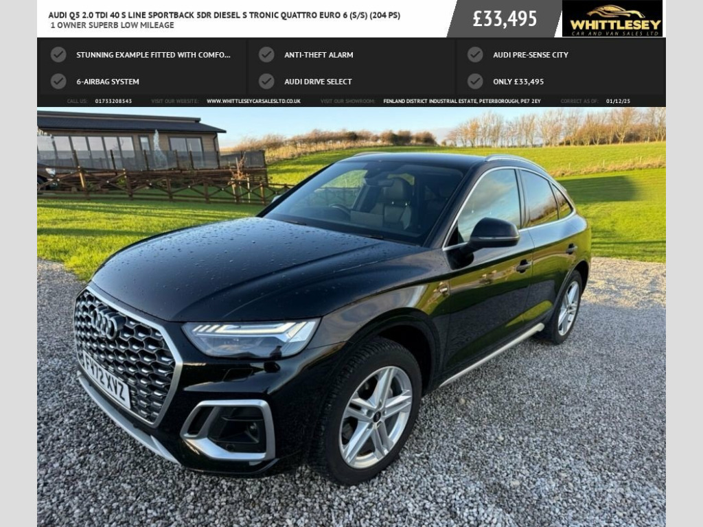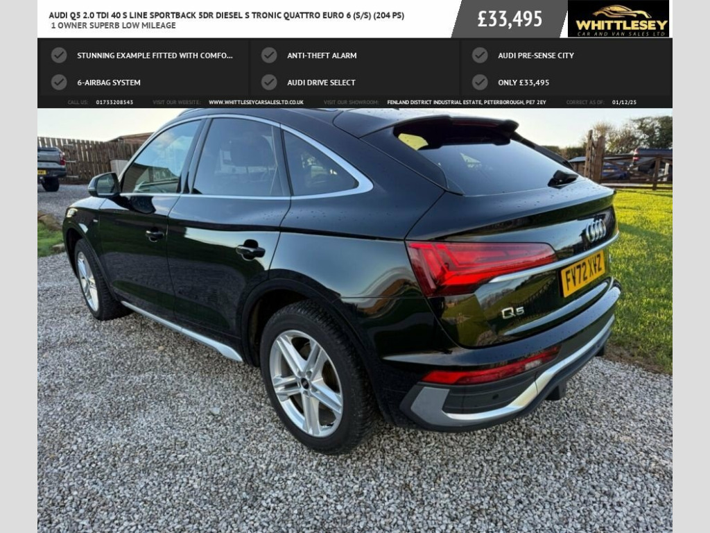 This 2022 Audi Q5 2.0 TDI 40 S line Sportback 5dr Diesel S Tronic qu is currently available for £33,495 in Peterborough Cambridgeshire with Diesel engine and Automatic gearbox. For more information or to arrange a viewing, click here to send us an email using form below.