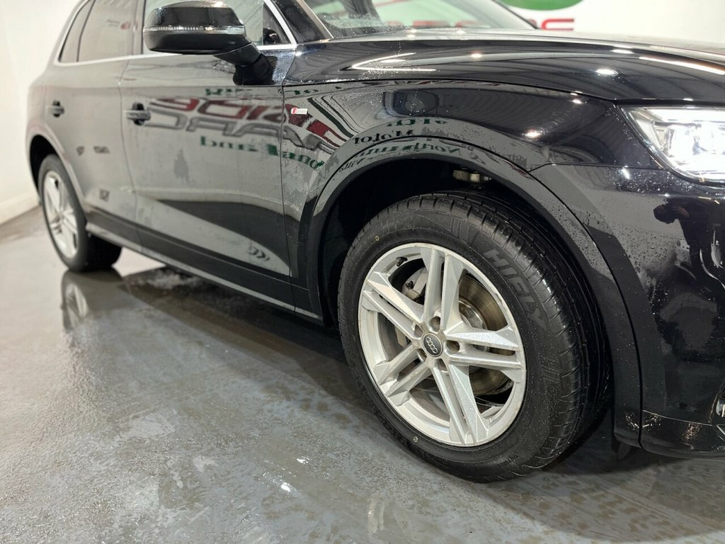 Introducing the meticulously maintained Audi Q5 2.0 TDI 40 S Line SUV. This vehicle stands out for its exceptional service history, having been maintained with care and attention throughout its life. The car has undergone comprehensive servicing at 39,000, 49,000, and 62,000 miles, ensuring that it has been kept in top condition. In addition, the timing belt and water pump were replaced from new, and the gearbox was serviced at 65,000 miles, providing further peace of mind to the next owner. This Audi Q5 offers fantastic value for money, with its blend of practicality, luxury, and performance. The specification includes alloy wheels, electric tailgate, privacy glass, front and rear parking sensors, heated folding door mirrors, cruise control, half leather interior, heated front seats, DAB radio, navigation, Bluetooth, climate control, keyless entry, and automatic lights. With such a high level of equipment, the Q5 offers a premium driving experience, combining style, comfort, and advanced technology. If you're looking for a well-maintained, reliable, and well-equipped SUV, this Audi Q5 is an excellent choice and represents superb value for money. 19in Alloy Wheels - 5-Twin-Spoke Star De, 2 x SDXC Card Readers, 2 x USB Charging Ports and 1 x AUX-IN, 4-Way Electric Lumbar Support, 6-Airbag System, Aluminium Roof Rails, Anti Theft Locking Wheel Bolts, Anti-Theft Alarm, Audi Connect Infotainment Services - 3 M, Audi Connect Safety and Service - e-call, Audi Drive Select, Audi Parking System Plus, Audi Pre-Sense City, Audi Smartphone Interface, Audi Sound System, Auto-Dimming Rear-View Mirror, Automatic Headlight Adjustment, Bluetooth Interface, Body Coloured Door Mirrors, CD Drive, Cloth Headlining in Black, Colour Drivers Information System with 7, Contrast Stitching on Seats - Steering W, Cruise Control with Speed Limiter, DAB Digital