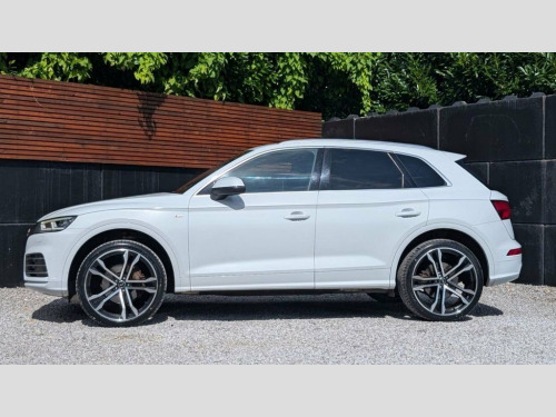 THIS STUNNING Q5 COMES WITH A GREAT SPECIFICATION INCLUDING   - RS style honeycomb grille - 22" Alloy wheels - Ibis White - Anthracite Half Leather Seats - Heated Seats - Tech Pack - Virtual Dashboard - Wireless Charging - LED headlights with daytime running lights - Automatic transmission - OPTIONAL EXTRA'S / UPGRADES AVAILABLE:    - Optional brake caliper painting to a colour of your choice - Optional debadge - Optional gloss black badges  - Optonal gloss black wing mirrors - Optional rear privacy - Optional exterior de-chrome - 3 year manufacturer equivalent warranty   - The fitment of the brand new tyres, alloy wheels and styling parts are subject to a fee of £249. This also warrants the fitted parts for 12 months. - Number of keys to be confirmed at the point of sale. Leather-Alcantara - Black with Rock Grey, Technology Package, Ibis White, 2 x SDXC Card Readers, 2 x USB Charging Ports and 1 x AUX-IN, 4-Way Electric Lumbar Support, 6-Airbag System, Air Inlets in Matt Titanium Black with B, Aluminium Roof Rails, Anti Theft Locking Wheel Bolts, Anti-Theft Alarm, Audi Connect Infotainment Services - 3 M, Audi Connect Safety and Service - e-call, Audi Drive Select, Audi Parking System Plus, Audi Pre-Sense City, Audi Smartphone Interface, Auto-Dimming Rear-View Mirror, Automatic Headlight Adjustment, Bluetooth Interface, Body Coloured Door Mirrors, CD Drive, Chrome-Plated Exhaust Trim, Cloth Headlining in Black, Colour Drivers Information System with 7, Contra