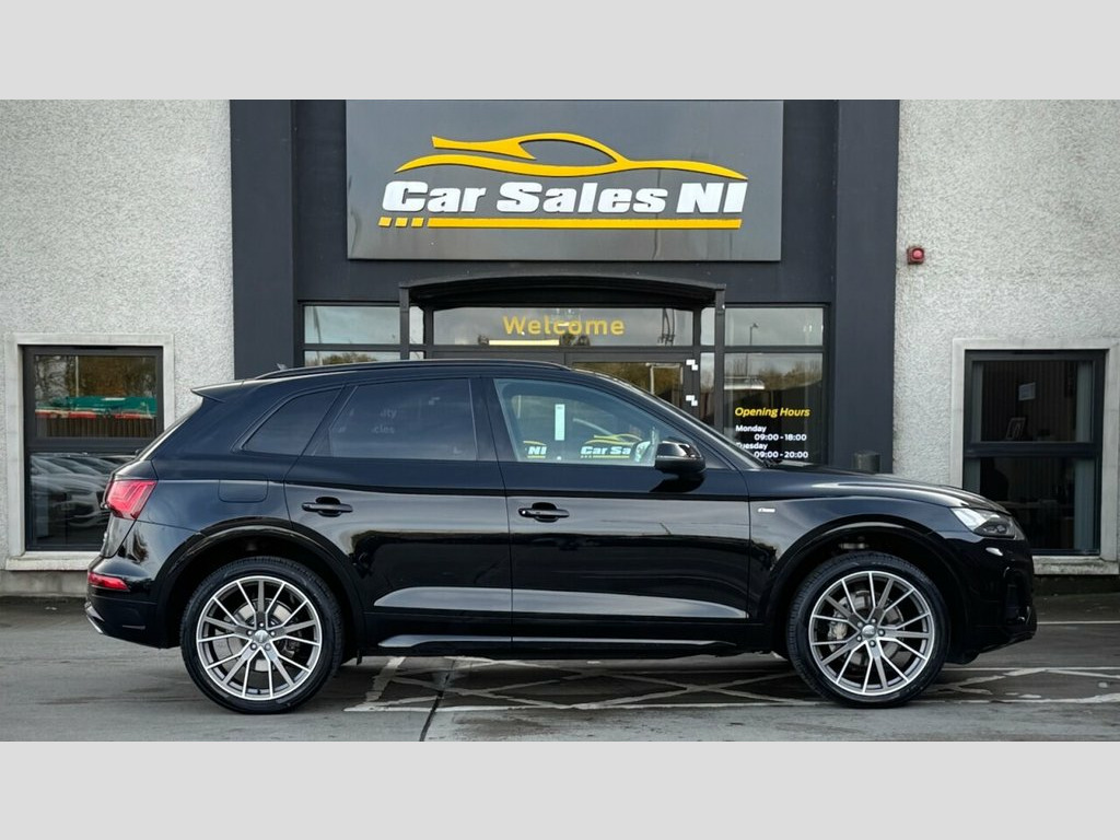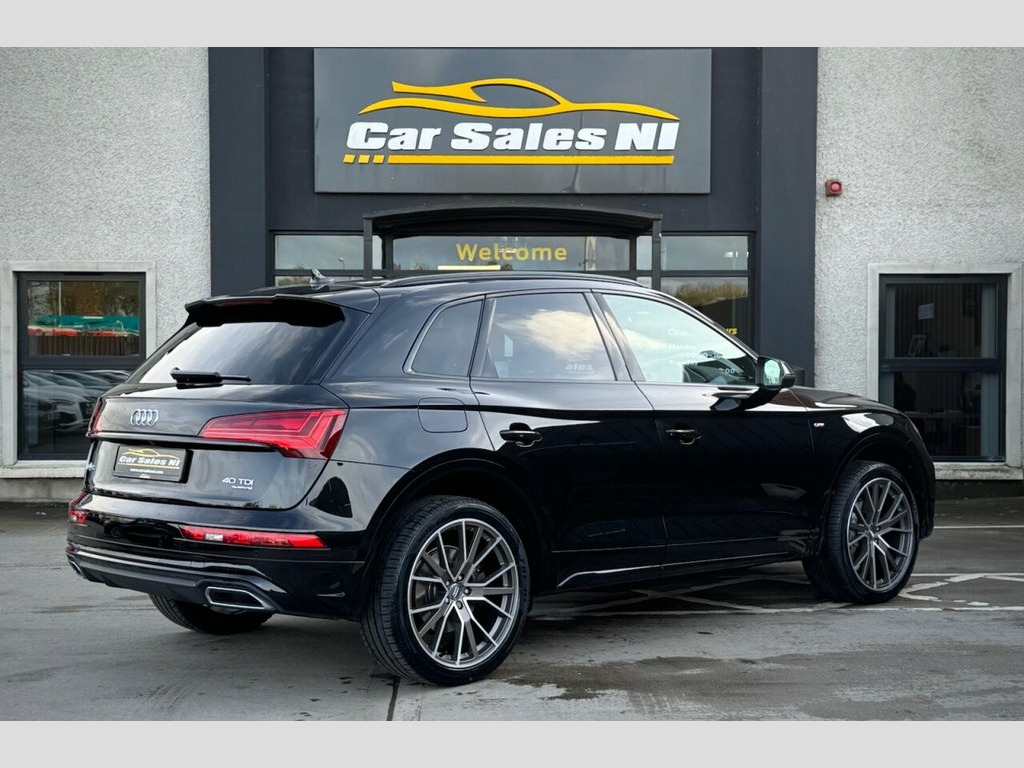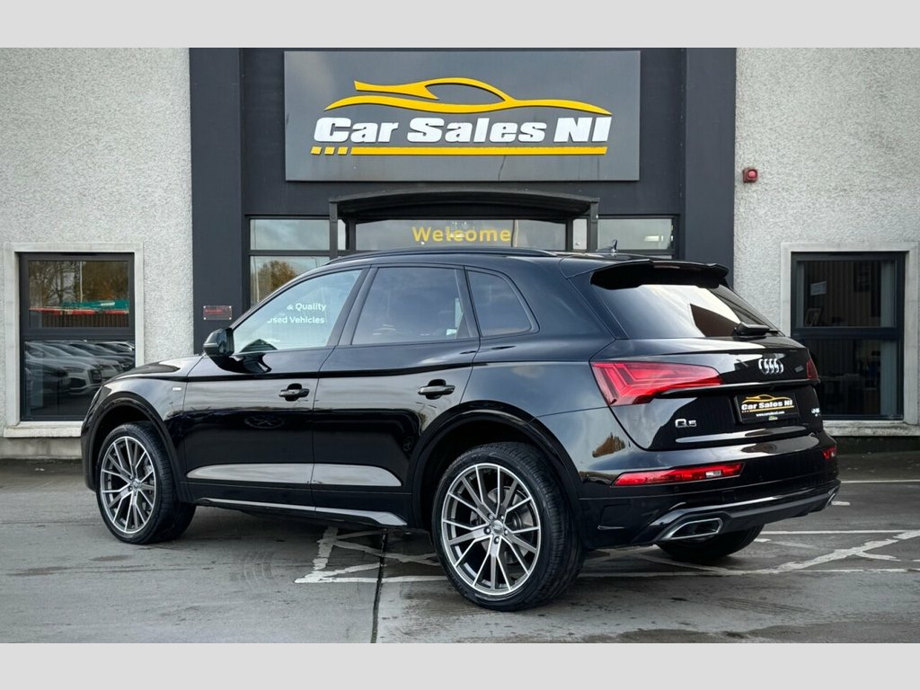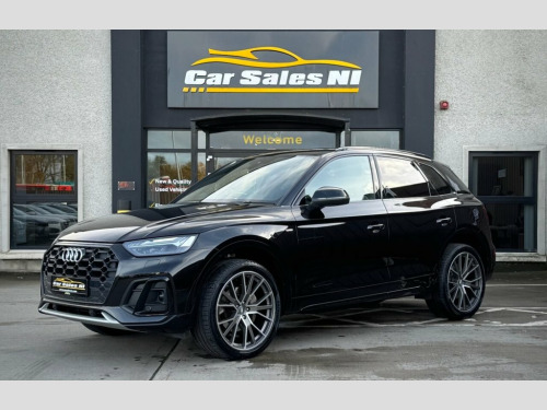 2022 AUDI Q5 S LINE 40 TDI QUATTRO 202 BHP 1 Owner from new, 2.0 Diesel Model, Covered 78k miles, Finished in Black, Key Features include: 21'' Upgraded alloy wheels (£1,100 Optional extra) Rear Privacy glass Black Edition styling Front and Rear Parking sensors Reversing Camera Half Leather S Line Interior Leather Multifunctional steering wheel Paddle shift Heated front seats Dual Climate Control Virtual cockpit DAB Radio / Bluetooth / Sat Nav Apple / Android Car Play AUDI Drive Mode Select Electronic Tailgate ISOFIX Child seat points And so much more... Call today to arrange a test drive Tailored finance packages available to suit your needs Comprehensive warranty on all cars Trade ins welcome Delivery to North and South of Ireland if required 19in Alloy Wheels - 5-Twin-Spoke Star De, 2 USB Charging Ports -1 x USB-A and 1 x , 3-Spoke Multi-Function Leather Steering , 6-Airbag System, Air Vents - Inserts and Centre Console i, Aluminium Roof Rails, Anti Theft Locking Wheel Bolts, Anti-Theft Alarm, Audi Connect Navigation and Infotainment, Audi Connect Safety and Service, Audi Connect with Amazon Alexa Integrati, Audi Drive Select, Audi Pre-Sense City, Audi Virtual Cockpit Plus - 12.3in Scree, Audi Wireless Smartphone Interface, Auto Dimming and Frameless Rear View Mir, Automatic Headlight Adjustment, Automatic Headlight and Windscreen Wiper, Automatic Start-Stop with Coasting Funct, Bluetooth Interface, Body Coloured Door Mirrors, C