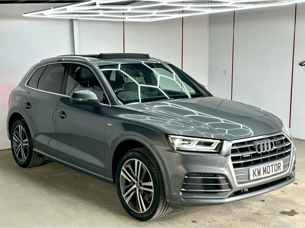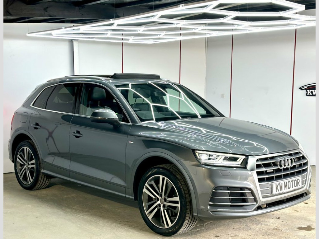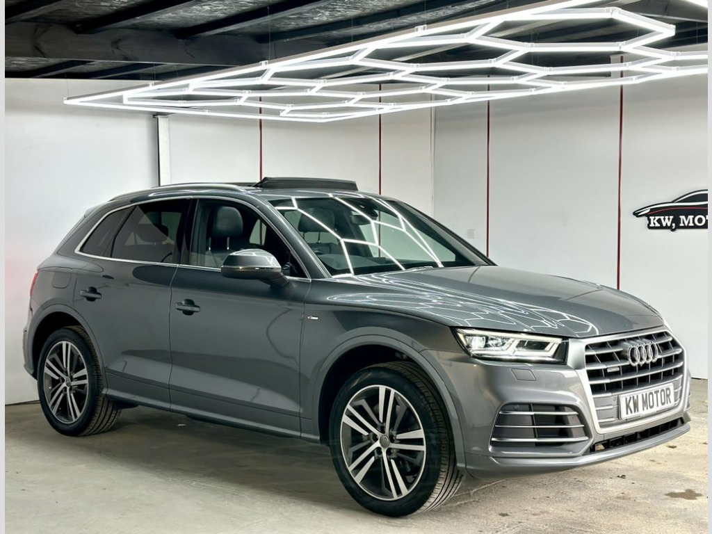 WE ARE PLEASED OFFER THIS STUNNING AUDI Q5 2.0 TDI 40 S line SUV 5dr Diesel S Tronic quattro Euro 6 AUTOMATIC GEARBOX WITH PADDLE SHIFT, 2 REMOTE KEYS, REALLY WELL MAINTAINED CLEAN EXAMPLE, HAS NOT BEEN ABUSED, METICULOUSLY MAINTAINED. SPEC INCLUDES: - PART LEATHER HEATED SEATS - HEATED FRONT SEATS - FRONT AND REAR PARKING SENSORS - DUAL ZONE CLIMATE CONTROL - PRIVACY GLASS - MEDIA PLAYER - APPLE PLAY - DAB RADIO - SAT NAVIGATION EXCELLENT POWER AND PERFORMANCE, SAME DAY FINANCE ACCEPTANCE, 90 DAYS FREE WARRANTY Audi Matrix LED Headlights with LED Rear, Monsoon Grey, Rear-View Camera, Rear Side Airbags, Storage Package, Inlays - Piano Finish - Black, Extended LED Interior Lighting Package -, Flat-Bottomed 3-Spoke Leather High Multi, Heated Front and Outer Rear Seats, Door Mirrors - Folding with Auto-Dimming, Panoramic Glass Sunroof, 20in Alloy Wheels - 5-Segment-Spoke Desi, 19in Alloy Wheels - 5-Twin-Spoke Star De, 2 x SDXC Card Readers, 2 x USB Charging Ports and 1 x AUX-IN, Fine Nappa Leather - Black with Rock Gre, 4-Way Electric Lumbar Support, 6-Airbag System, Aluminium Roof Rails, Anti Theft Locking Wheel Bolts, Anti-Theft Alarm, Audi Connect Infotainment Services - 3 M, Audi Connect Safety and