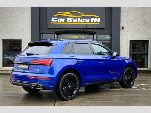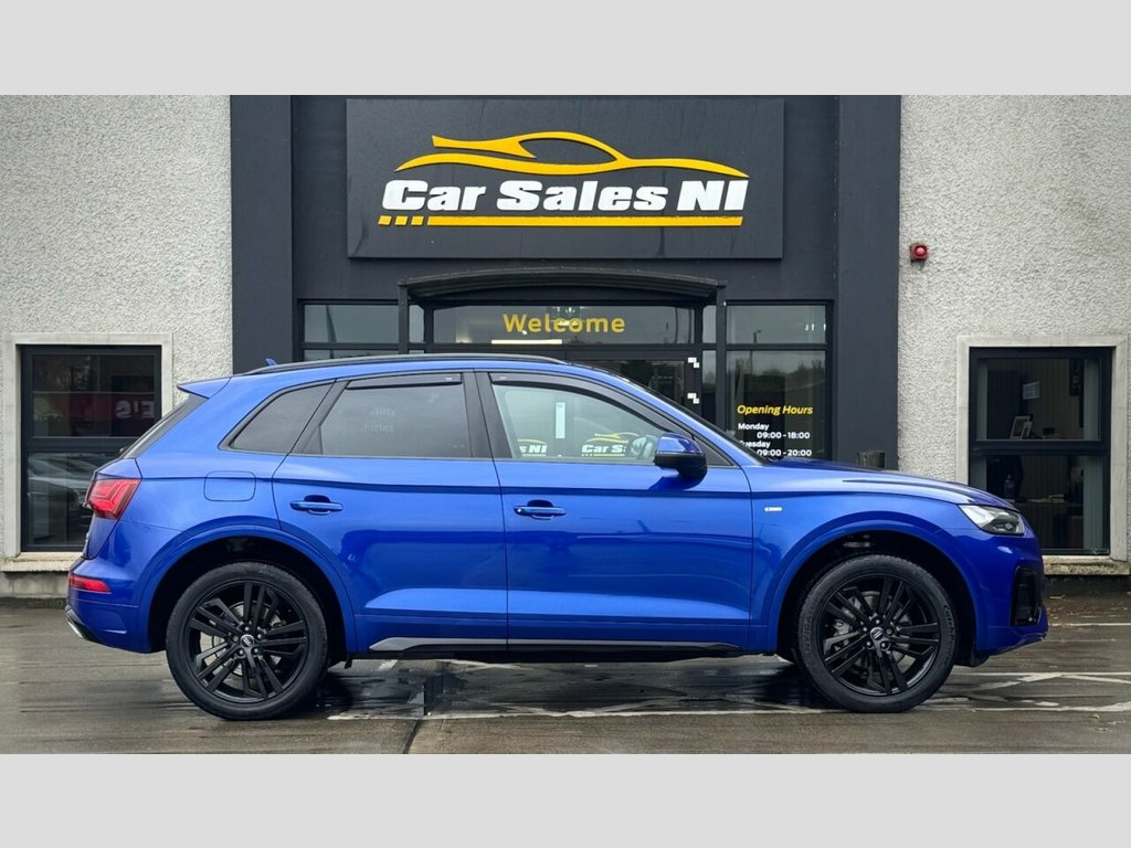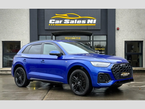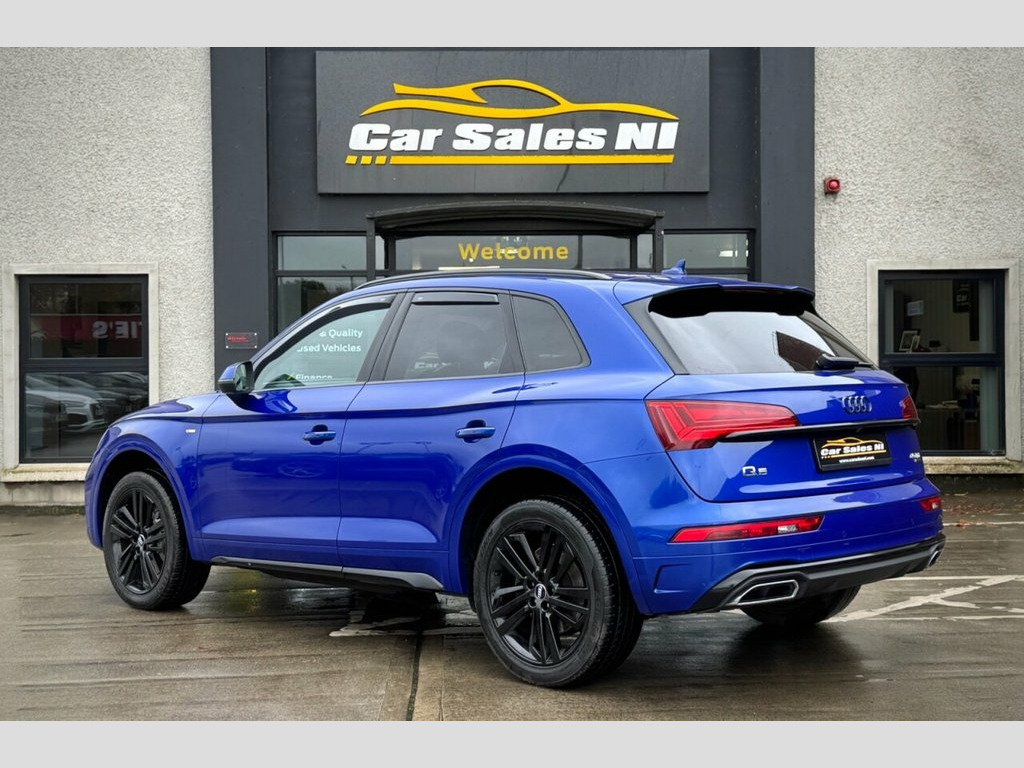 2021 AUDI Q5 S LINE 40 TDI QUATTRO 202 BHP 2.0 Diesel Model, Covered 51k miles, Finished in Ultra Blue, Key Features include: 20'' Factory fitted alloy wheels Rear Privacy glass Black Edition Styling Front and Rear Parking sensors Reversing camera Half Leather S Line interior Leather Multifunctional steering wheel Paddle shift Heated front seats Dual Climate control Virtual Cock pit DAB Radio / Bluetooth / Sat Nav Apple / Android Car Play AUDI Drive Mode Select Electronic Tailgate ISOFIX Child seat points And so much more... Call today to arrange a test drive Tailored finance packages available to suit your needs (Excludes ROI) Comprehensive warranty on all cars Trade ins welcome Delivery to North and South of Ireland if required 19in Alloy Wheels - 5-Twin-Spoke Star De, 2 USB Charging Ports -1 x USB-A and 1 x , 3-Spoke Multi-Function Leather Steering , 6-Airbag System, Aluminium Roof Rails, Amazon Alexa Integration, Anti Theft Locking Wheel Bolts, Anti-Theft Alarm, Audi Connect Navigation and Infotainment, Audi Connect with Amazon Alexa Integrati, Audi Drive Select, Audi Pre-Sense City, Audi Virtual Cockpit Plus - 12.3in Scree, Audi Wireless Smartphone Interface, Auto-Dimming Rear-View Mirror, Automatic Headlight Adjustment, Automatic Headlight and Windscreen Wiper, Automatic Start-Stop with Coasting Funct, Bluetooth Interface, Body Coloured Door Mirrors, Chrome-Plated Exhaust Trim, Cloth Headlining in Black, Comfor